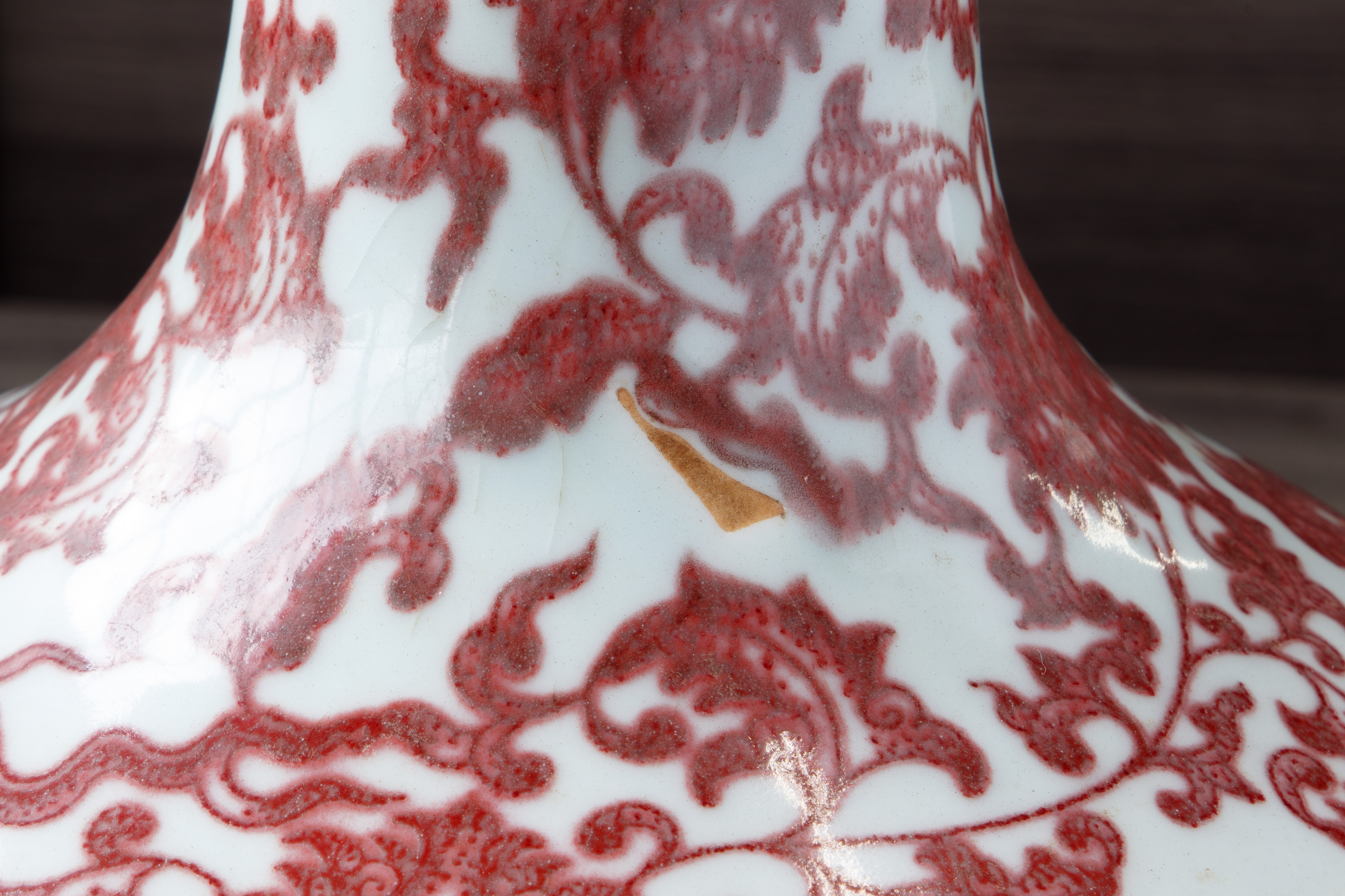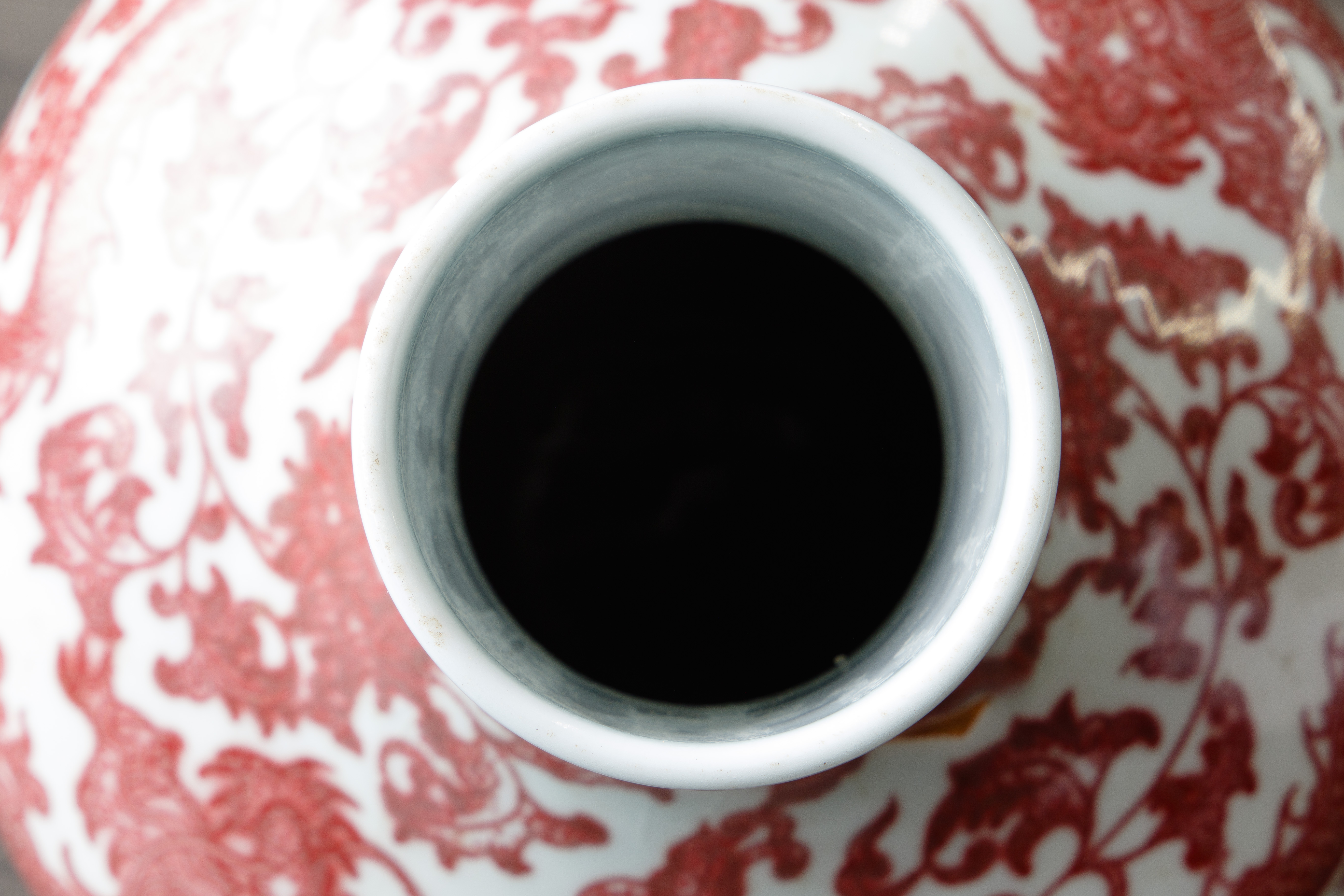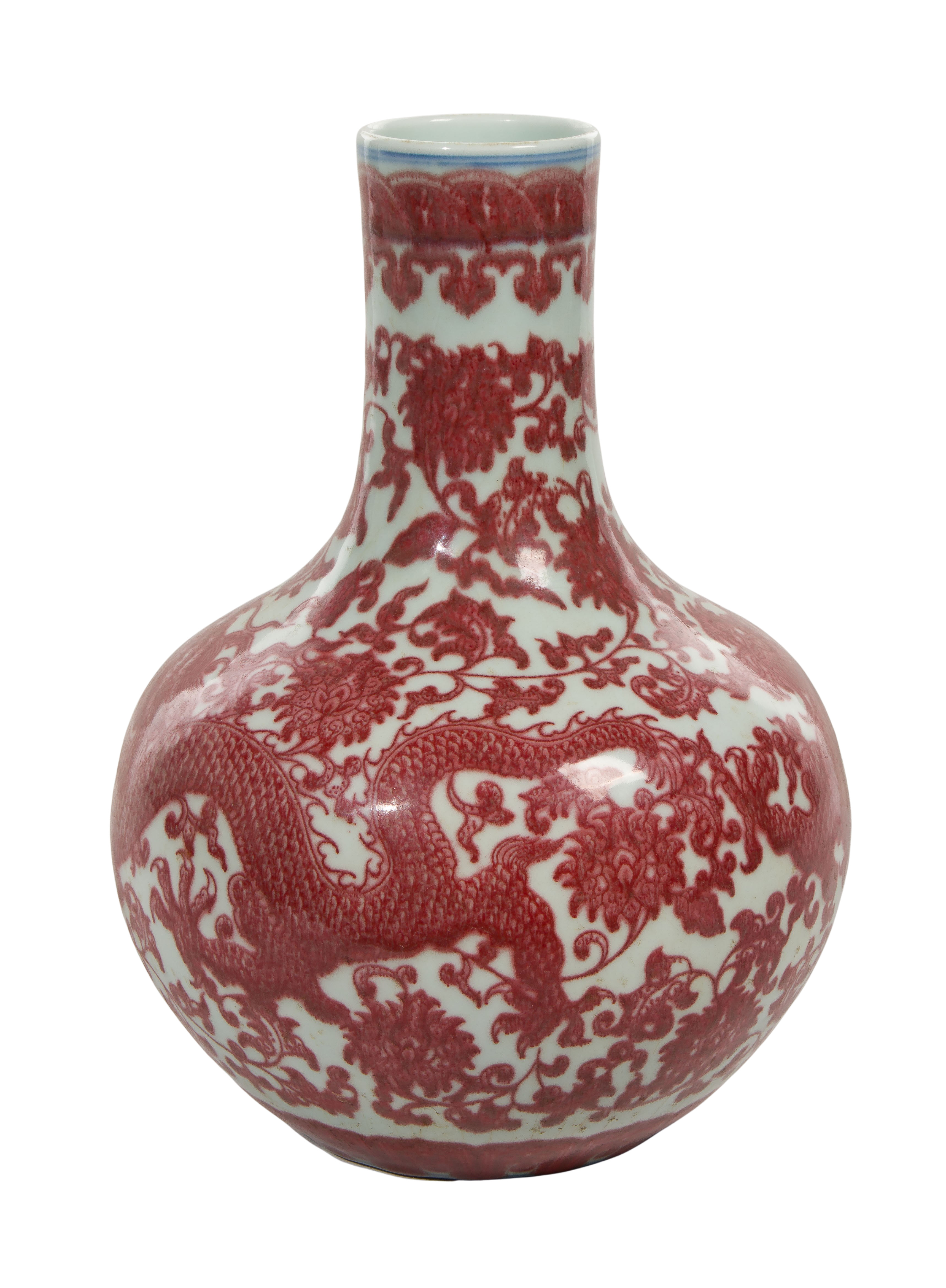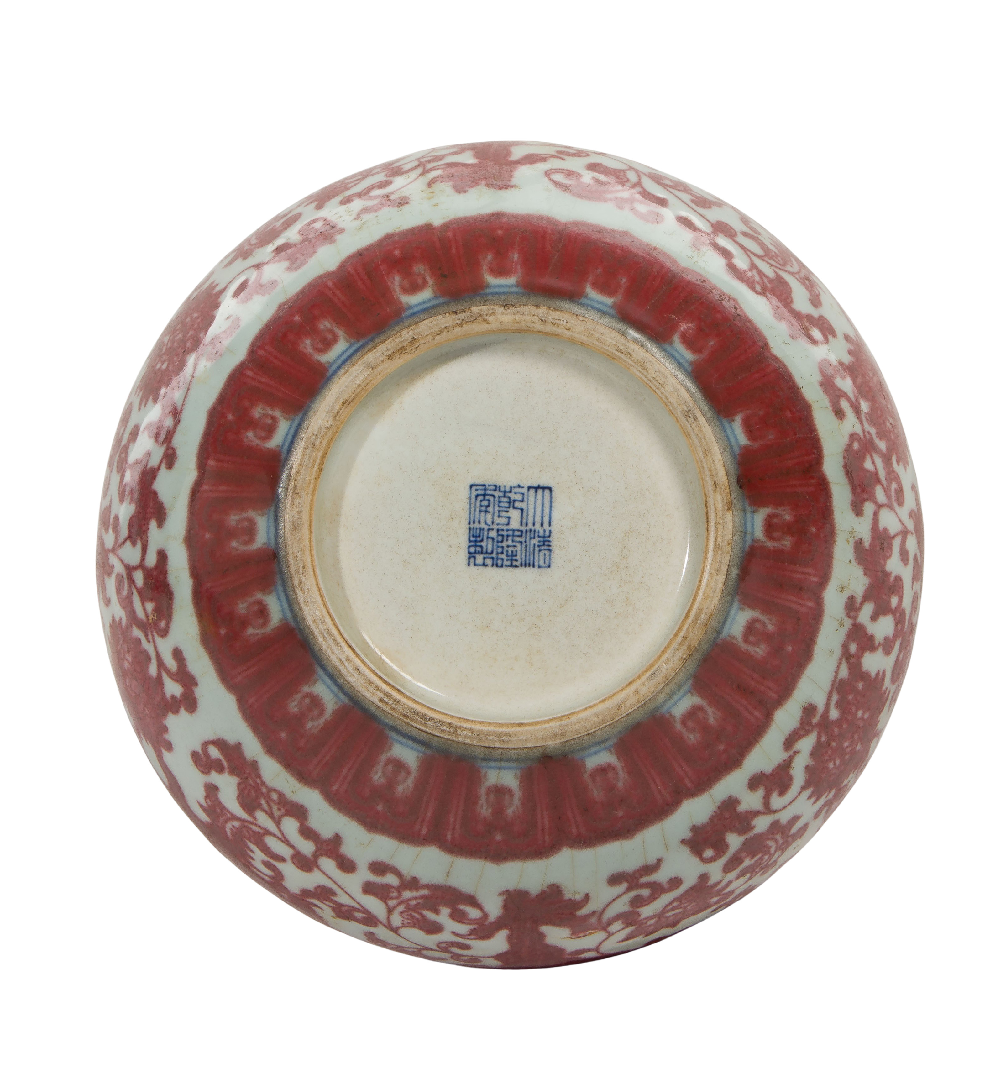 Having a dragon motif in a red underglaze with a 6-character underglaze blue Qianlong archaic seal mark underside