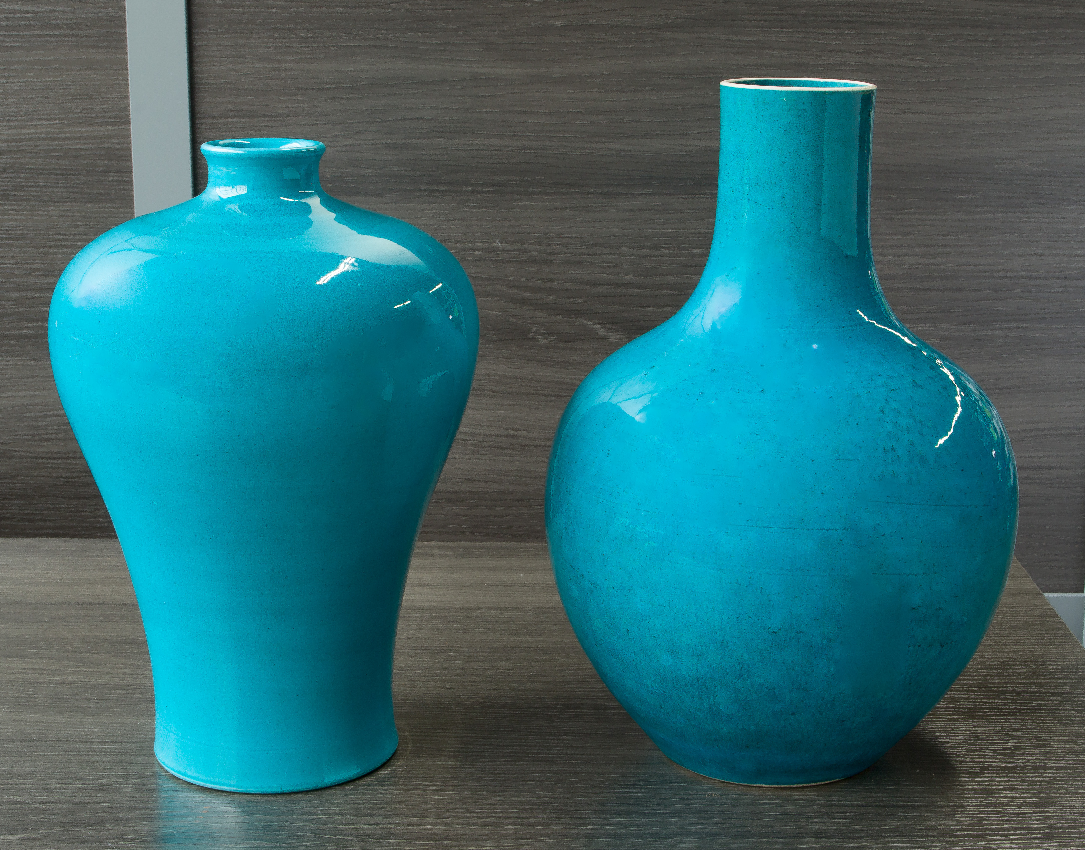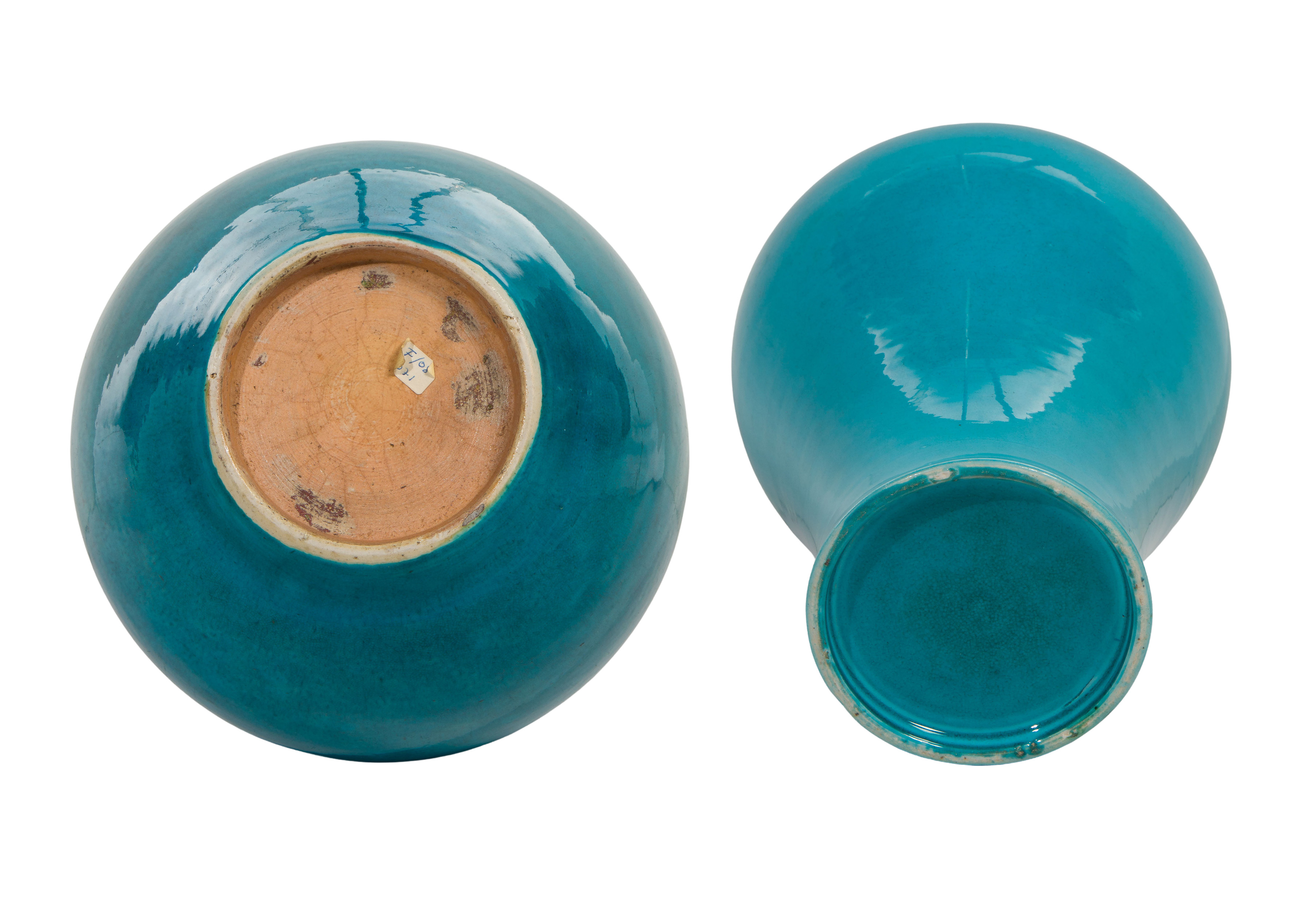 (2) items including an Awaji style and plum style, both having a turquoise glaze, unmarked