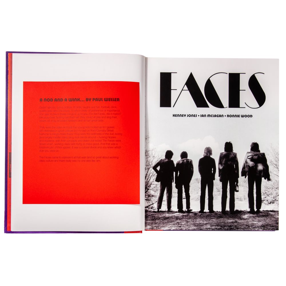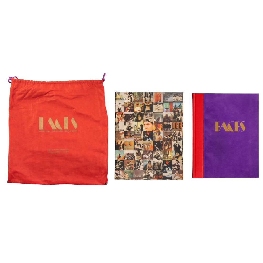 Faces 1969-75, Artist Proof edition, autographed, having 272 pages, commentary written by Ron Wood, Kenney Jones, Ian McLagan and photographs by Bernie Wentzell, binding in quarter sewn red leather with purple flocked-cloth covers, gilt-edged pages, custom slipcase featuring a montage of photographs and a red cloth drawstring bag
