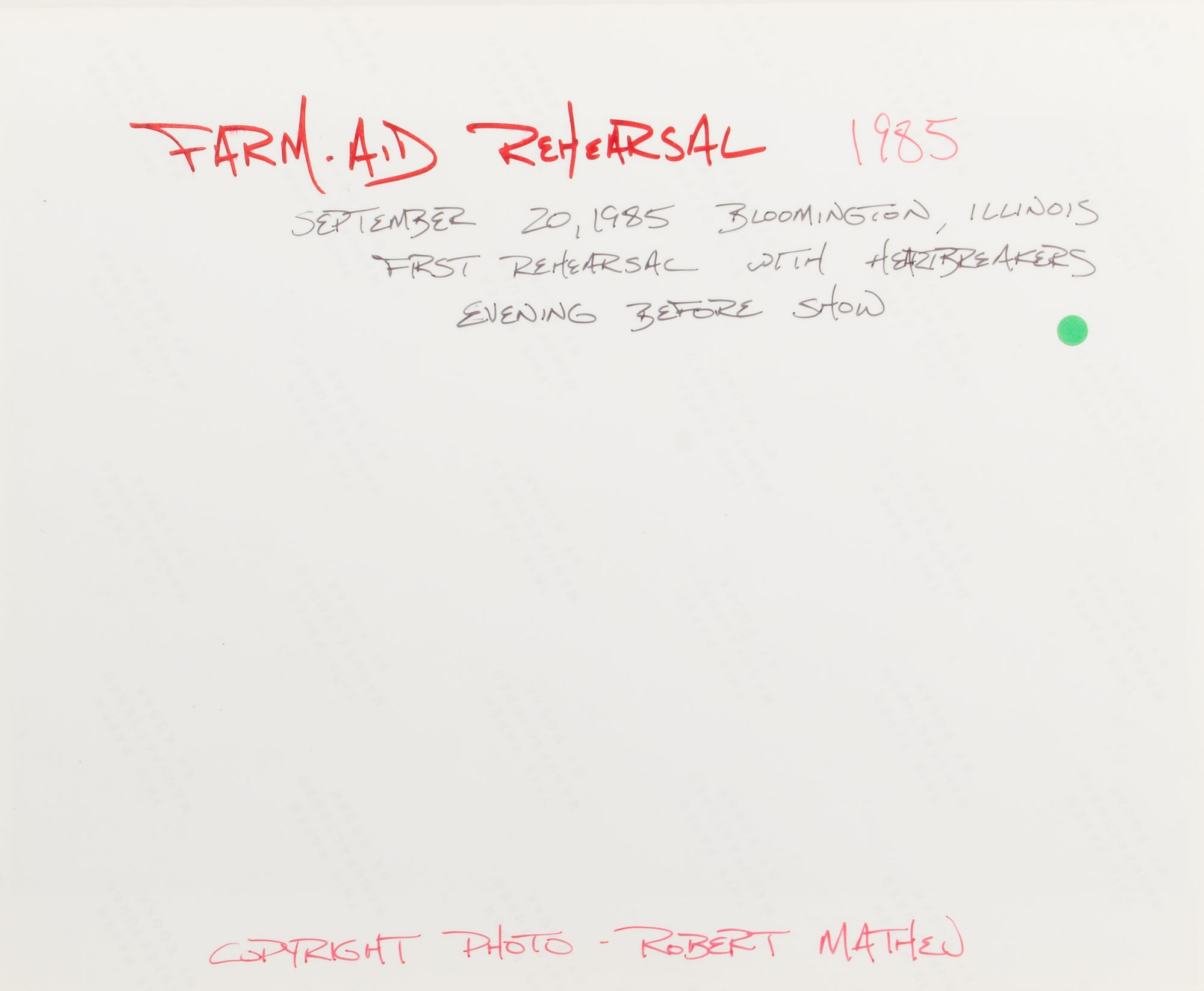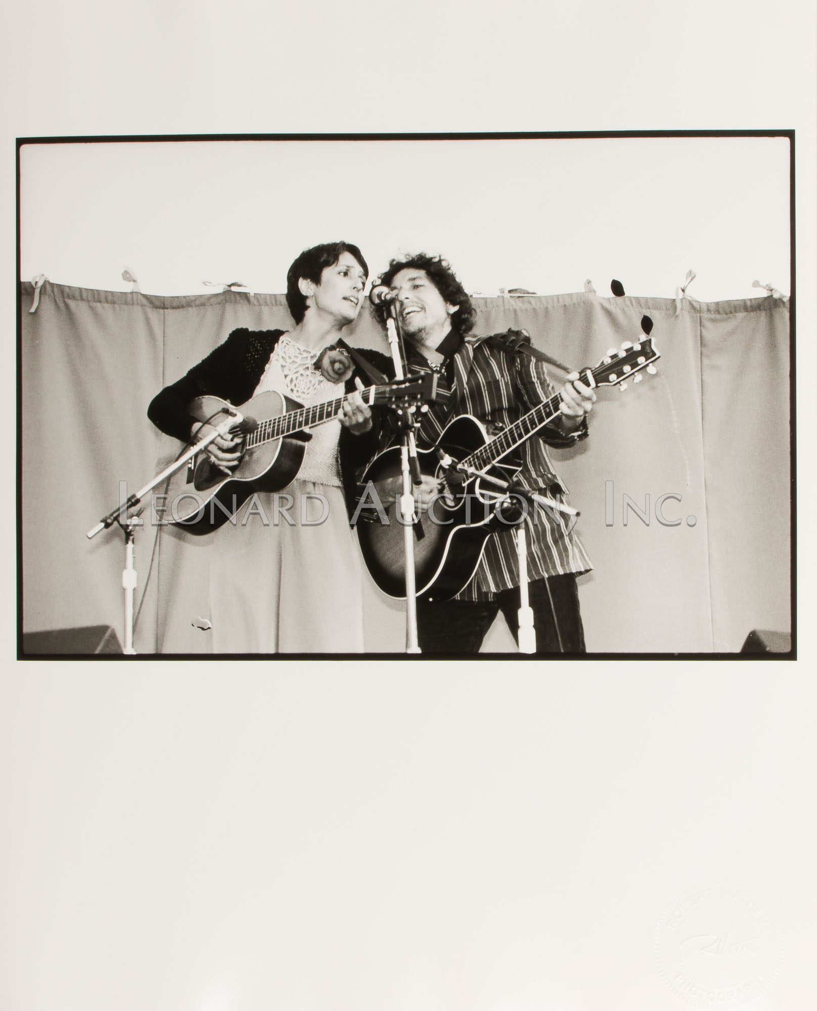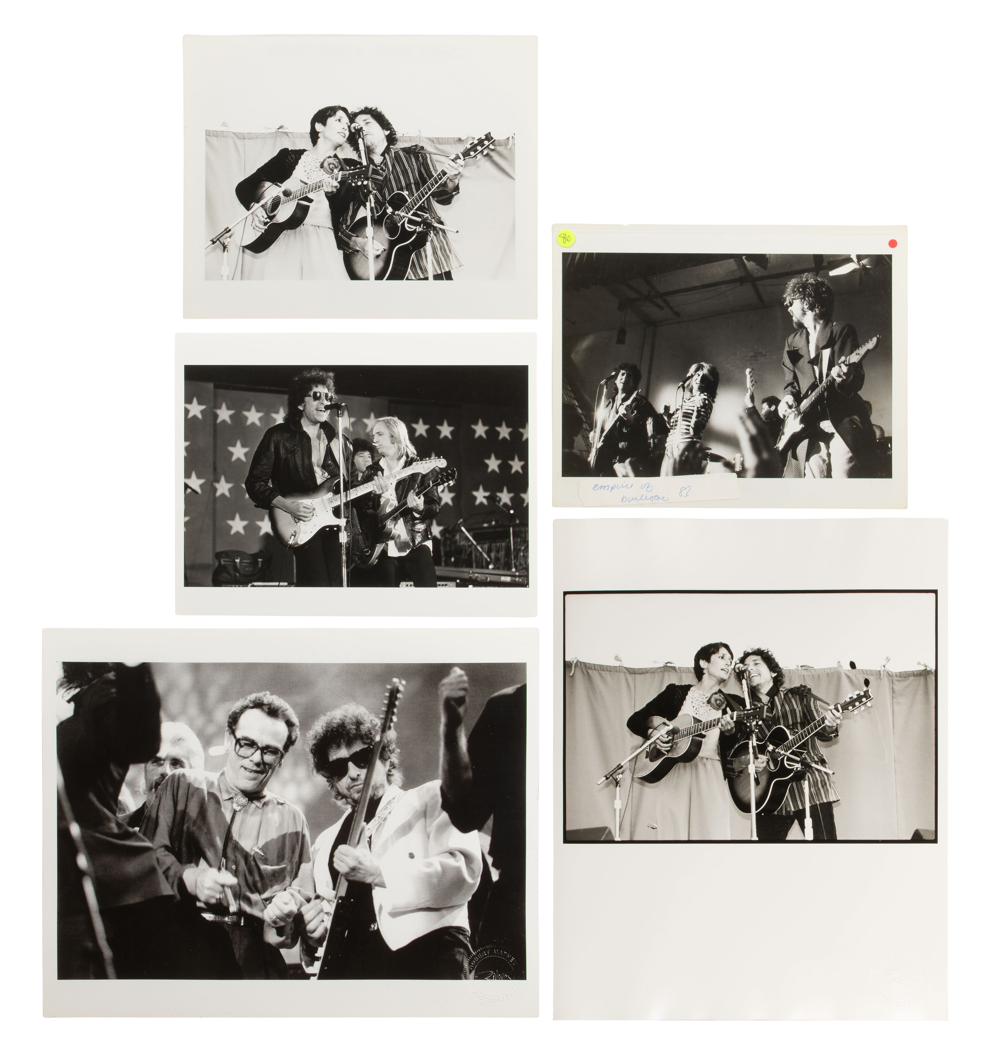 (5) items including Bob Dylan playing with various artists such as Joan Baez and Tom Petty, (3) having annotations from photographer, (2) larger format unmarked
