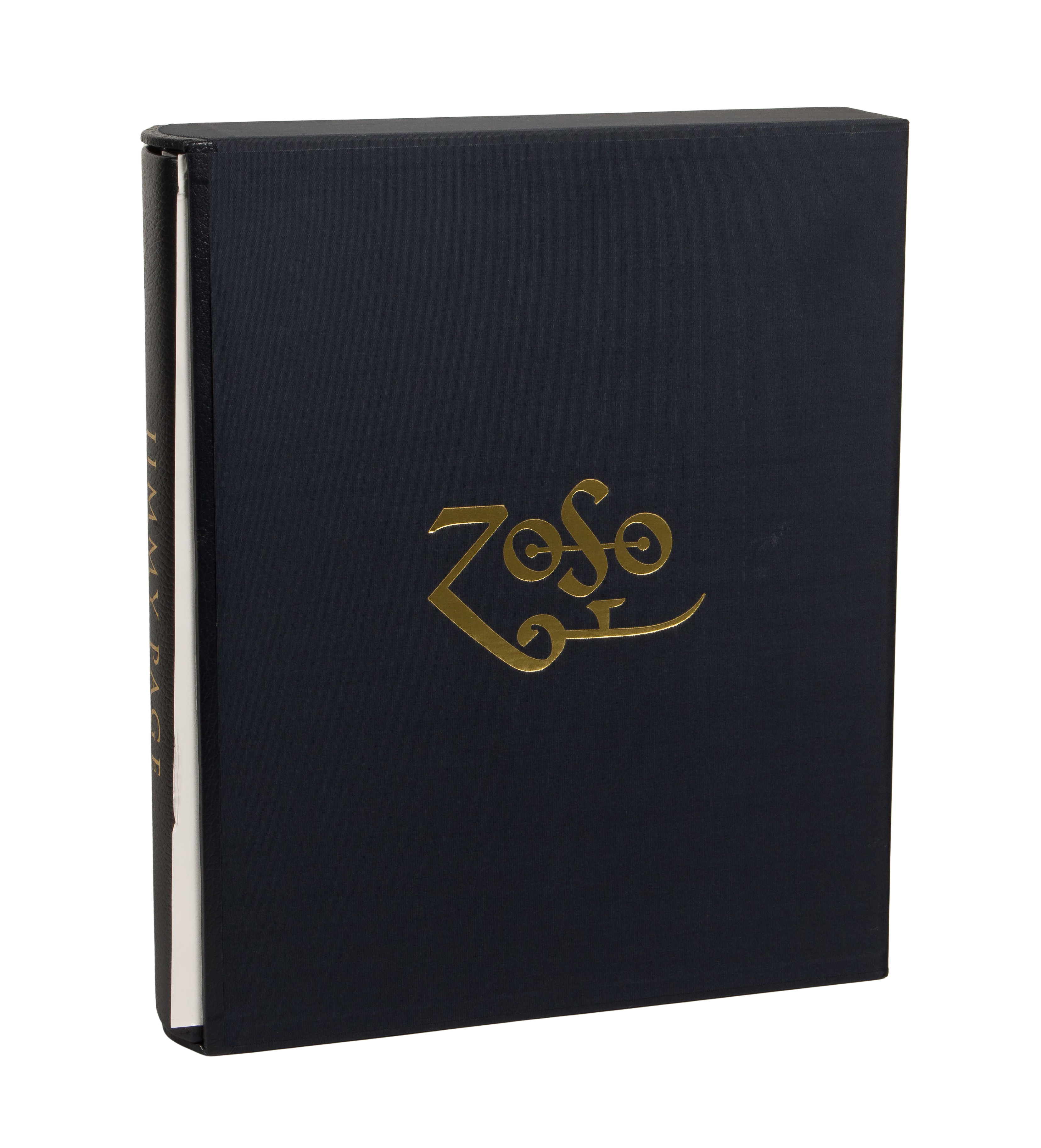 Signed by Jimmy Page #1824/2000, hand-bound in Moroccan leather and laser-cut Perspex, translucent front and back boards screen-printed having two portraits, page edges gilded, spine decoratively blocked in gold leaf, marbled end papers on the interior, a hand-crafted slipcase bound in silk, blocked in gold leaf, the slipcase also features a Moroccan leather trim and protective cover bag, in original shipping box