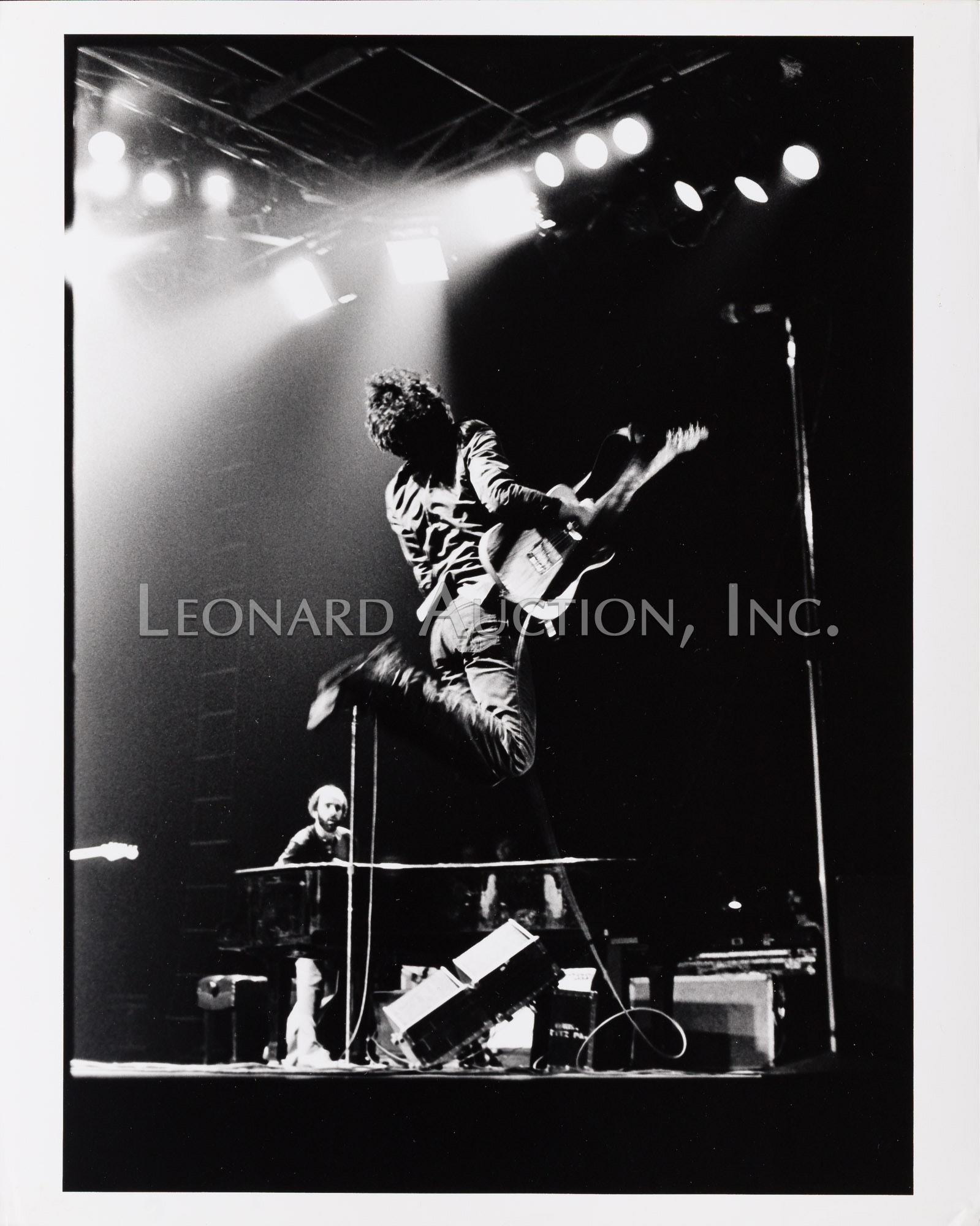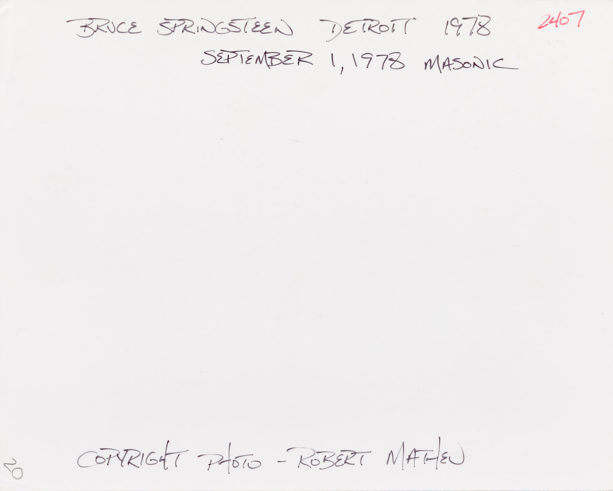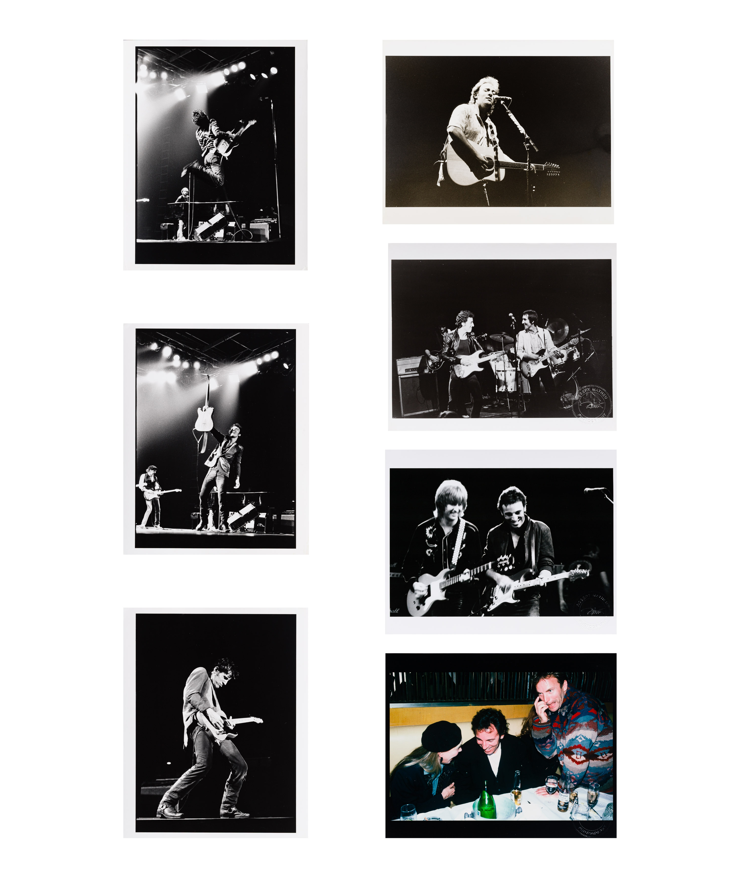(7) black and white / color photographs of Bruce Springsteen performing, three having photographer blind stamp, four having annotations