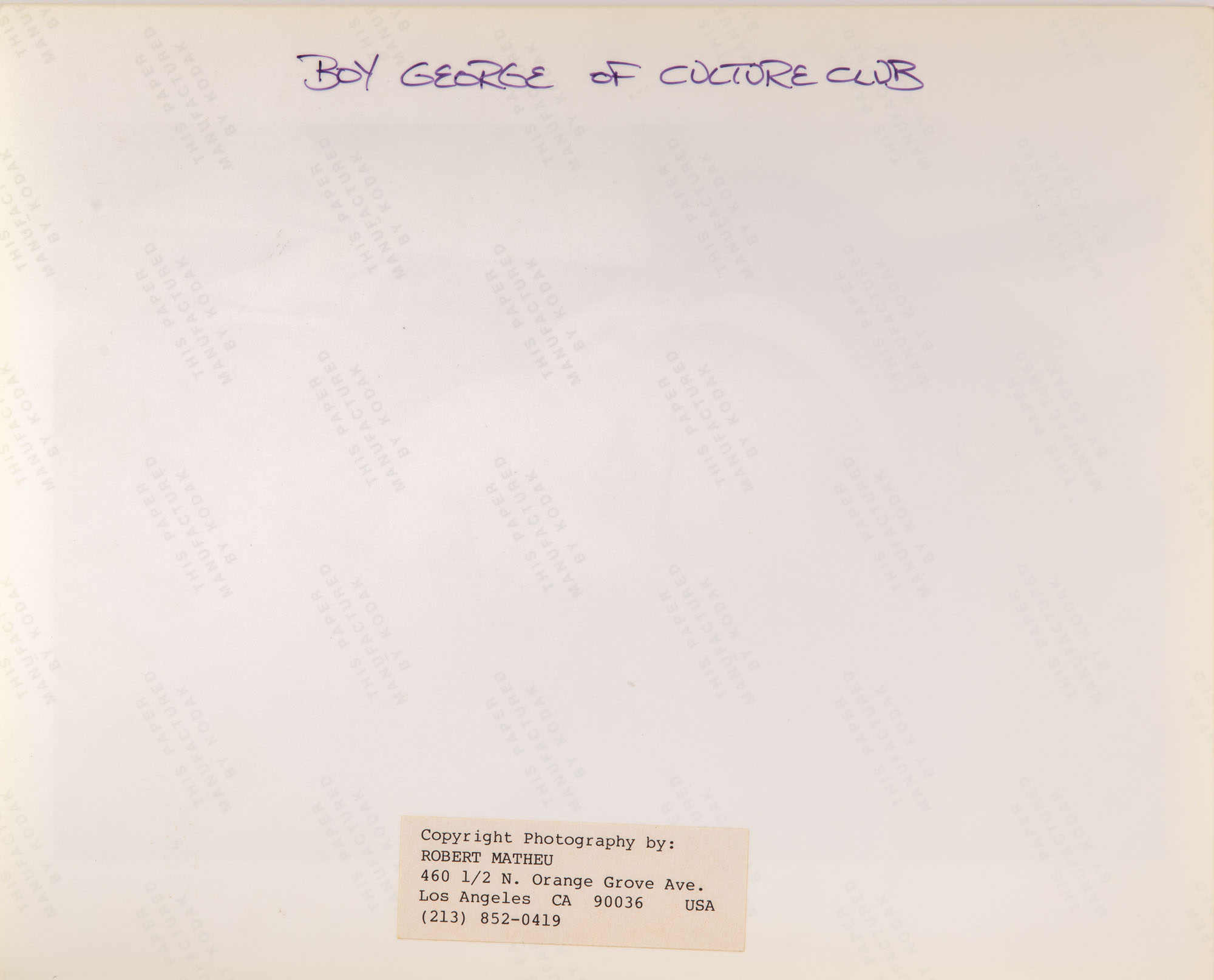 Robert Matheu (American, 1955-2018) Boy George Photograph Assortment