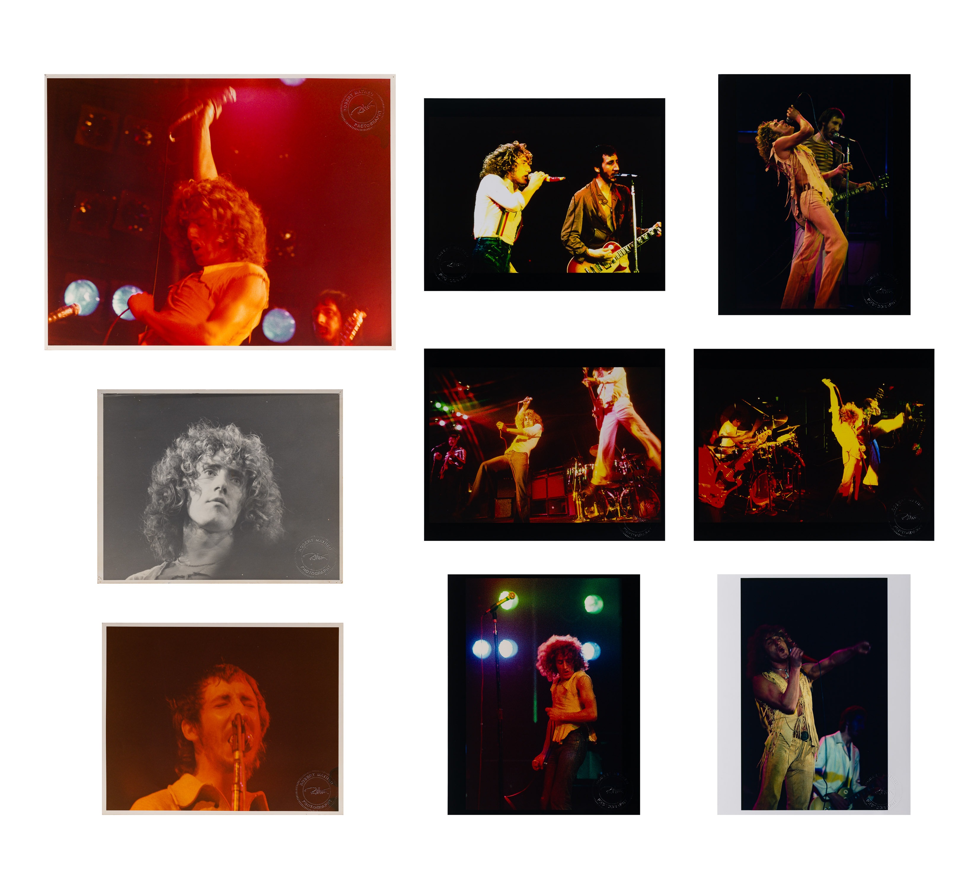 (9) black and white / color images of The Who performing, all having photographer blind stamp