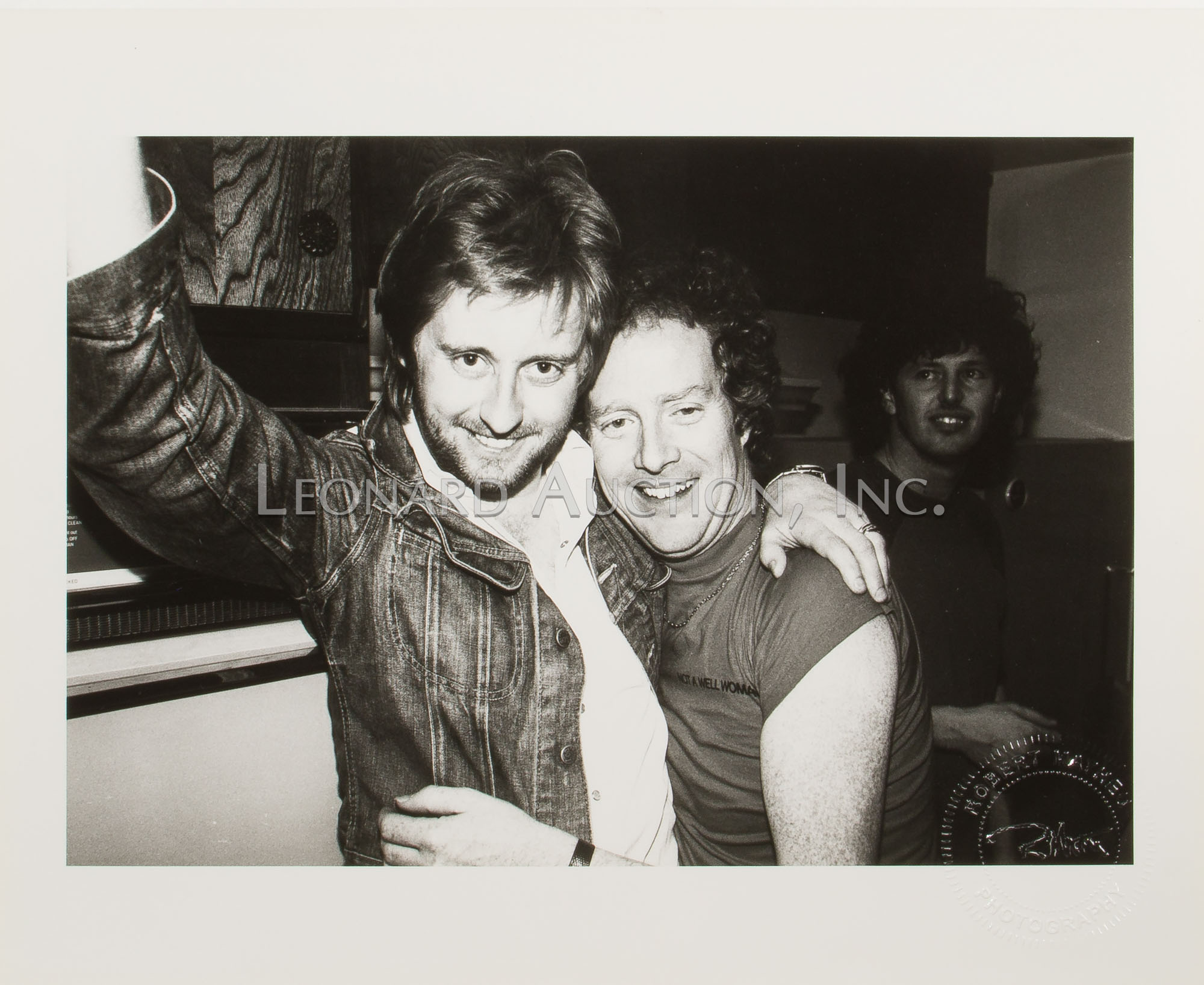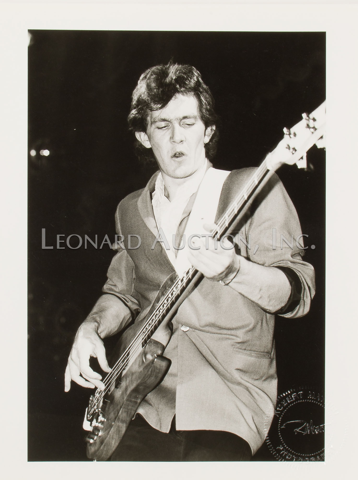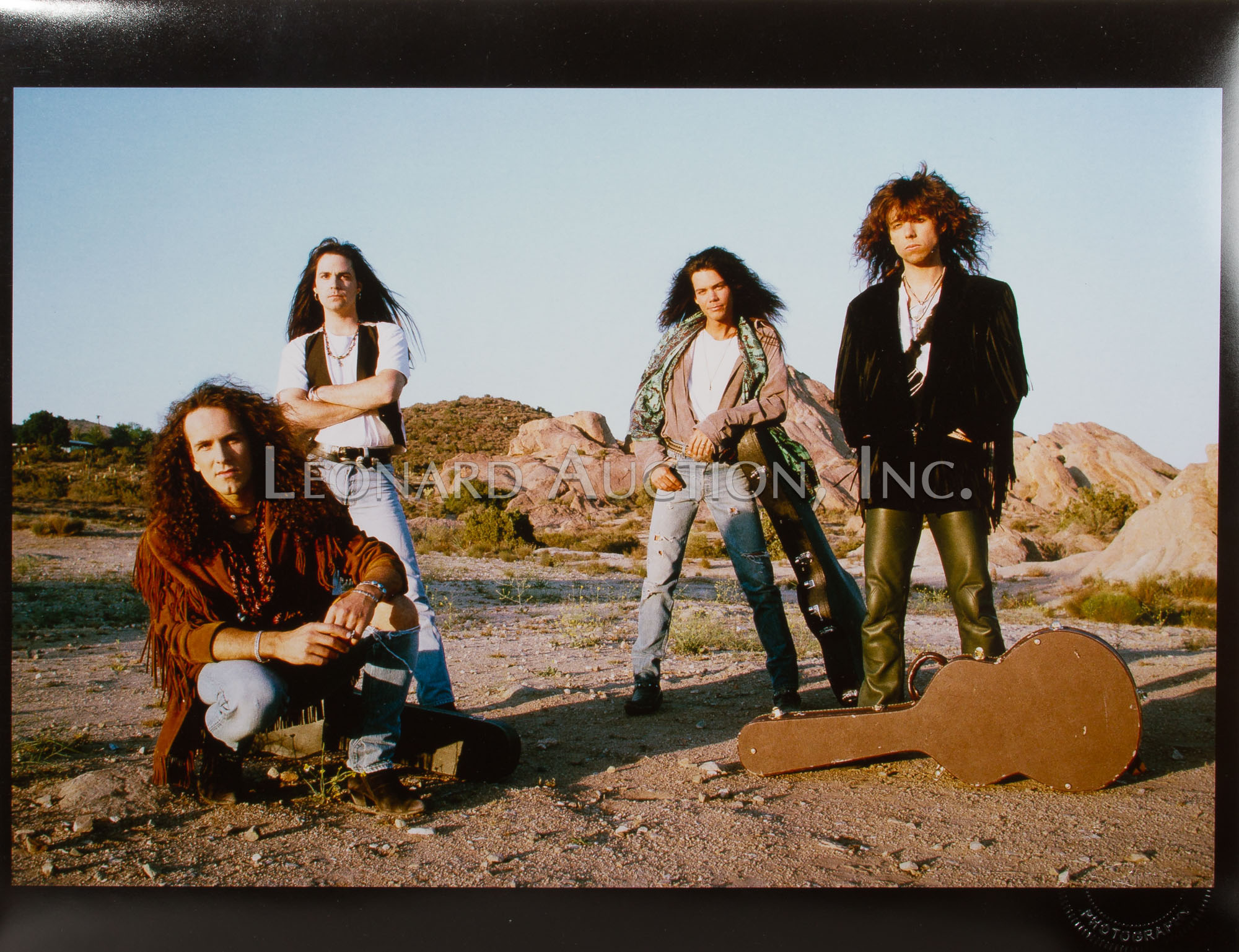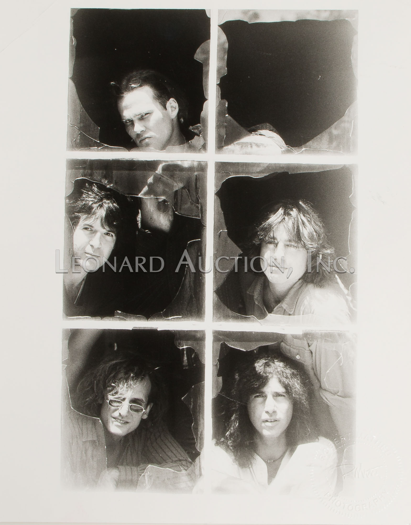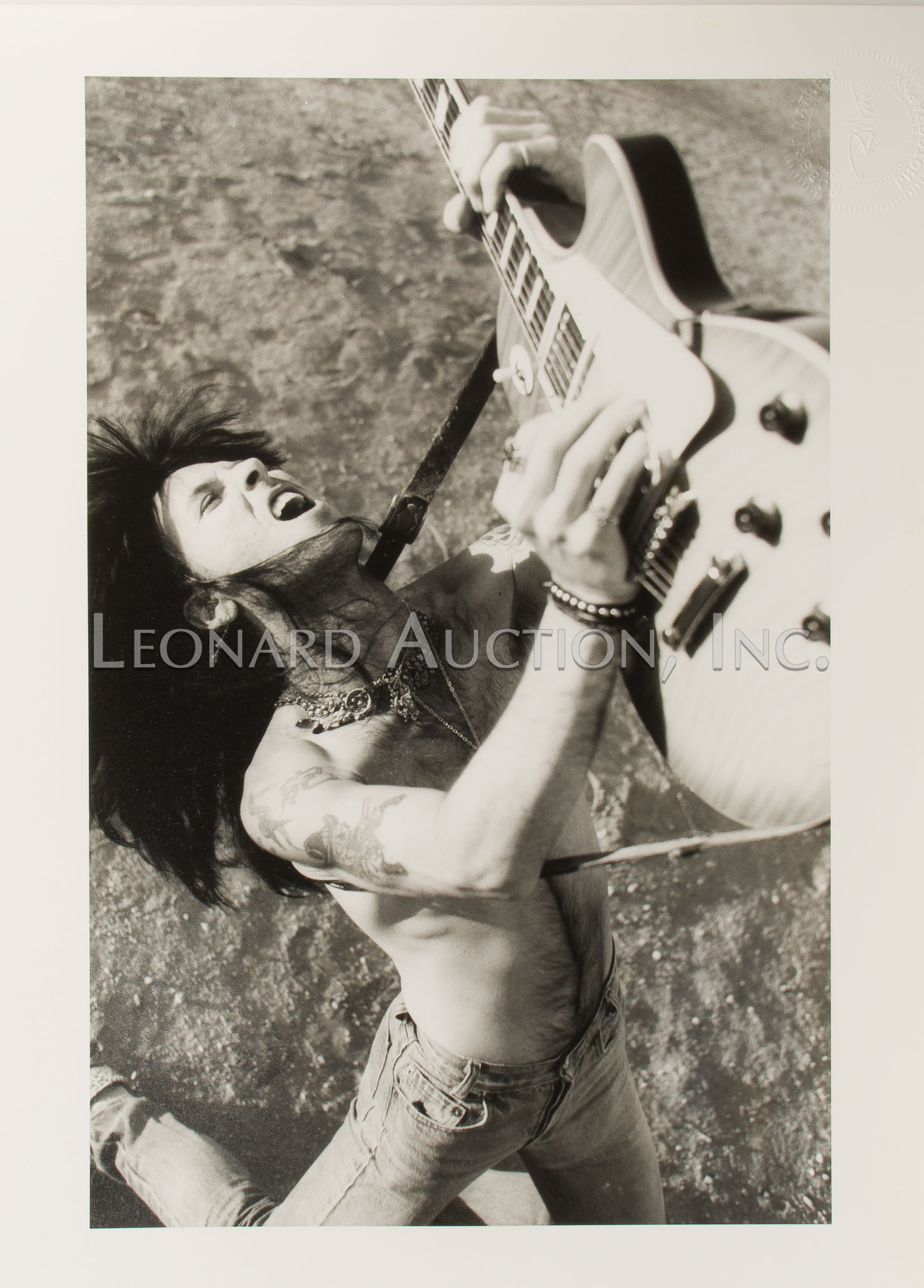 (5) items including a black and white of Tracii Guns, a color of Vivian Campbell and the River Dogs, a black and white of Tony Lewis from the Outfield as well as (2) unidentified black and white, all having photographer blind stamp