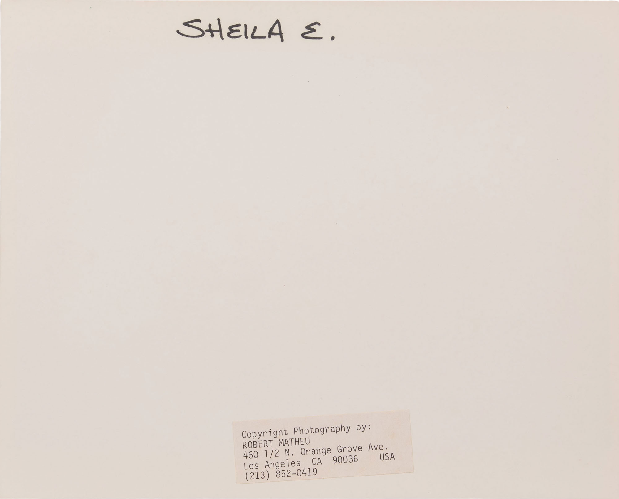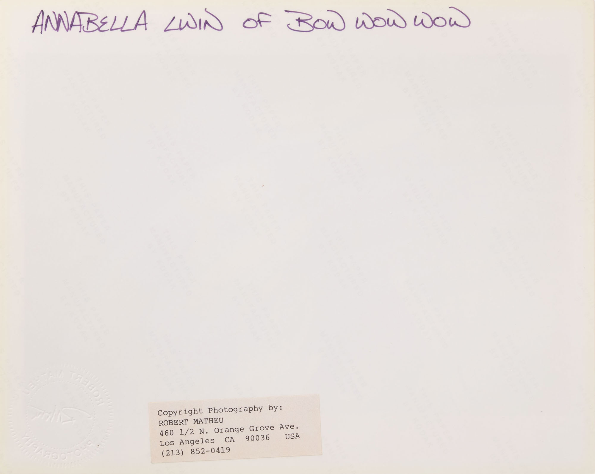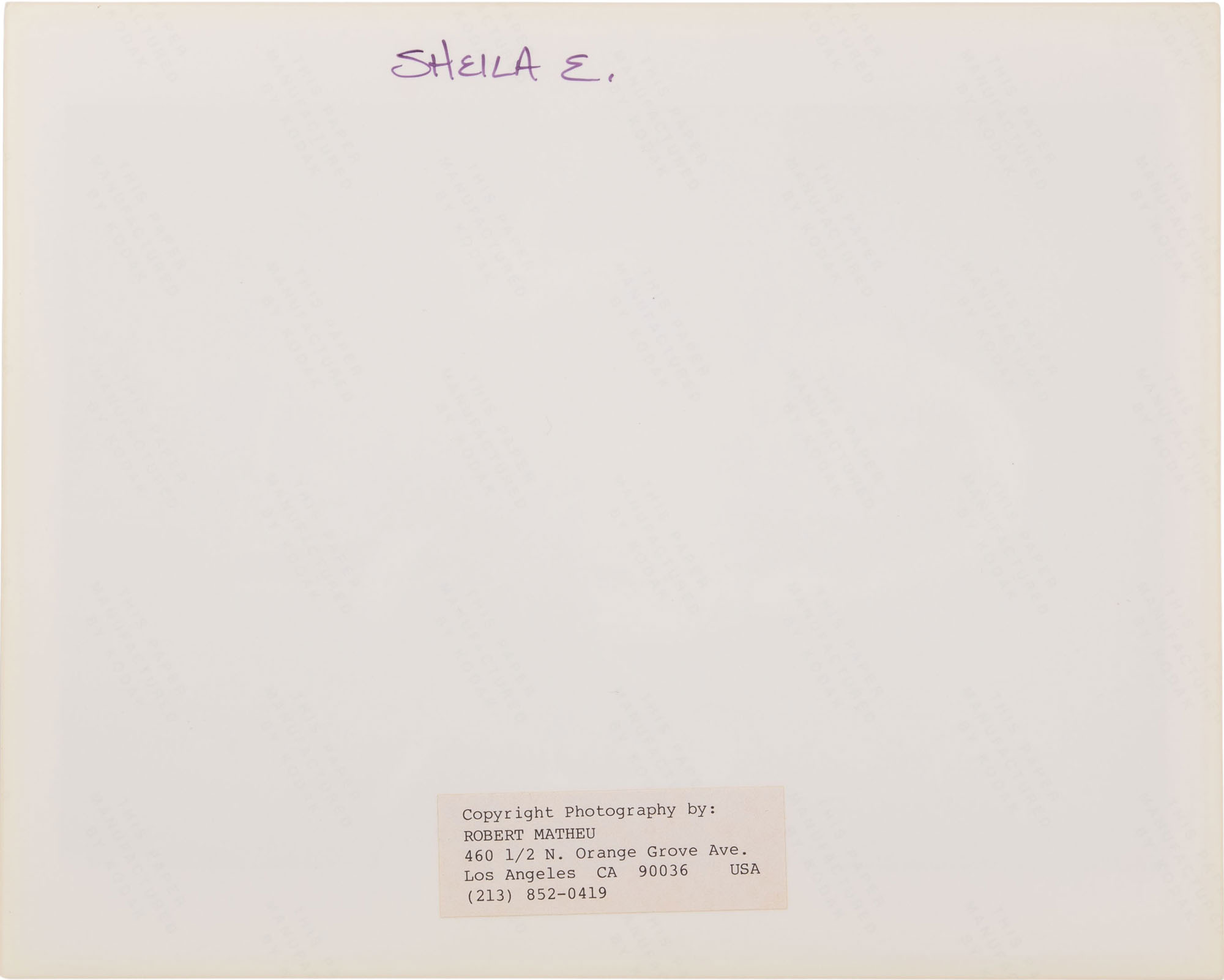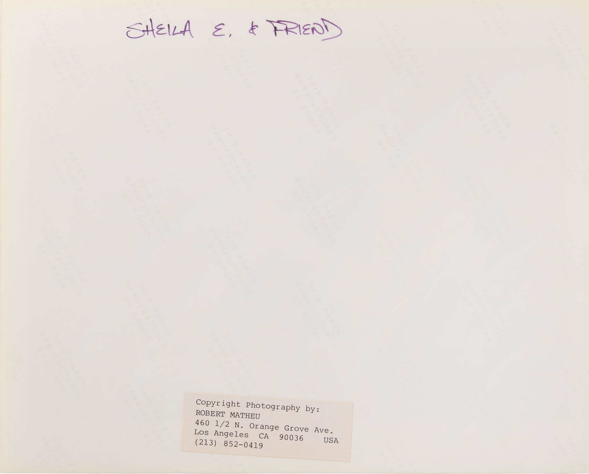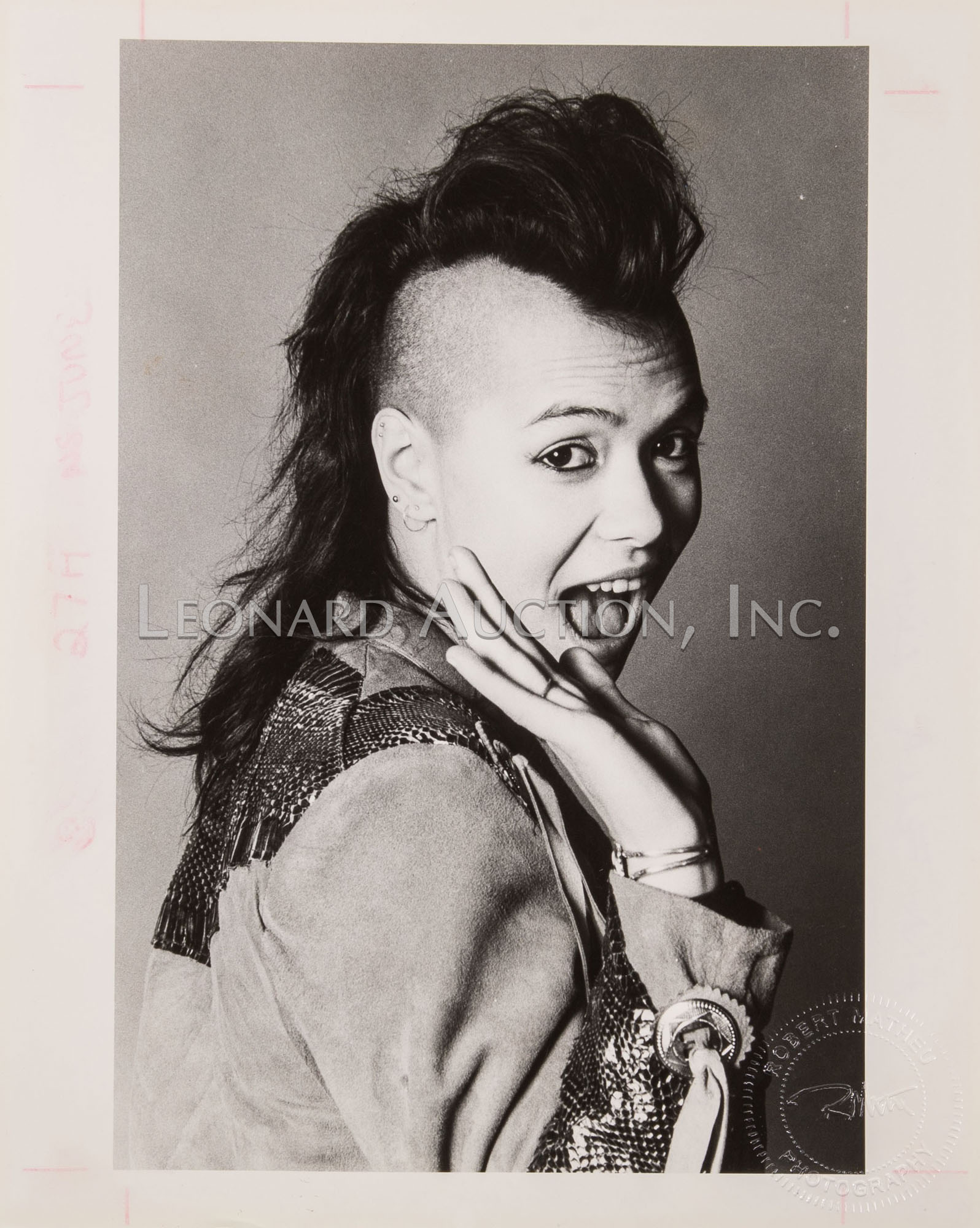 (8) items including a color portrait of Annabella Lwin of Bow Wow Wow, (2) black and white and a color of Lwin and band having photographer blind stamp and (4) black and white Sheila E. having photographer notations and label verso