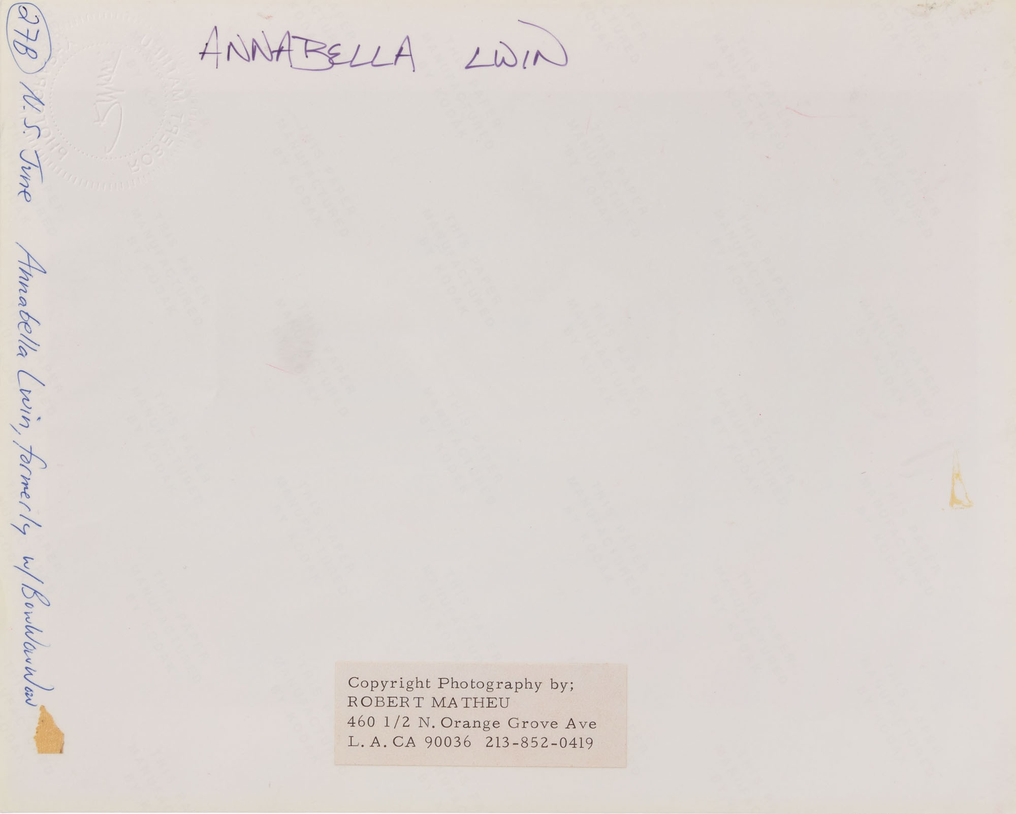 Disclaimers: Copyright: Estate of Robert Matheu. Reproduction Rights Reserved.