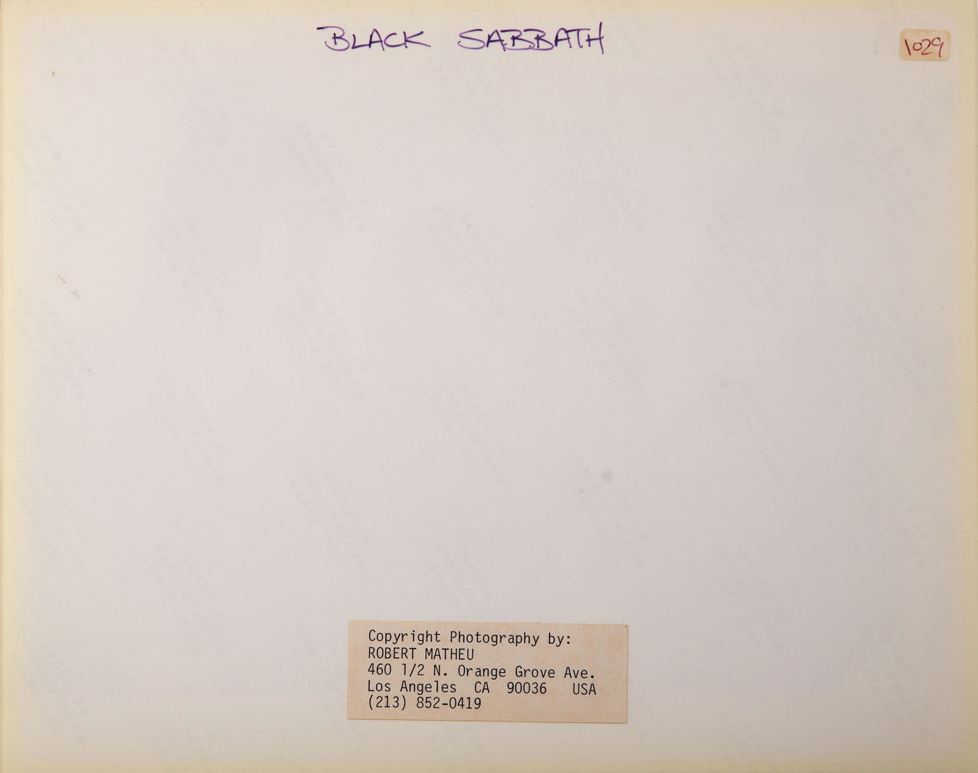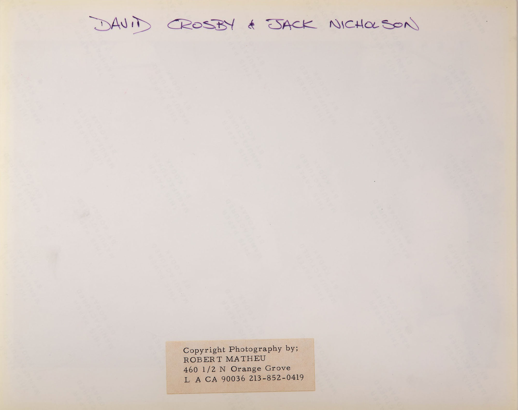 (6) items of various artists including David Crosby and Jack Nicholson, Black Sabbath, Tom Petty, all having annotations and label from photographer verso