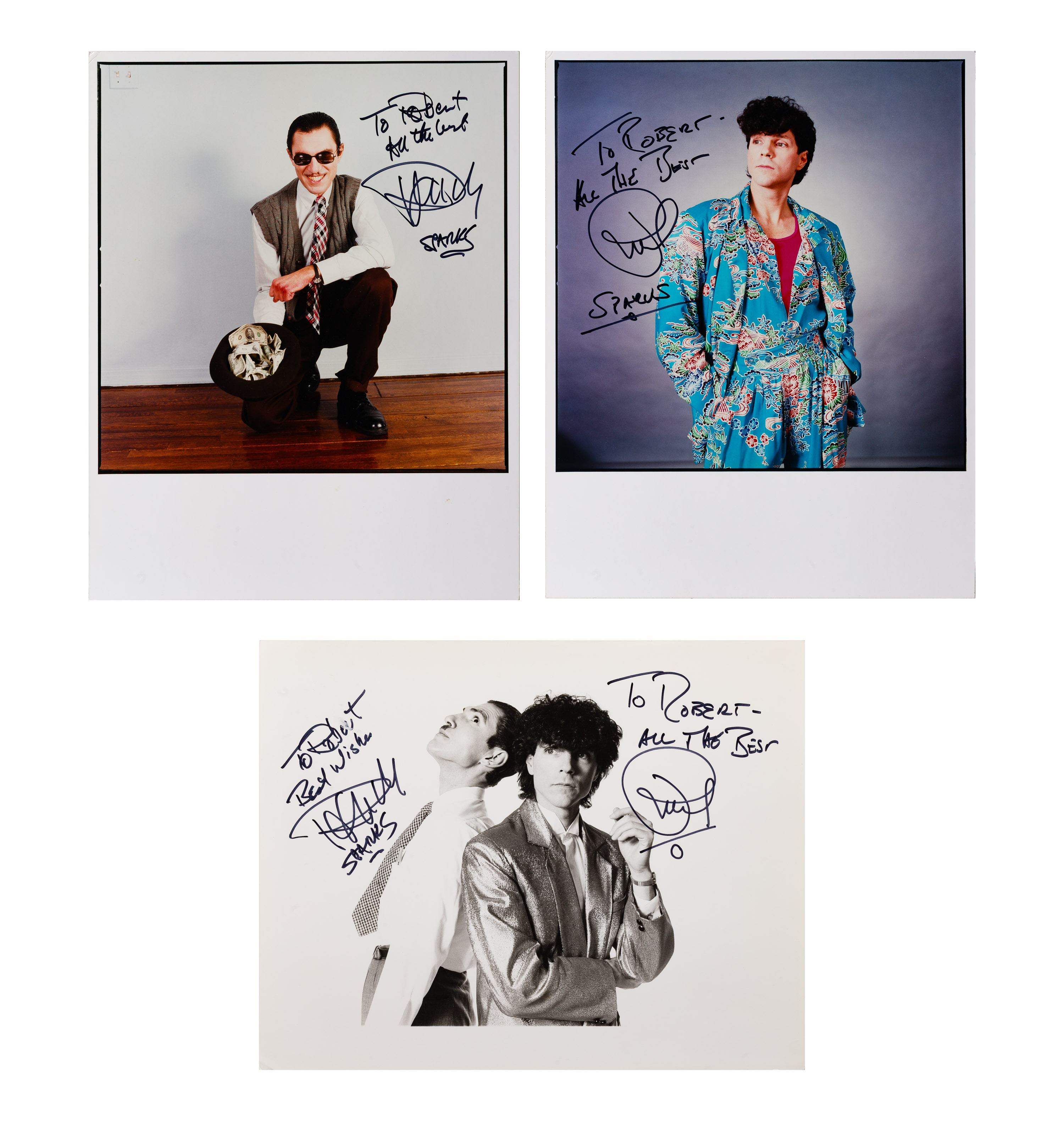 (3) autographed black and white photographs of Sparks, two mounted on board, all unmarked