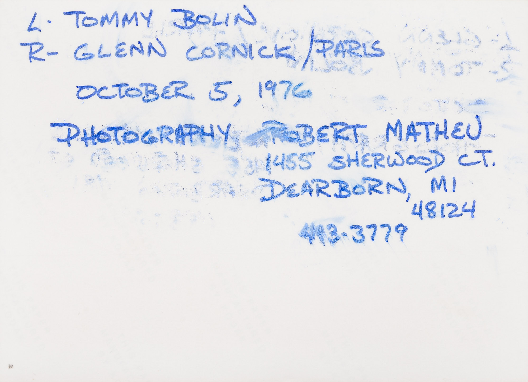 (12) black and white / color images including (5) of Blind Faith and opening act, (3) Tommy Bolin, (2) Blue Oyster Cult and (2) Flaming Lips, nine having photographer blind stamp and three having annotations verso