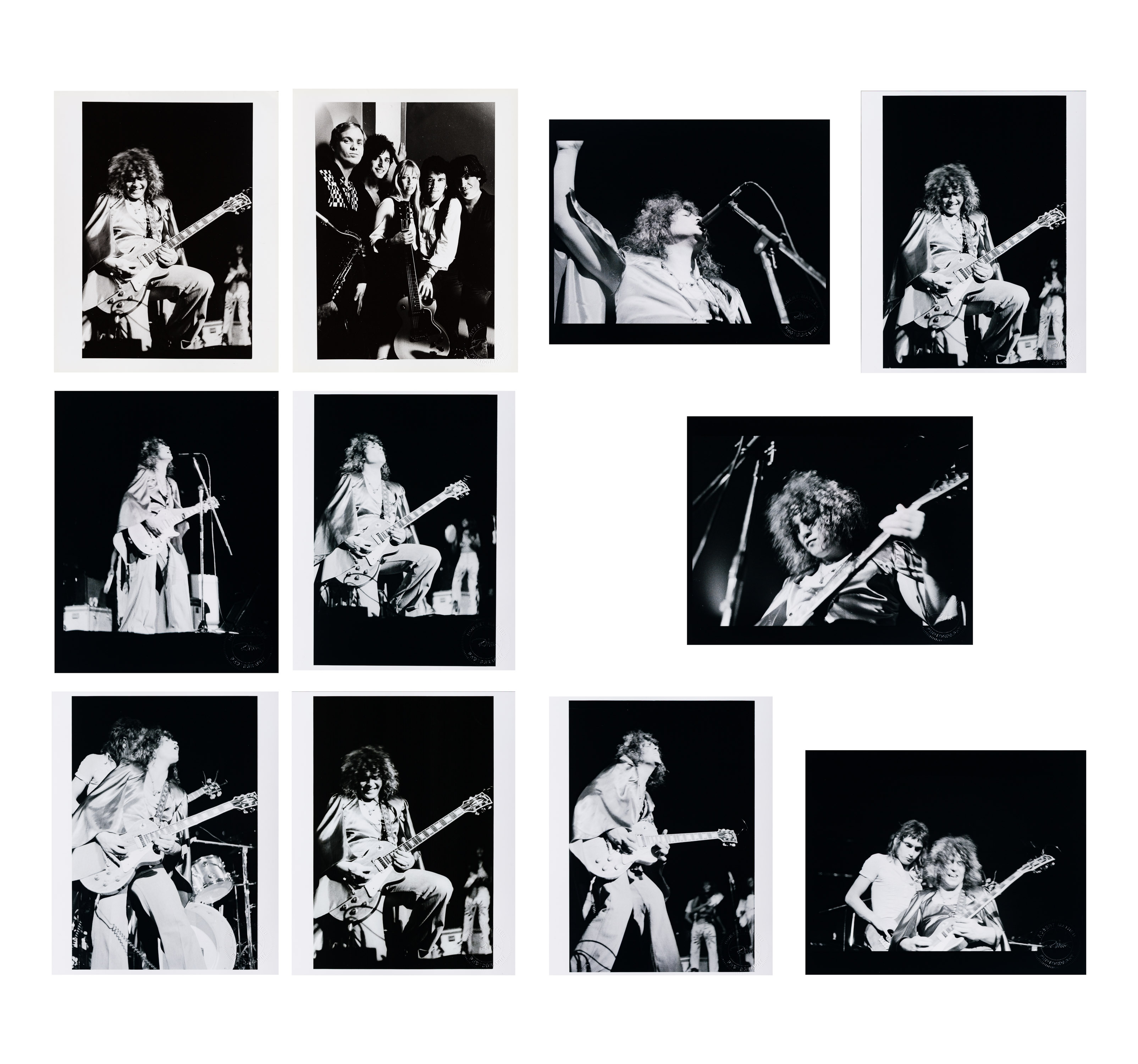 (11) black and white / color images of the band T-Rex performing, nine having photographer blind stamp, two having annotations verso