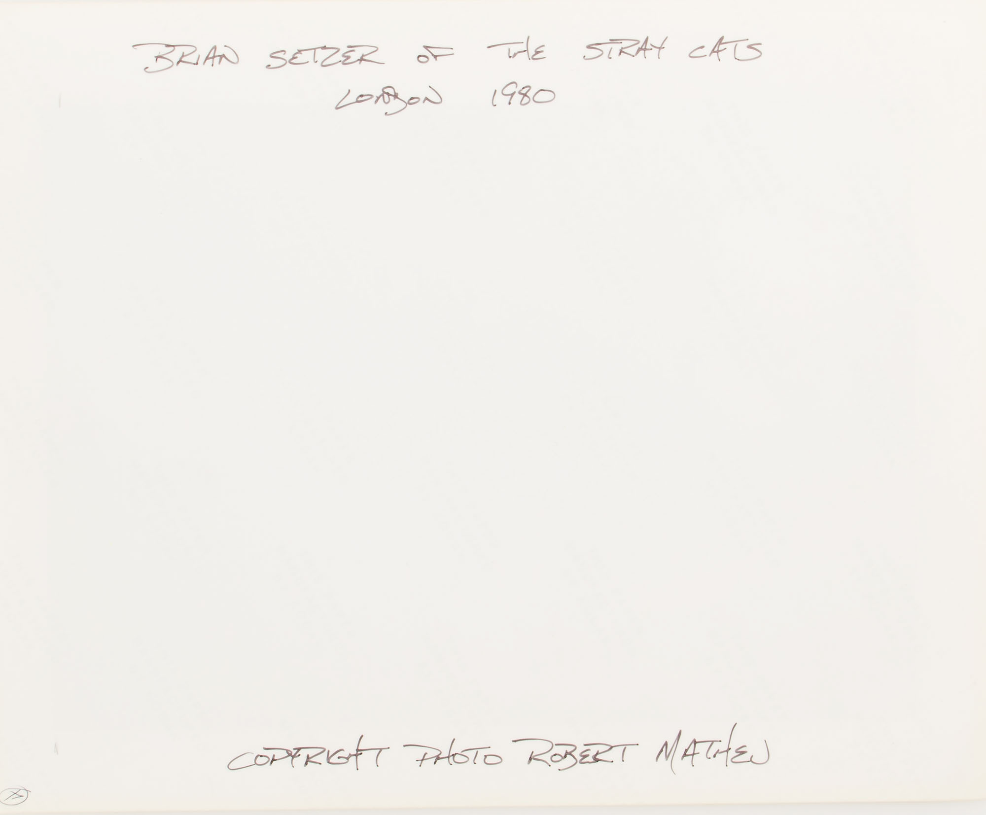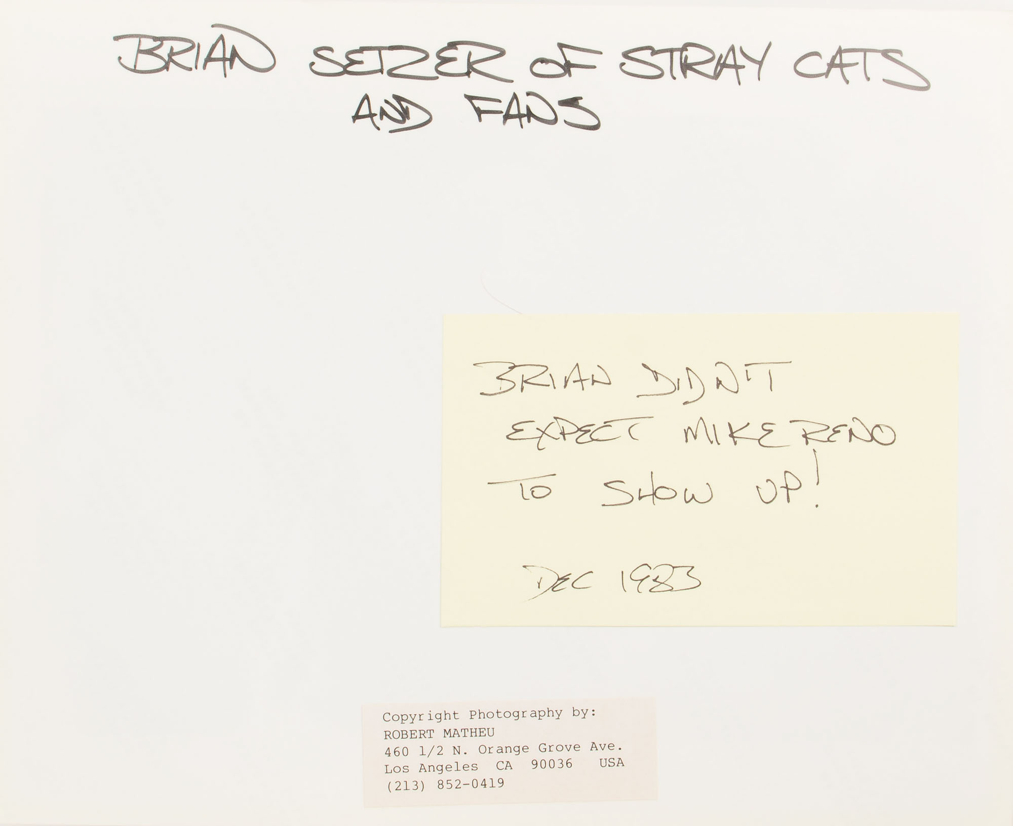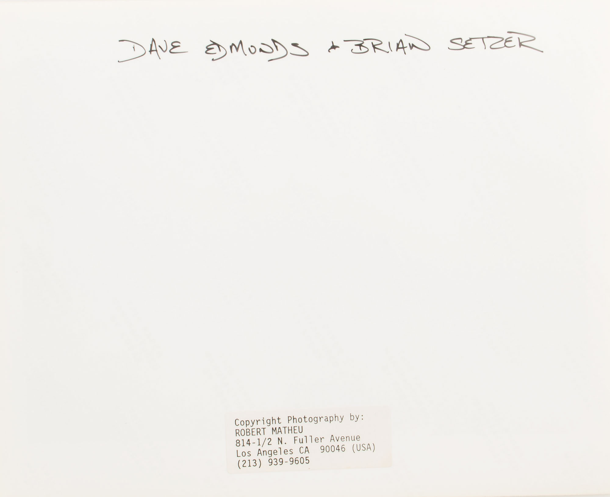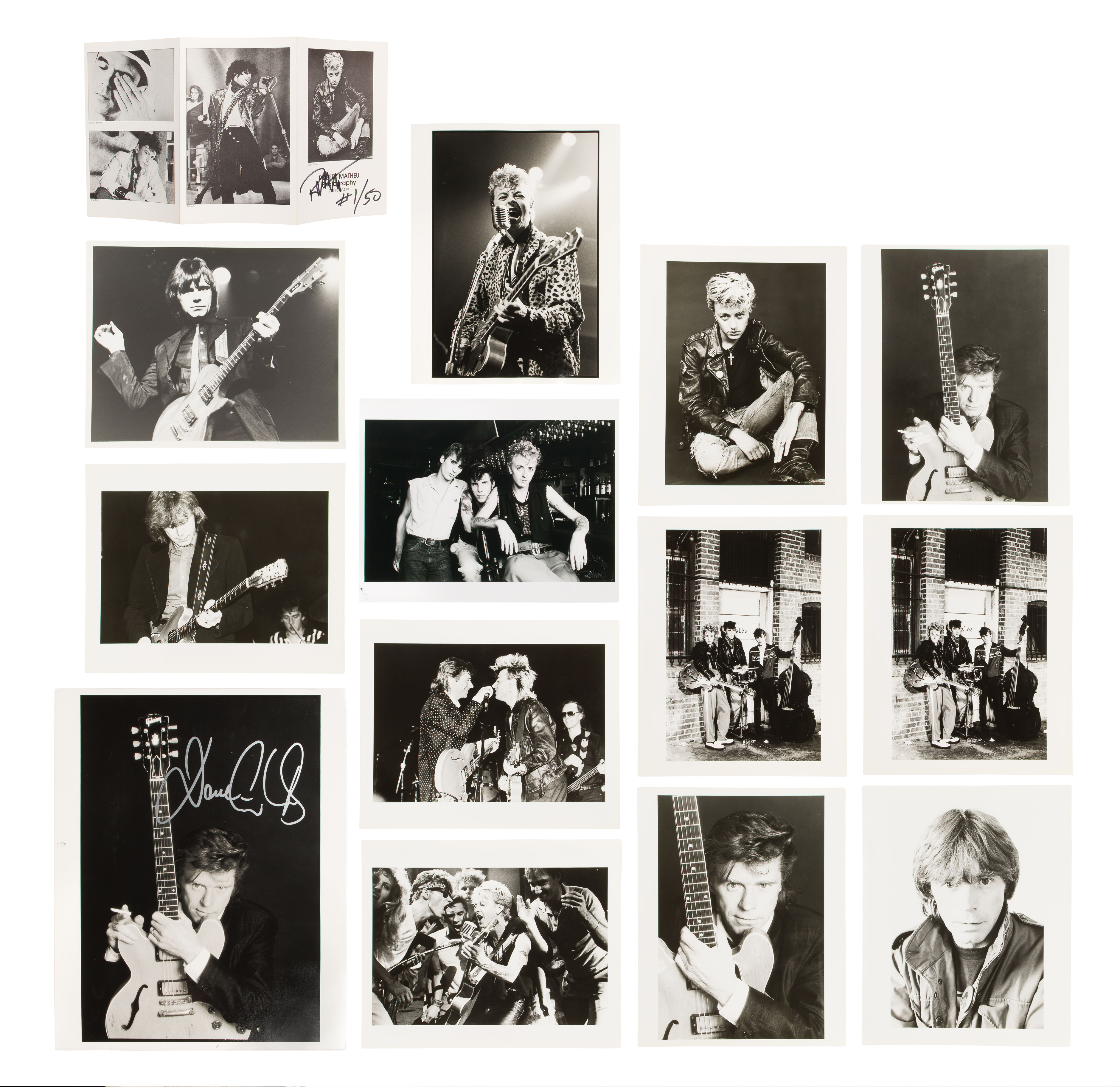 (14) black and white images including (5) of Dave Edmunds, one being signed as well as (8) of Brian Setzer and the Stray Cats as well as a photographer booklet signed by Setzer, most having annotations verso