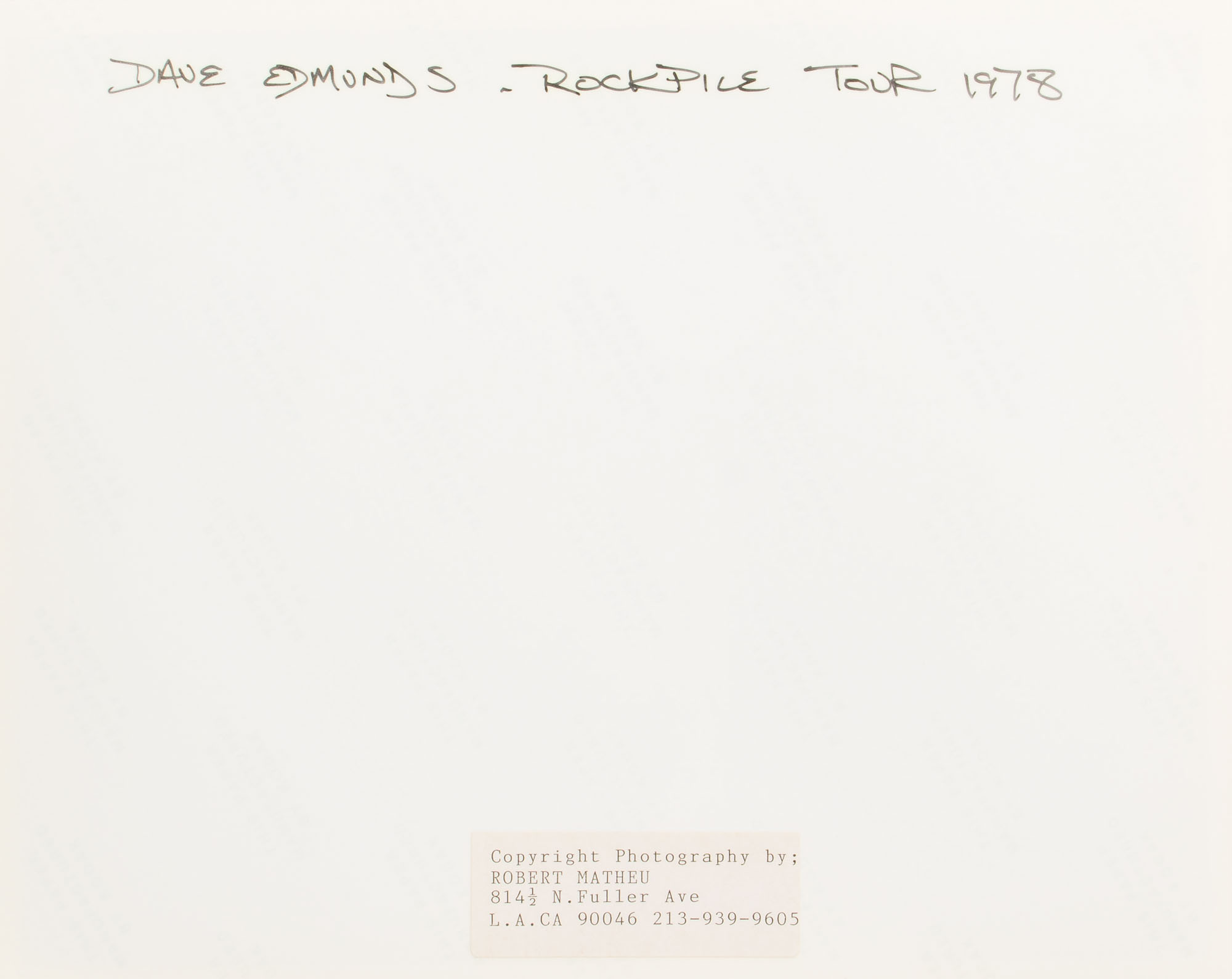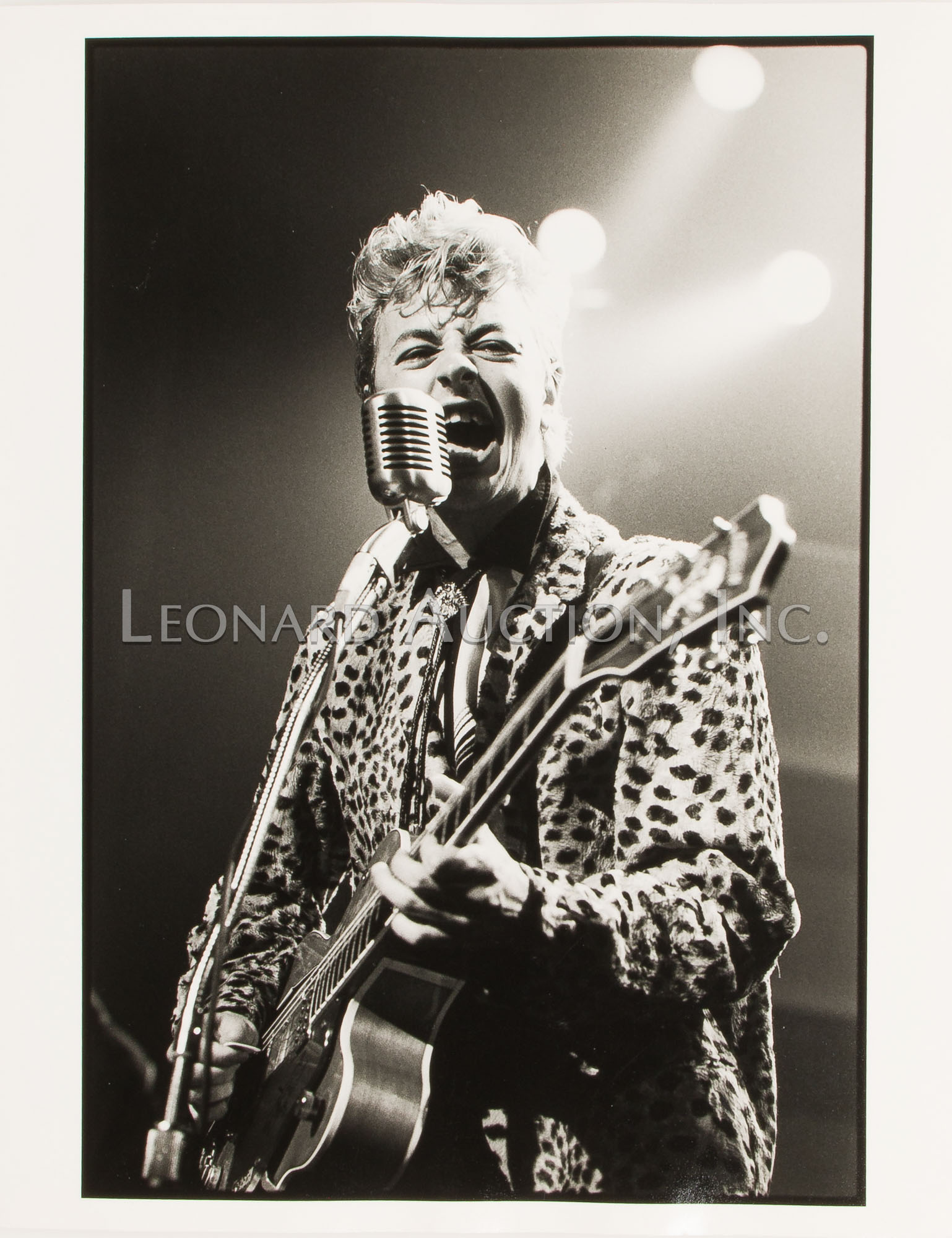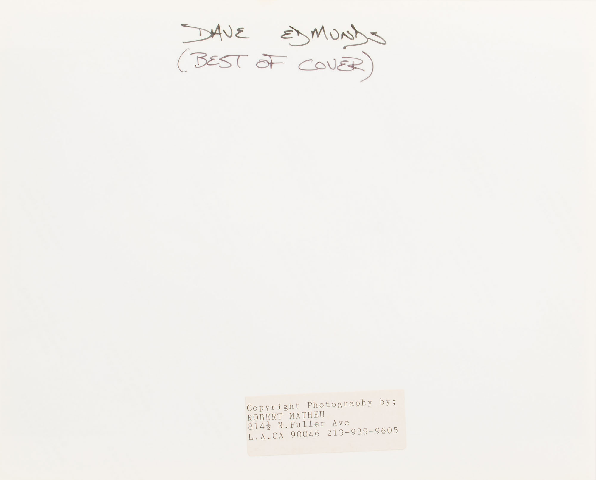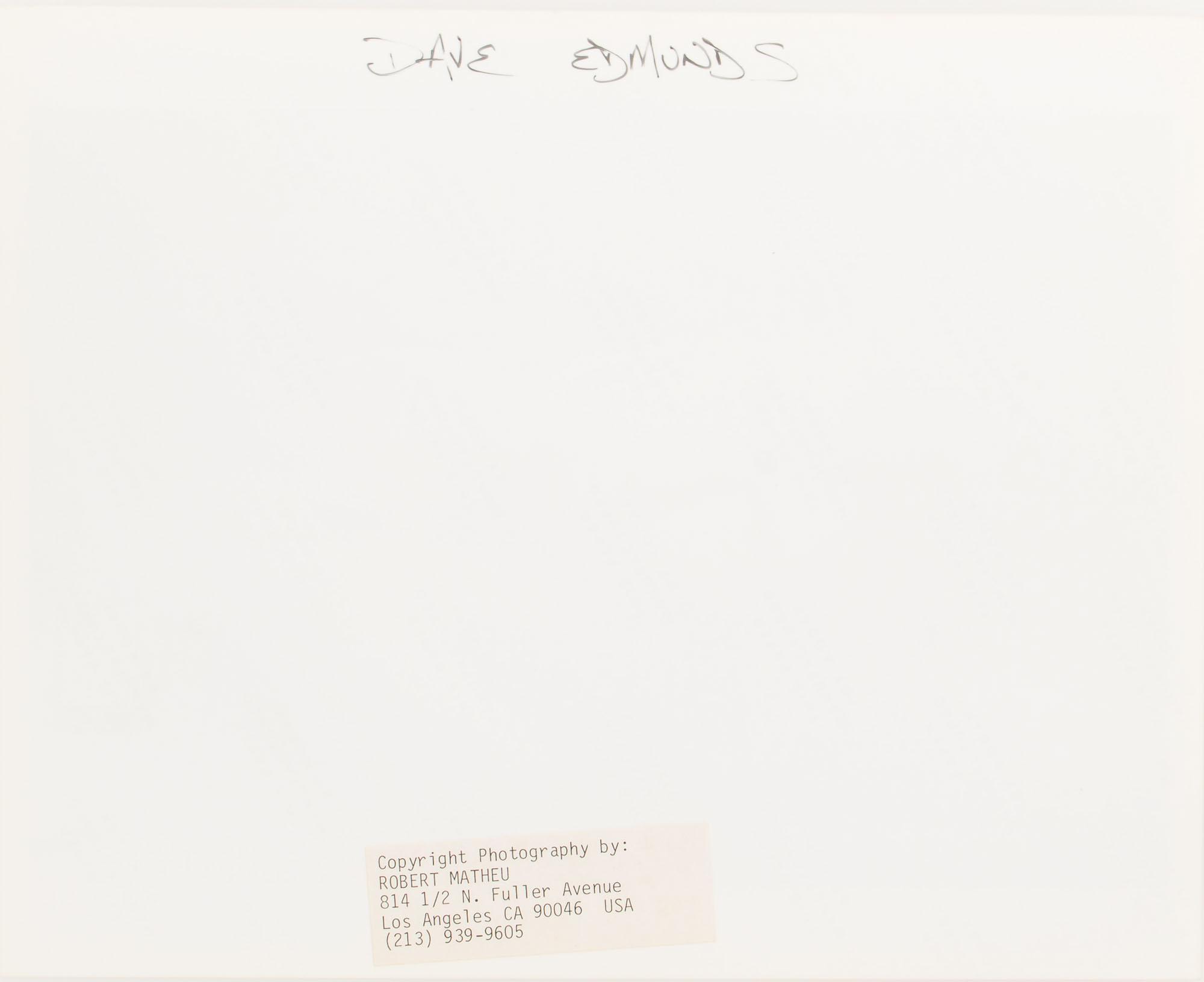 (14) black and white images including (5) of Dave Edmunds, one being signed as well as (8) of Brian Setzer and the Stray Cats as well as a photographer booklet signed by Setzer, most having annotations verso