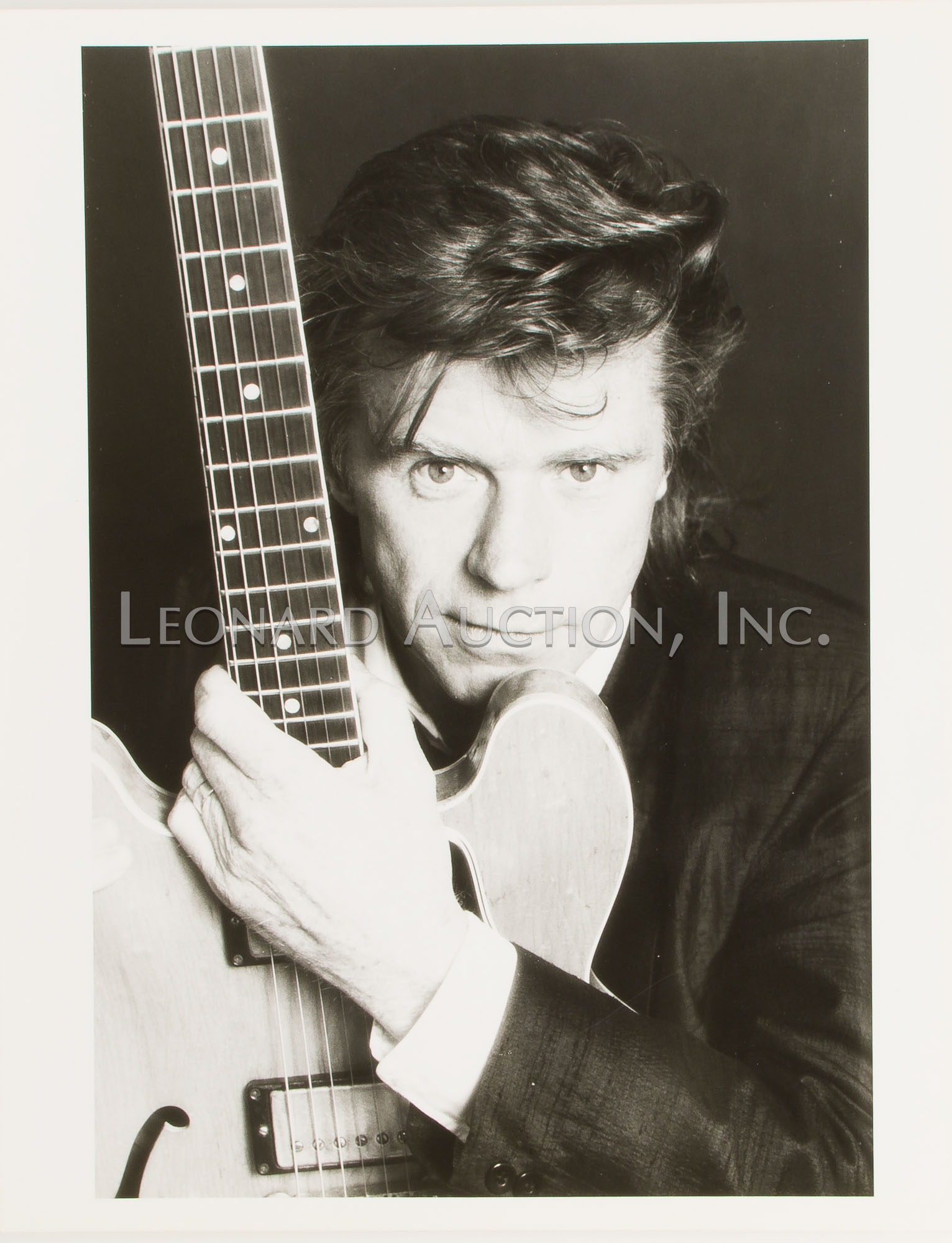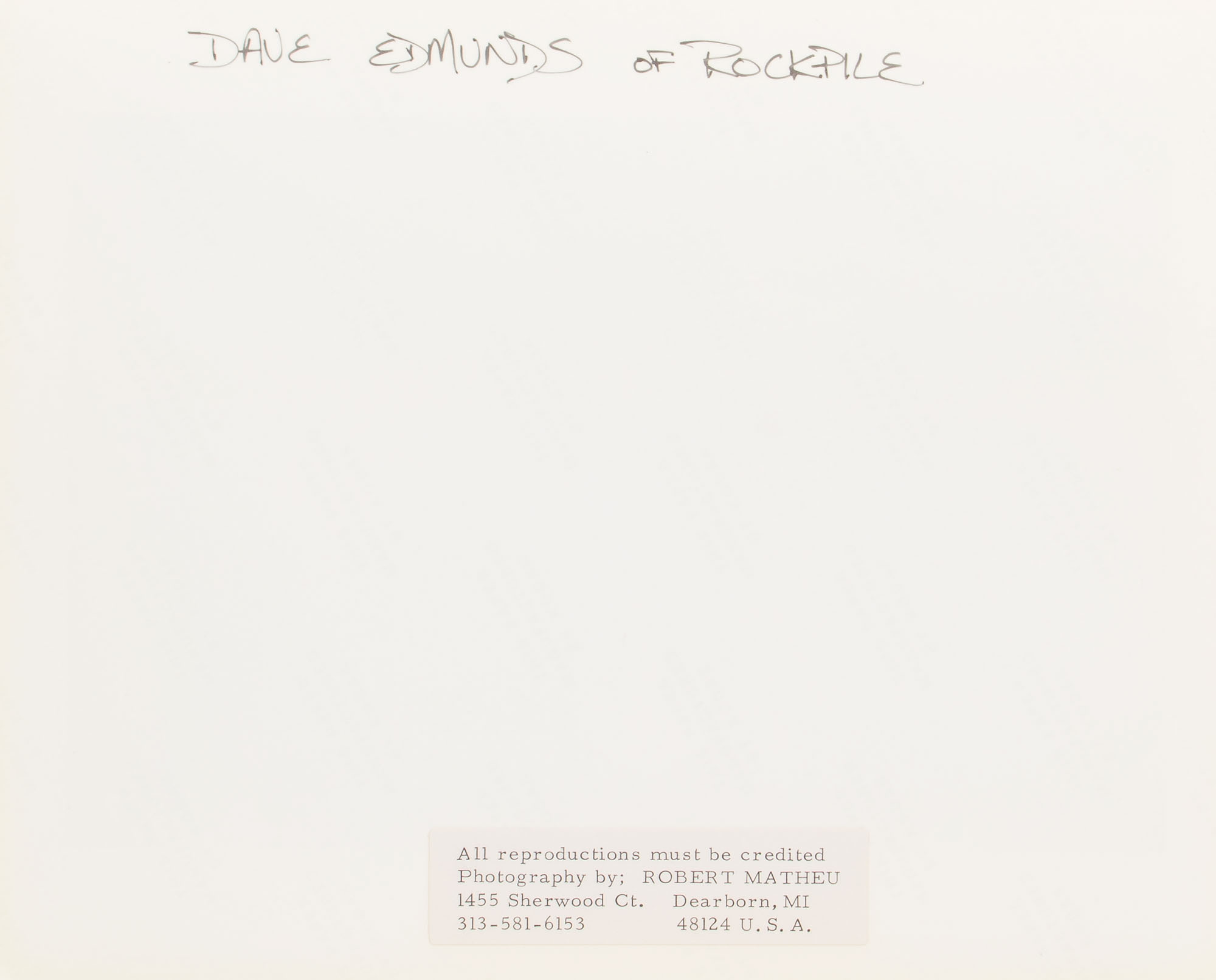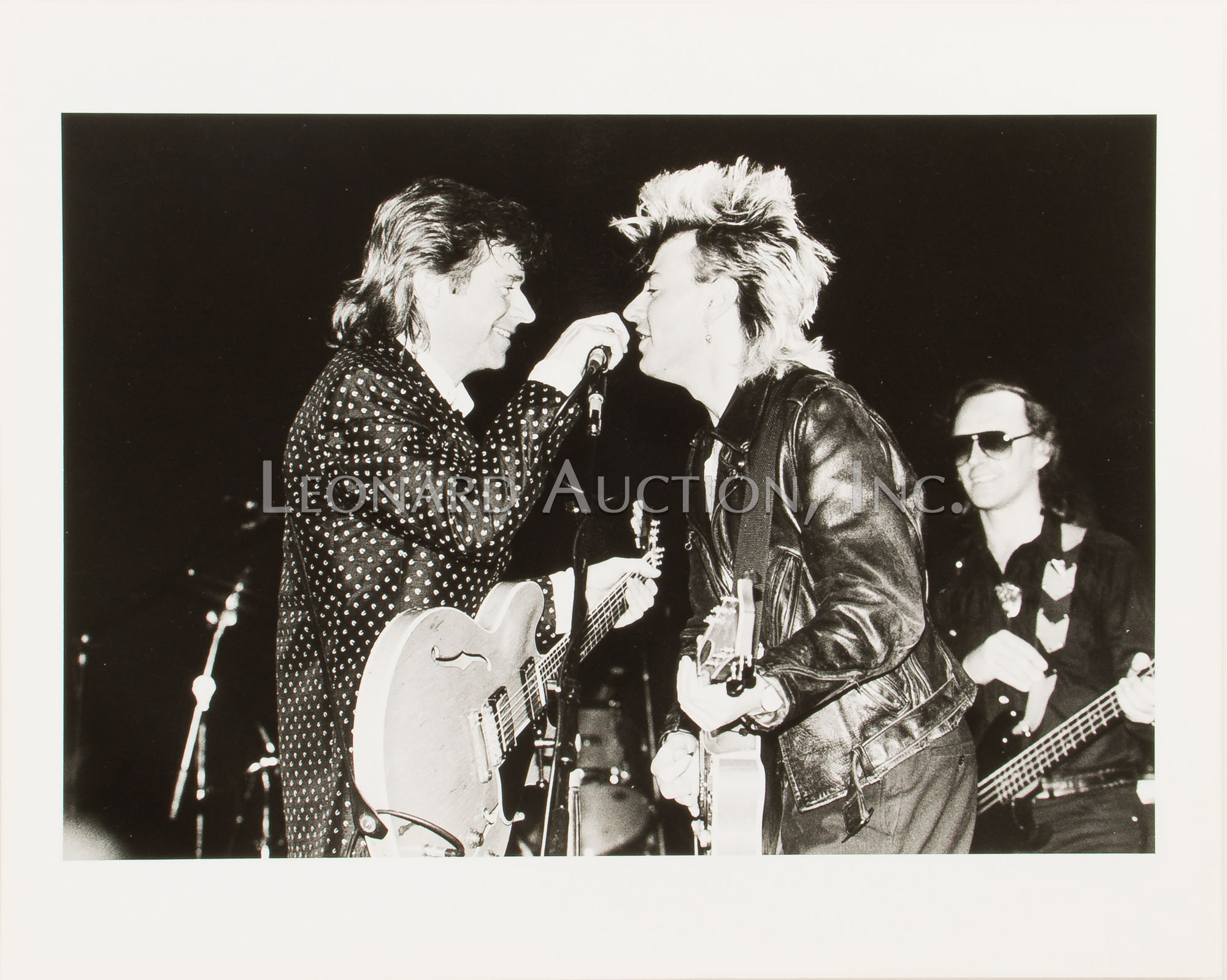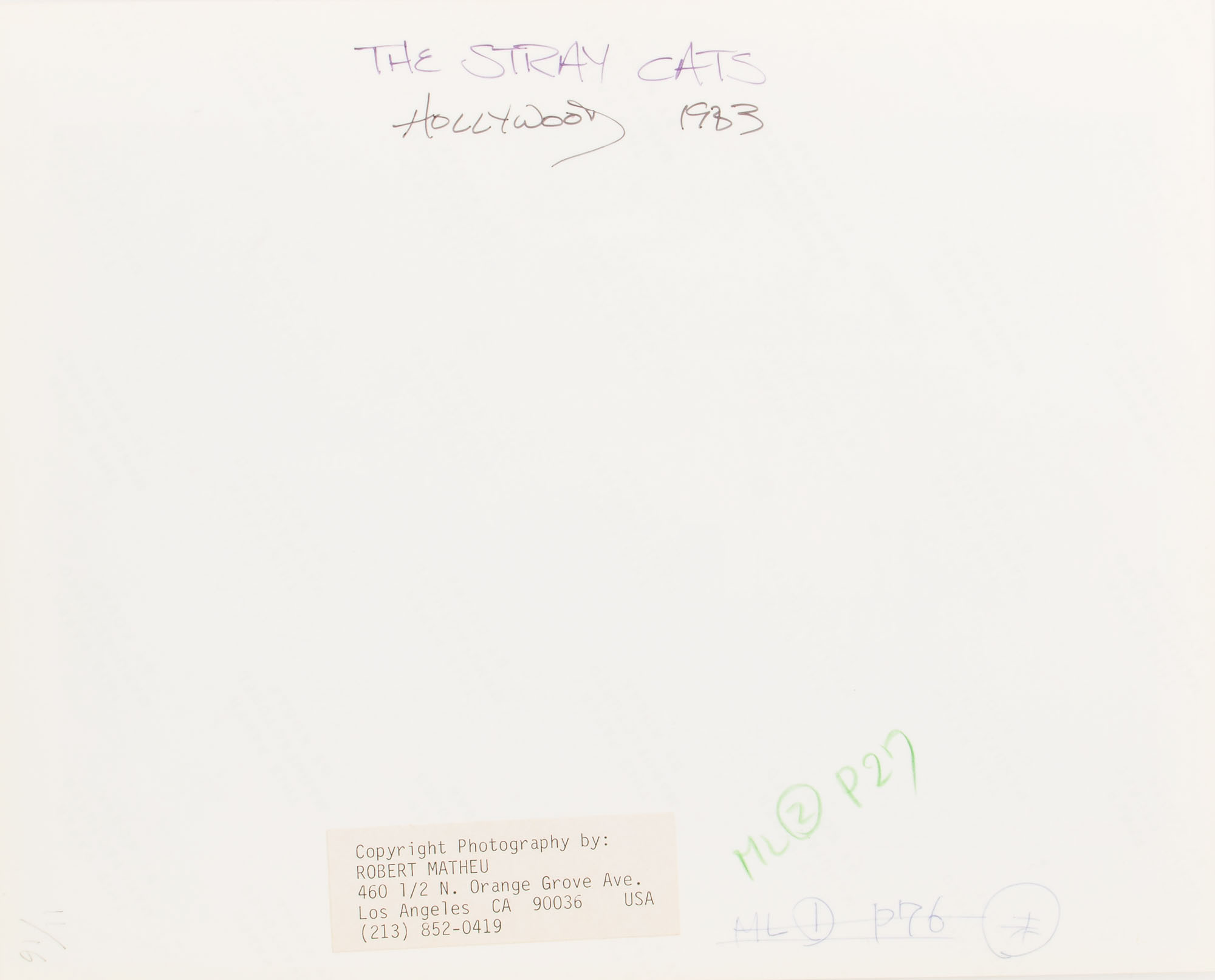 (14) black and white images including (5) of Dave Edmunds, one being signed as well as (8) of Brian Setzer and the Stray Cats as well as a photographer booklet signed by Setzer, most having annotations verso