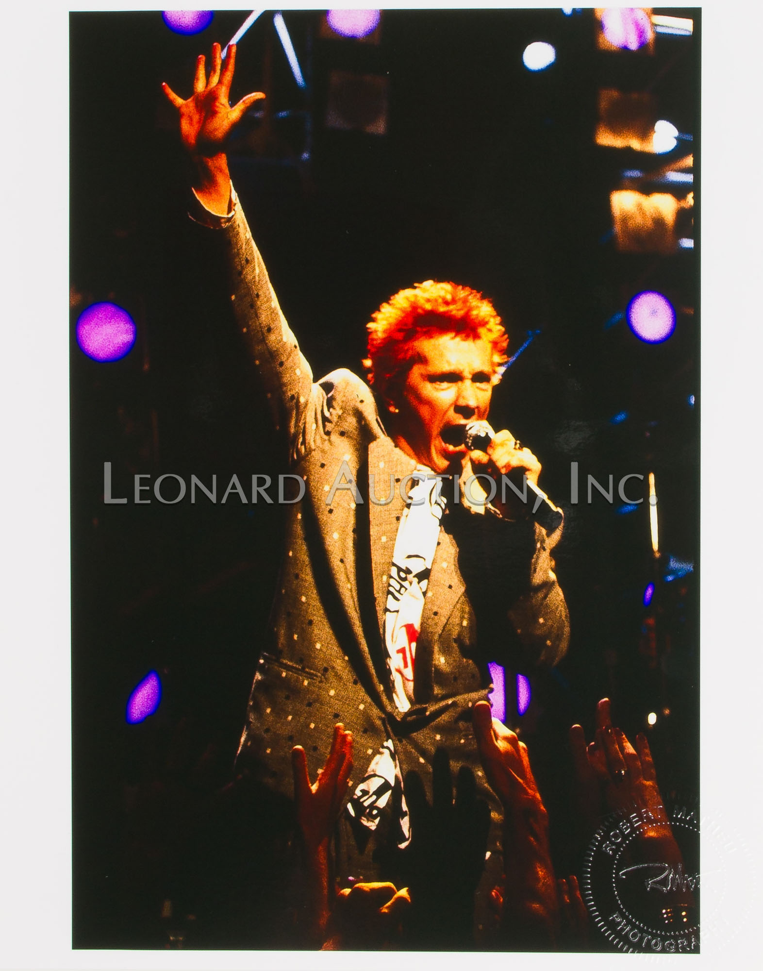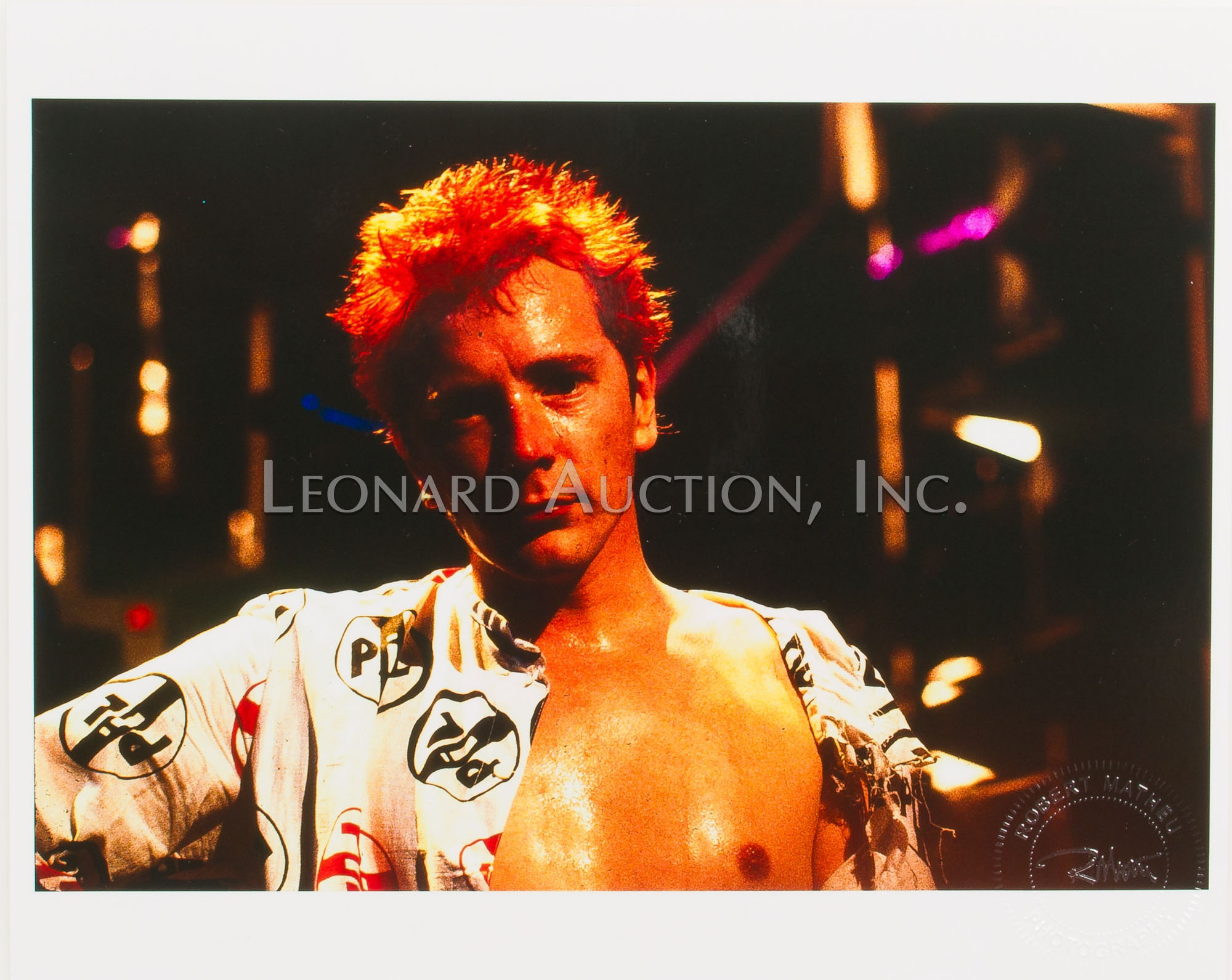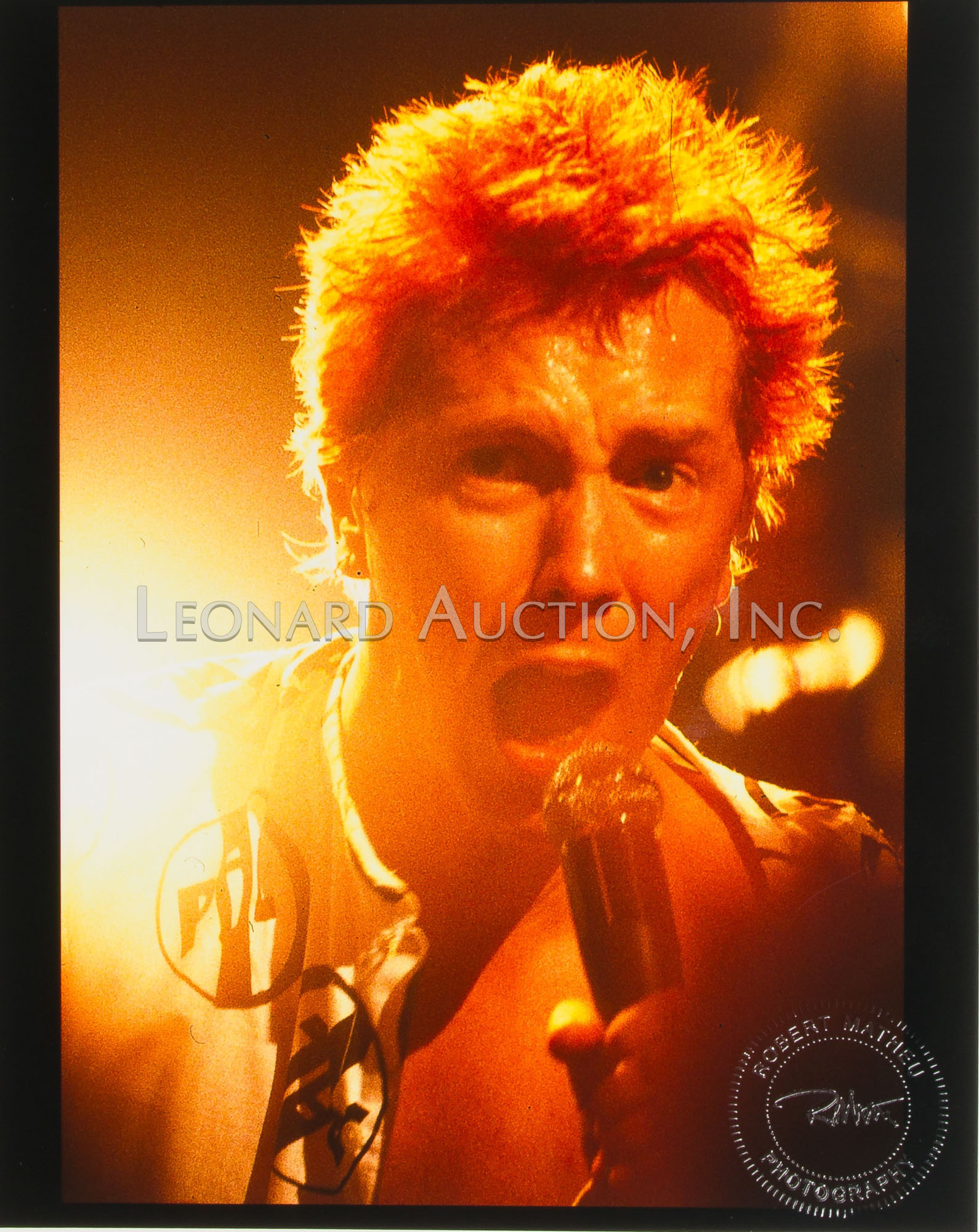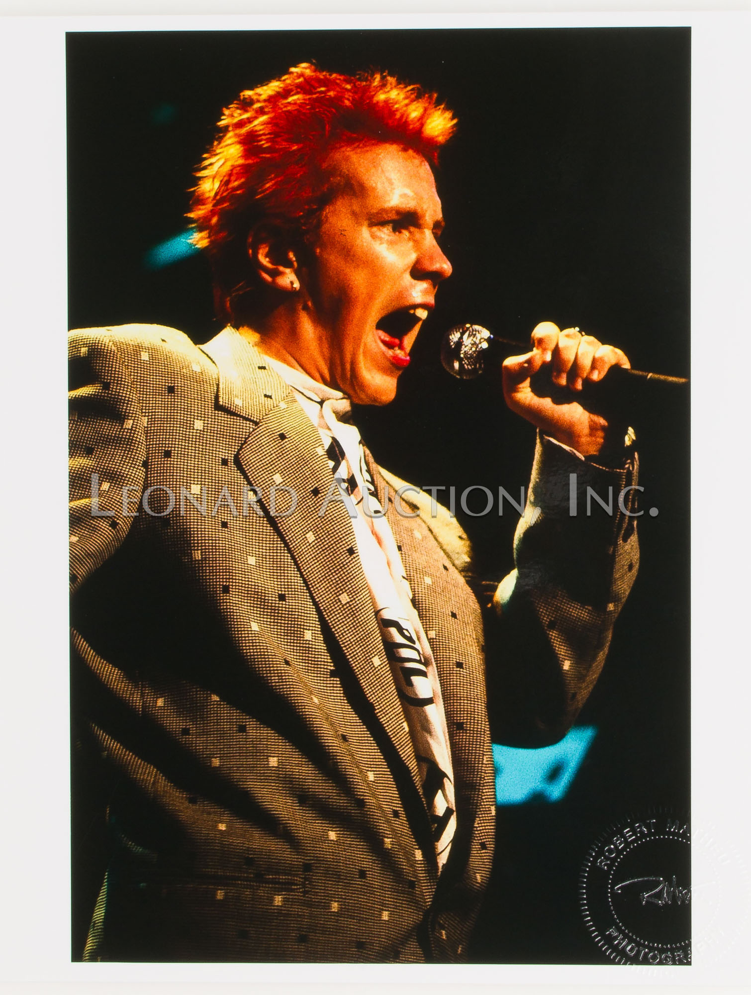 (9) black and white / color images including (5) of Steve Jones from the Pretenders with three having photographer blind stamp, two having annotations verso as well as (4) color images of John Lydon from the Sex Pistols performing, all having photographer blind stamp