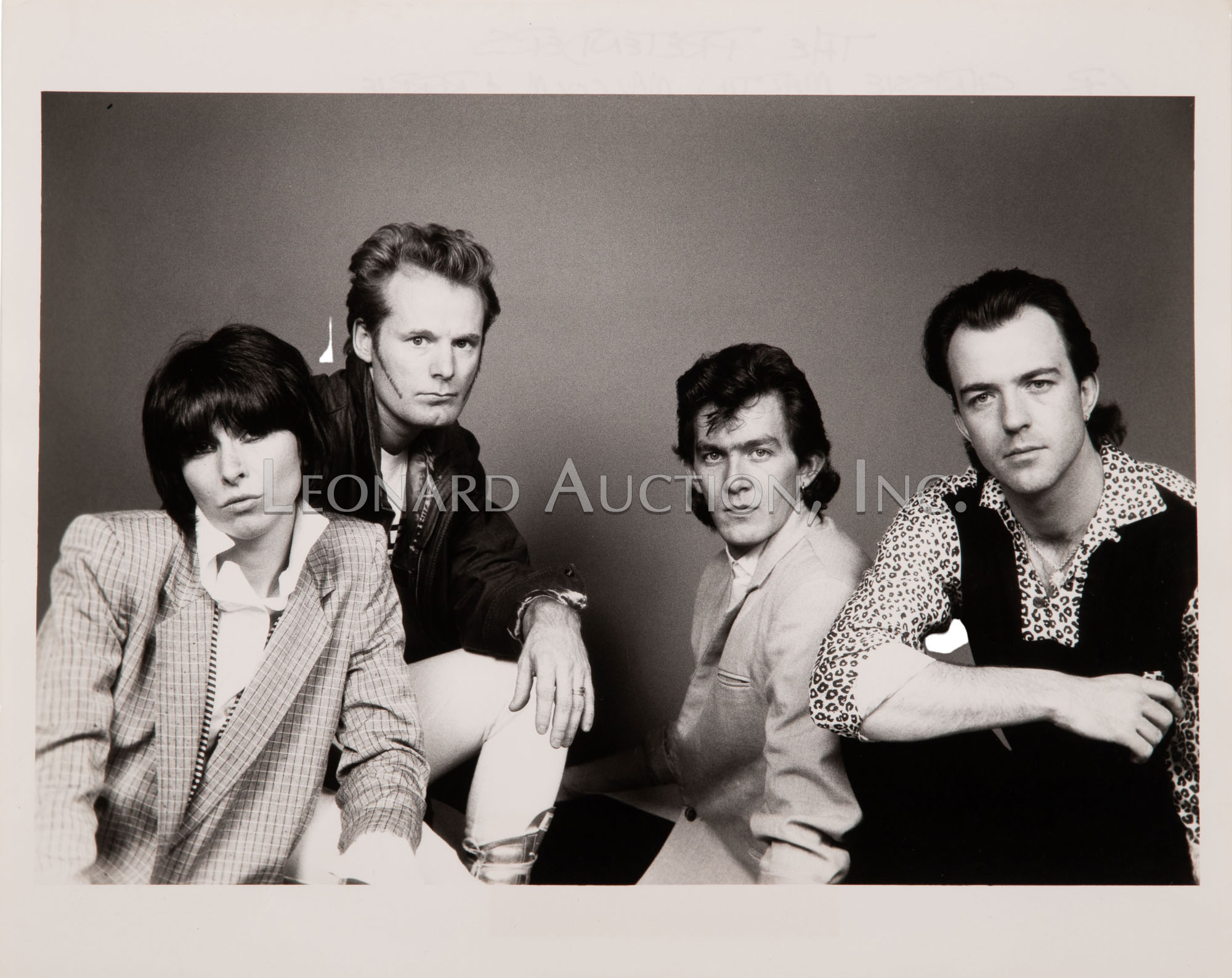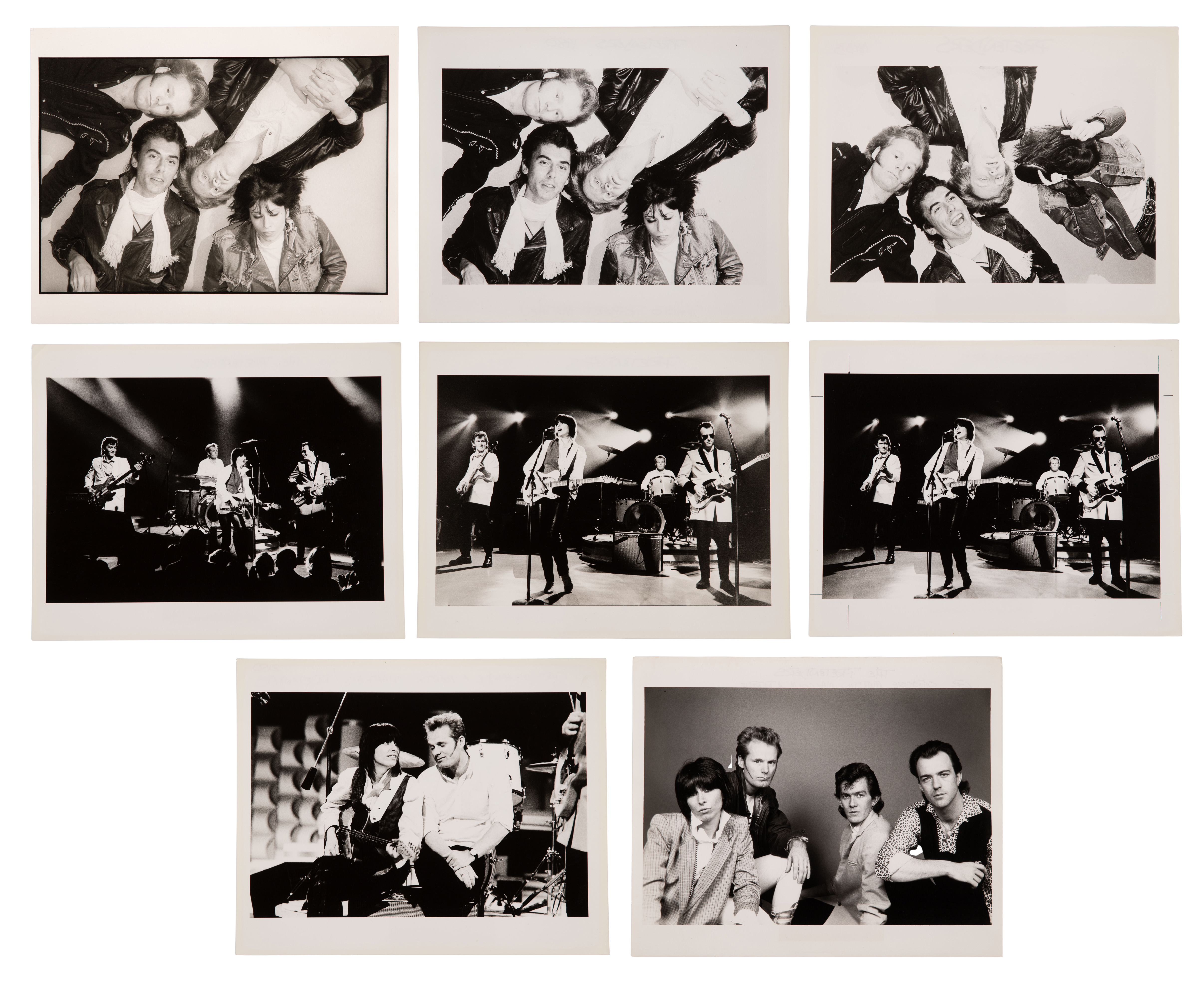 (8) black and white photographs of The Pretenders, group and performing, all having photographer annotations and label verso