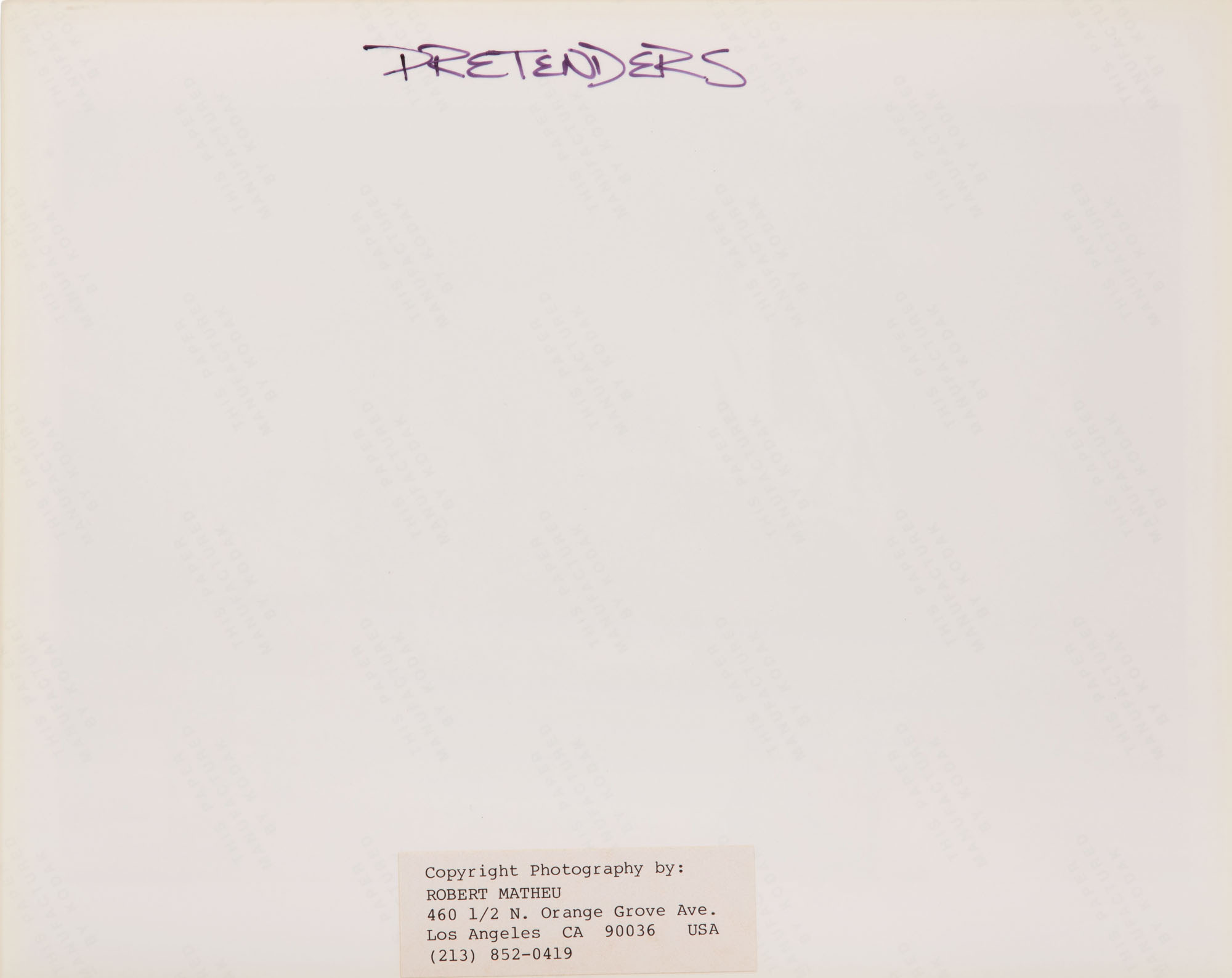 Robert Matheu (American, 1955-2018) The Pretenders Photograph Assortment