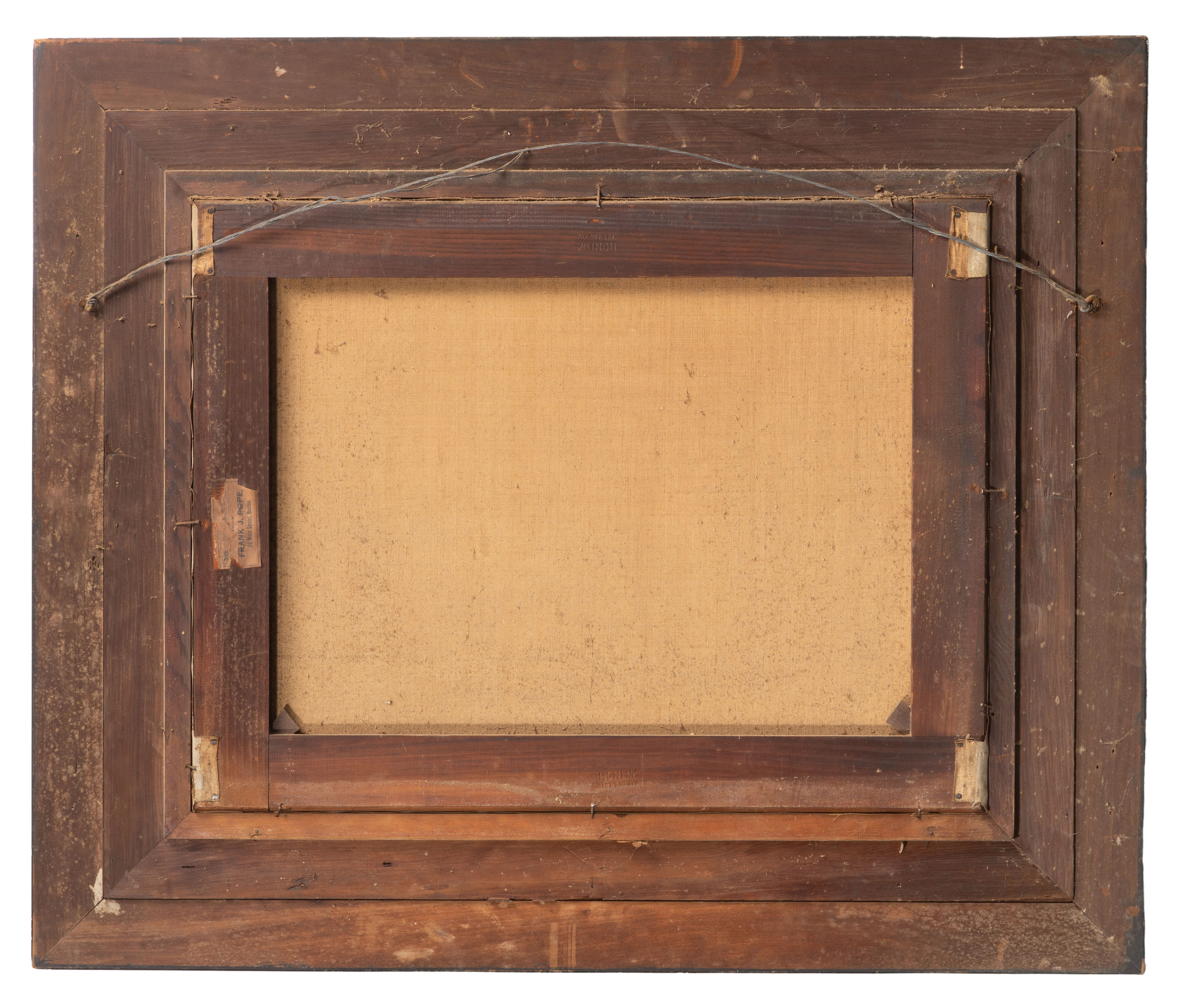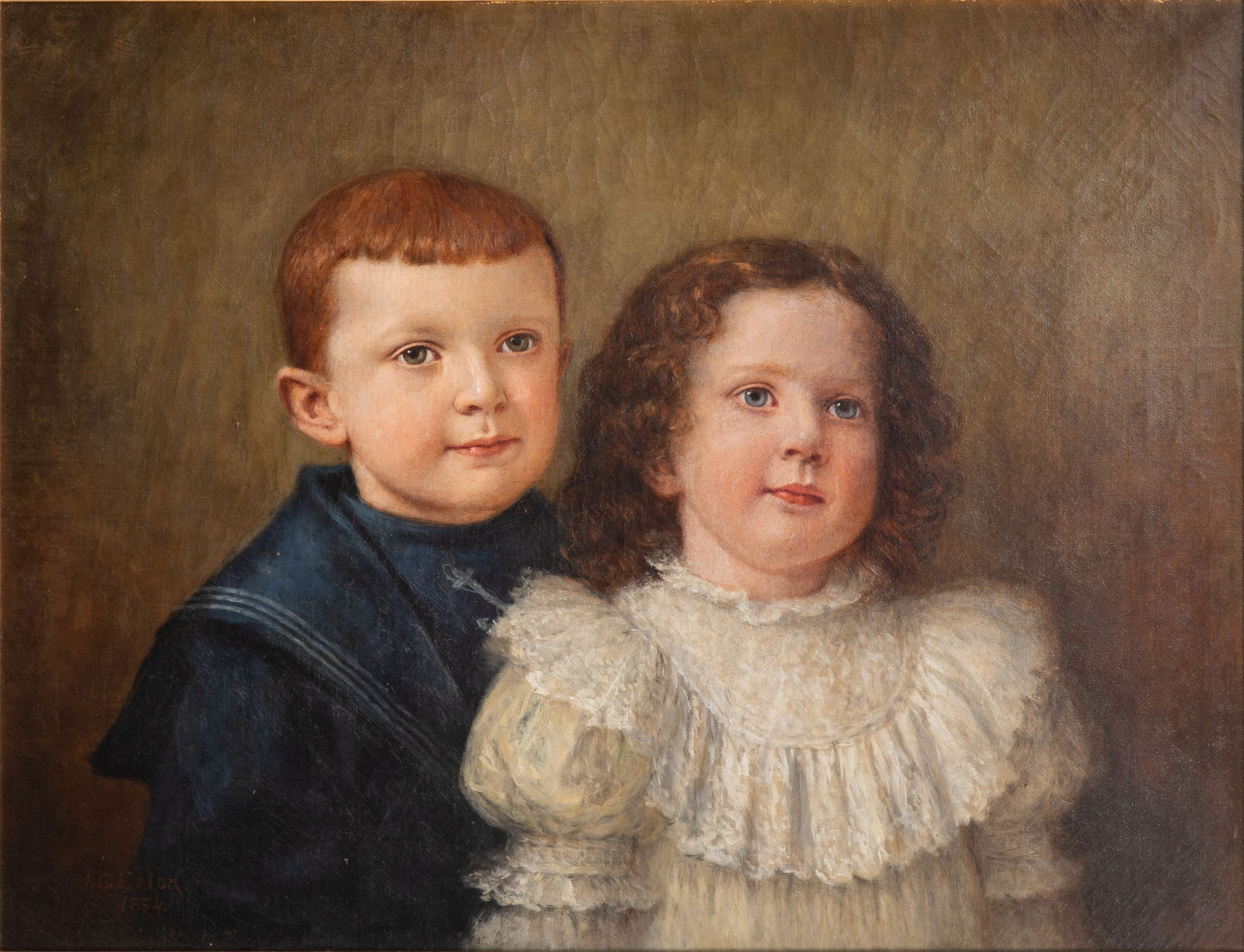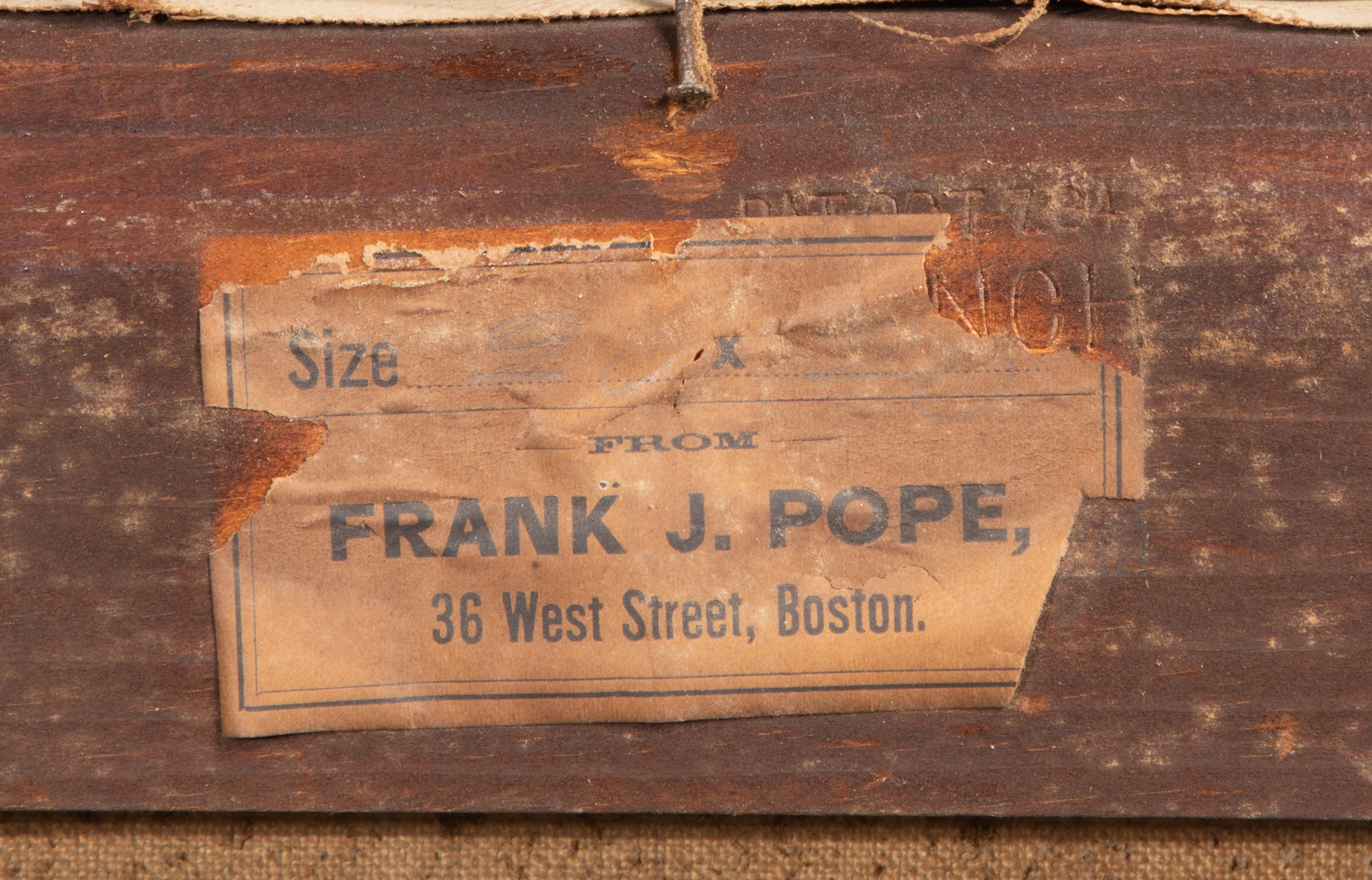 Undated and unsigned double portrait of children, having a gilt and gold-tone painted gesso on carved wood frame, the stretcher retaining a paper label of Frank J. Pope, Boston, 19th century dealers in art materials