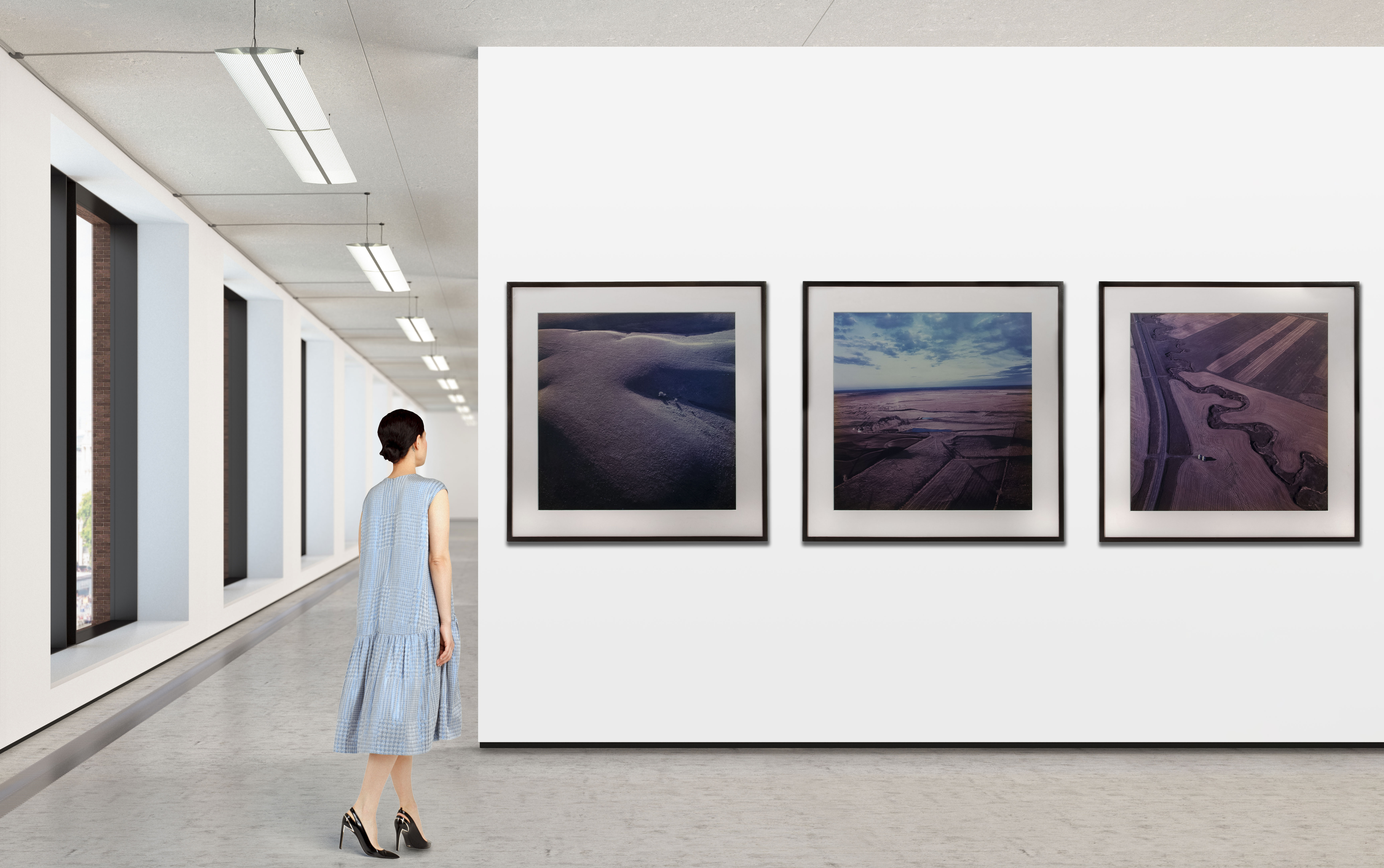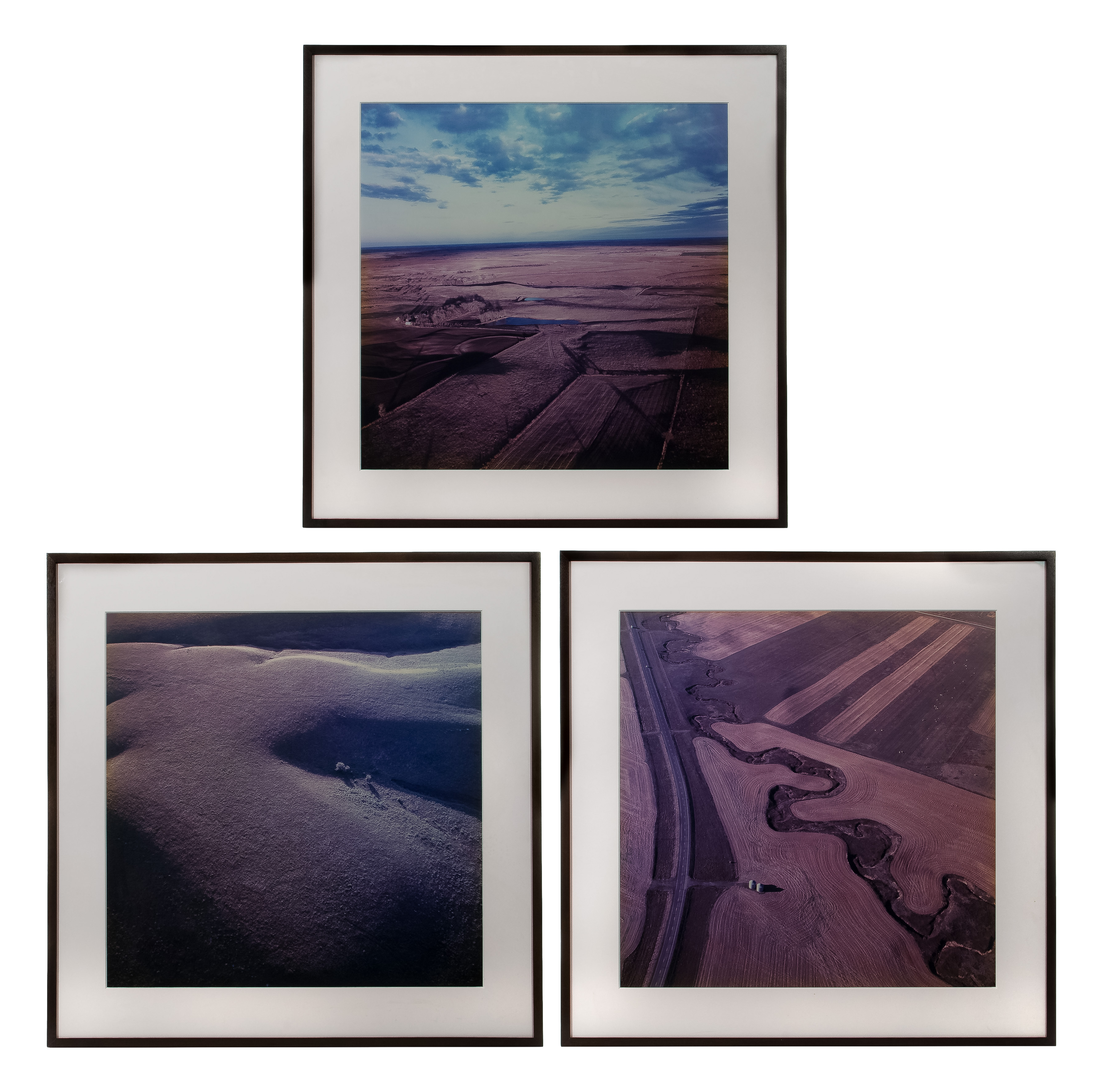 (3) items including a ‘Konza Prairie, Kansas, 1982’ #3/10, a ‘Two Ponds and Sky, Saline County, Kansas 1989’ #3/10 and a ‘Fields and Silos, North Dakota 1997’ #1/10, all signed, titled, dated and numbered verso of sheets, visible through fenestration of backing boards, having label of Patti Gilford Fine Arts, Chicago, Illinois, uniformly matted behind acrylic in wood frames