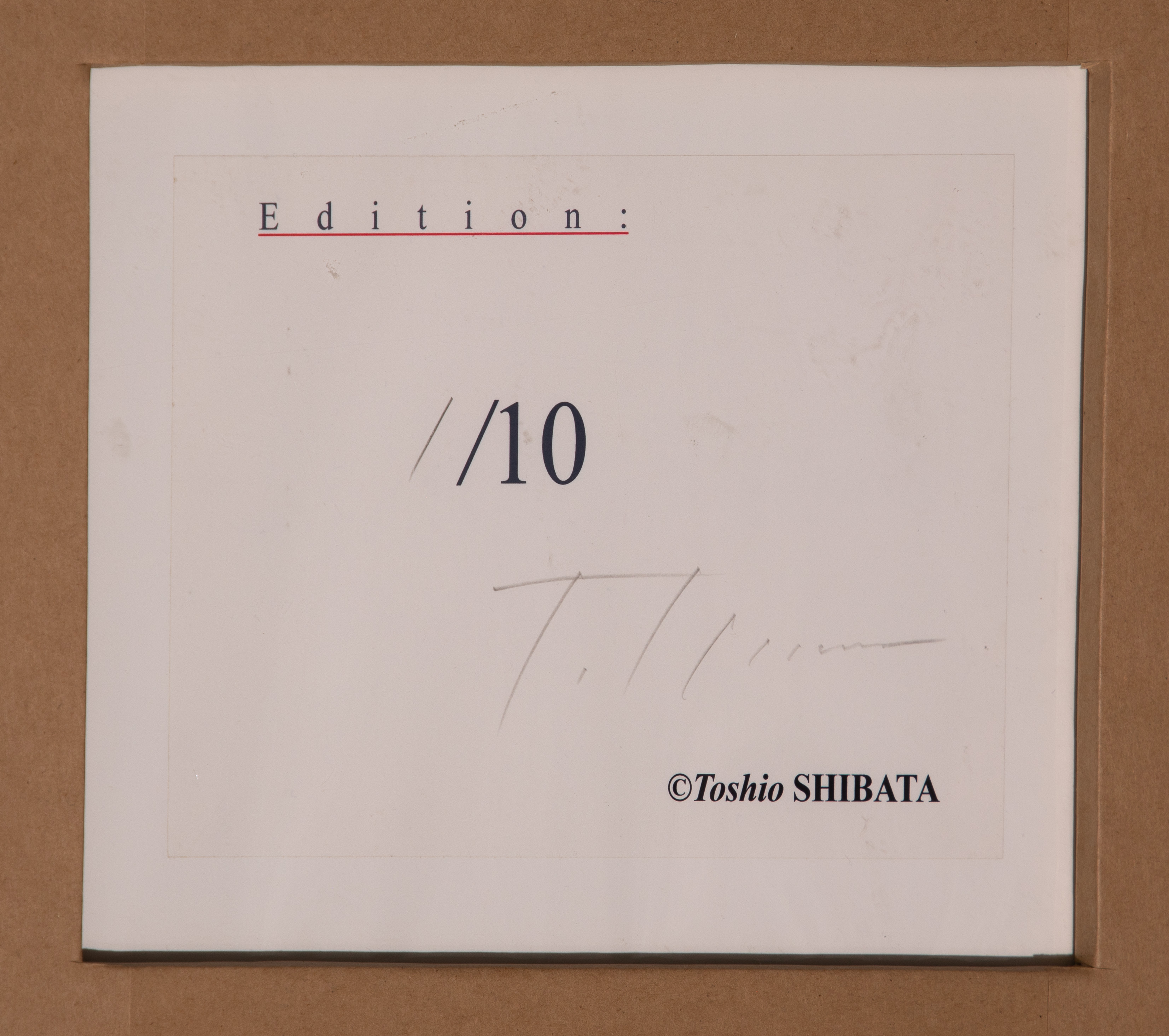 Undated, pencil signed and #1/10 verso of sheet, visible through fenestration of backing board having label of Patti Gilford Fine Arts, Chicago, Illinois, matted behind acrylic in wood frame