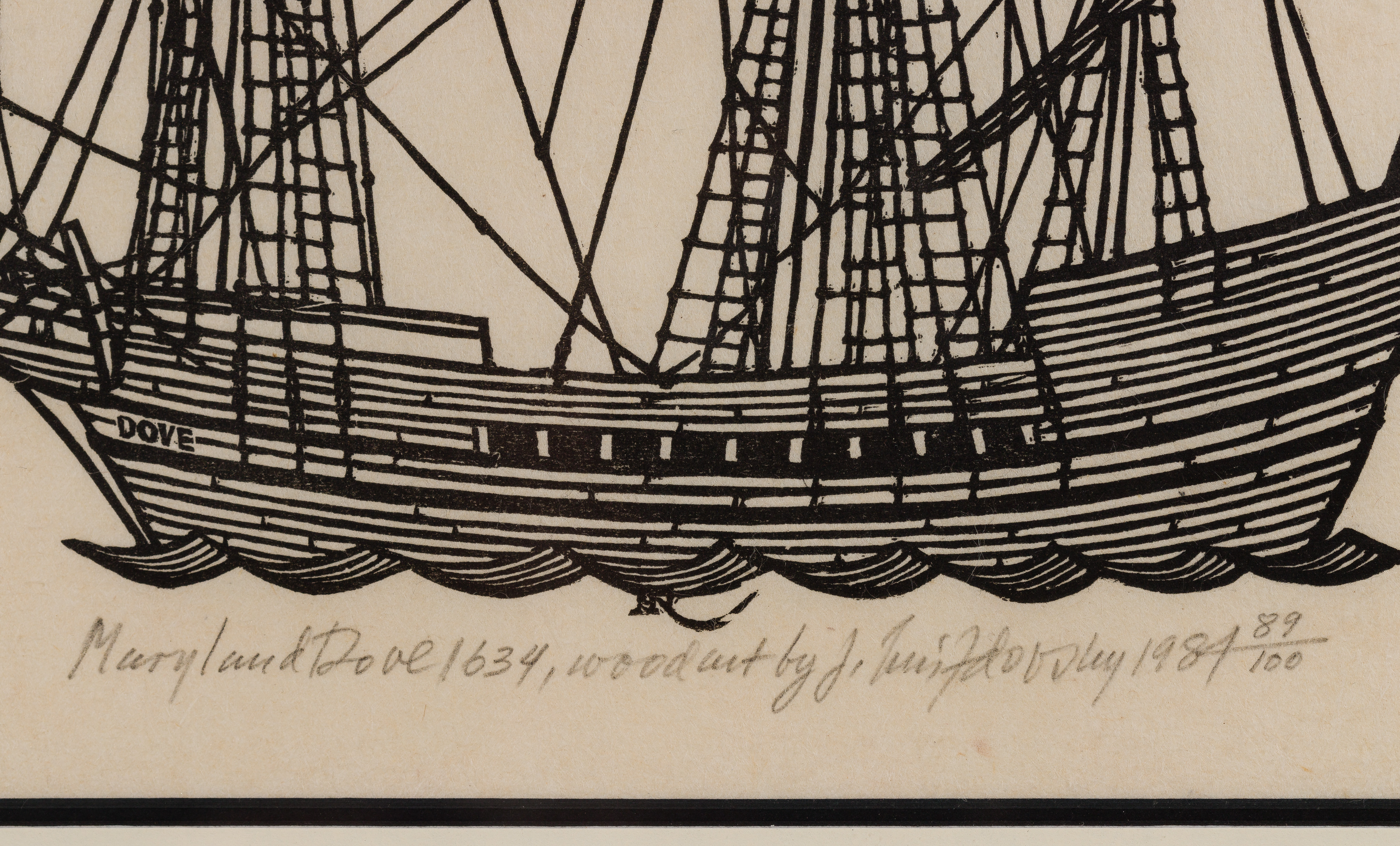 1984, pencil signed, titled and #89/100 lower center margin, depicting a ship, matted under glass in a wood frame