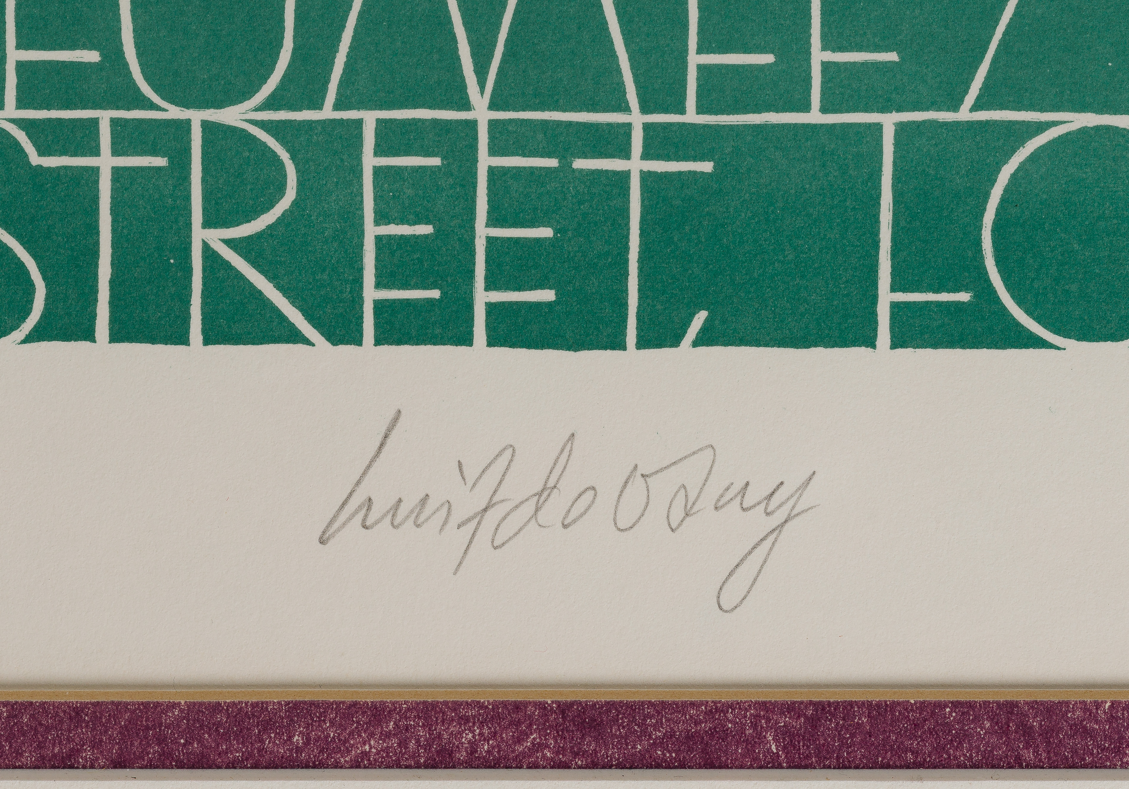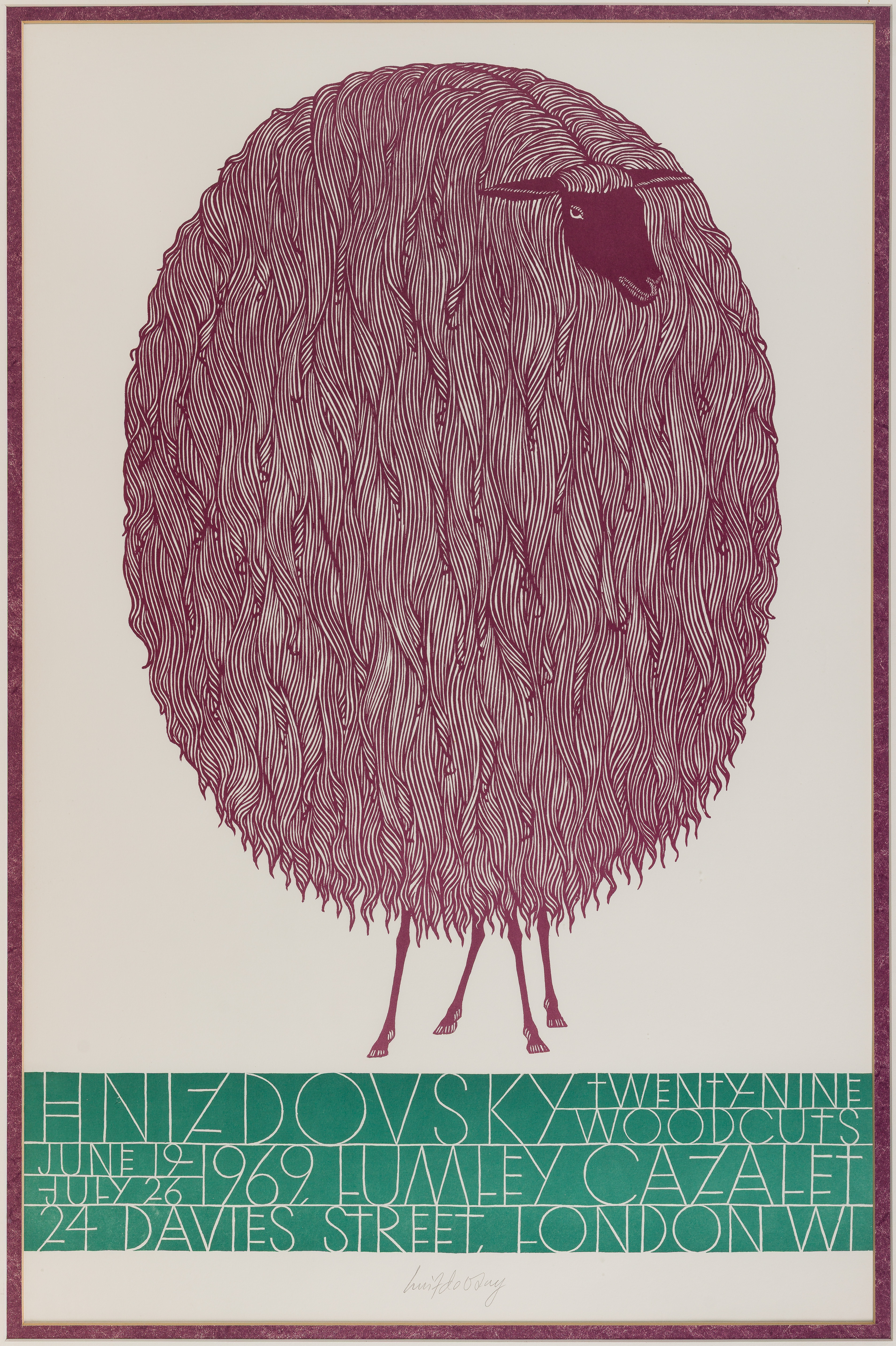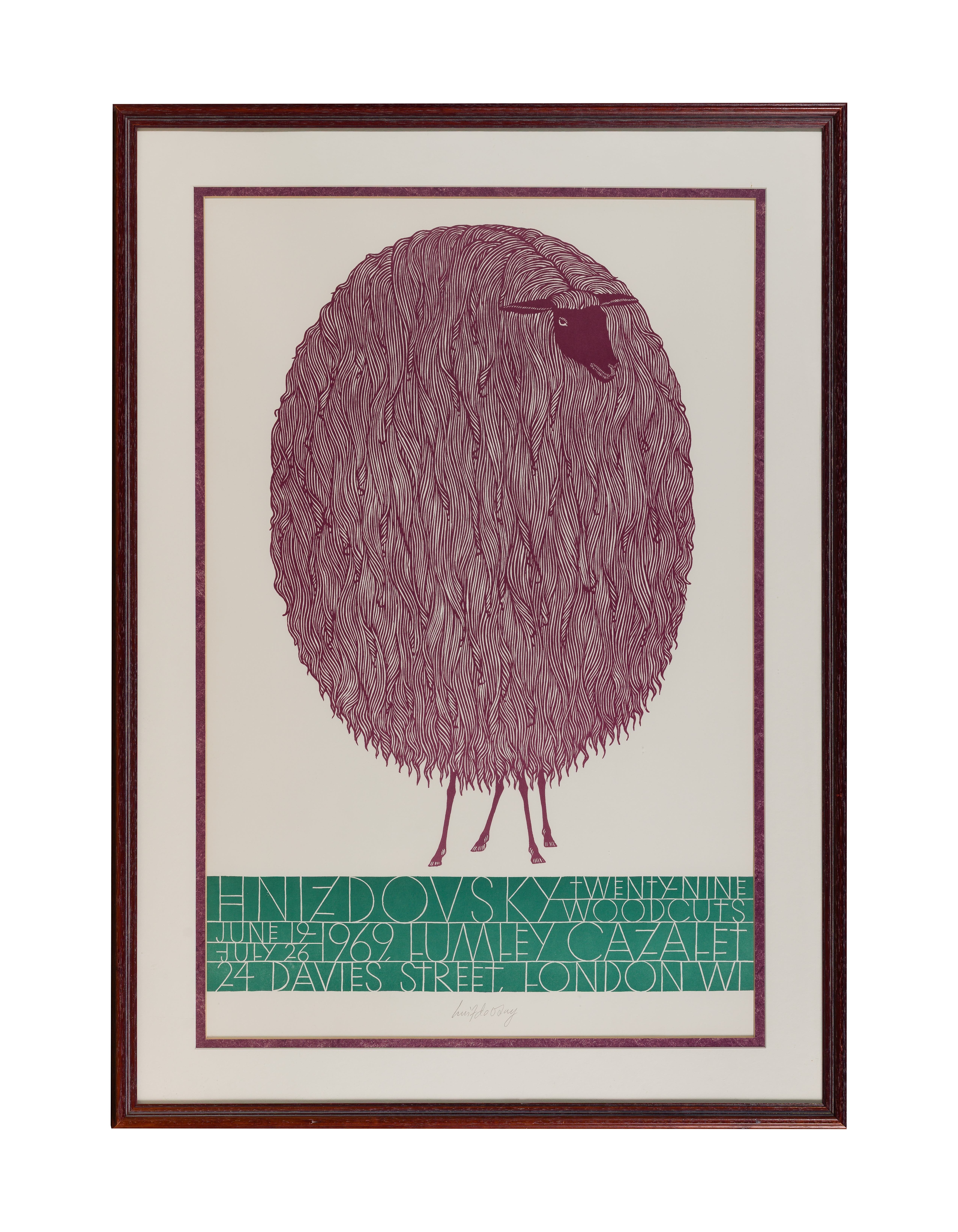 1969, pencil signed lower center margin, a poster of a London Art Show depicting a single sheep, matted under glass in a wood frame