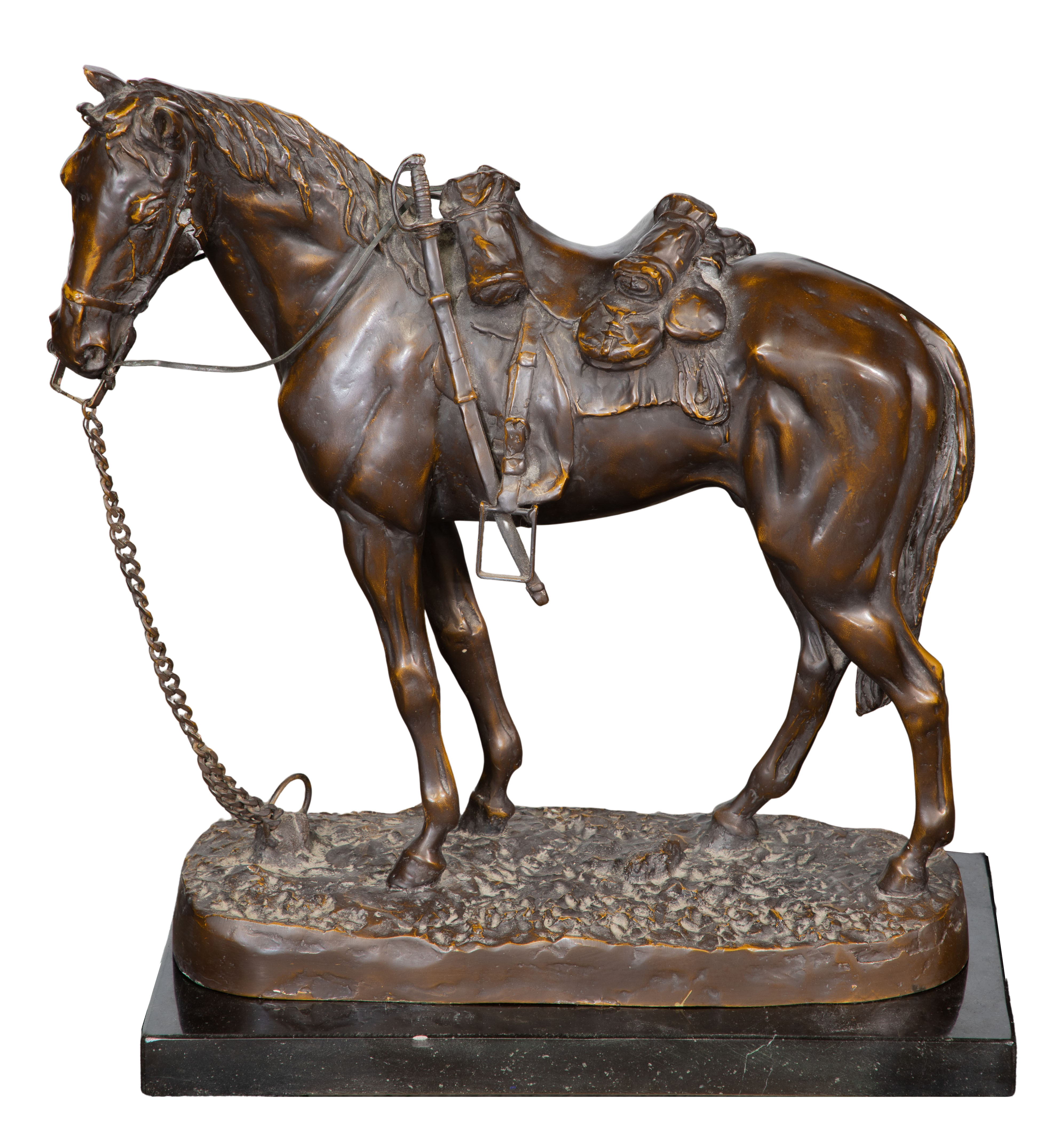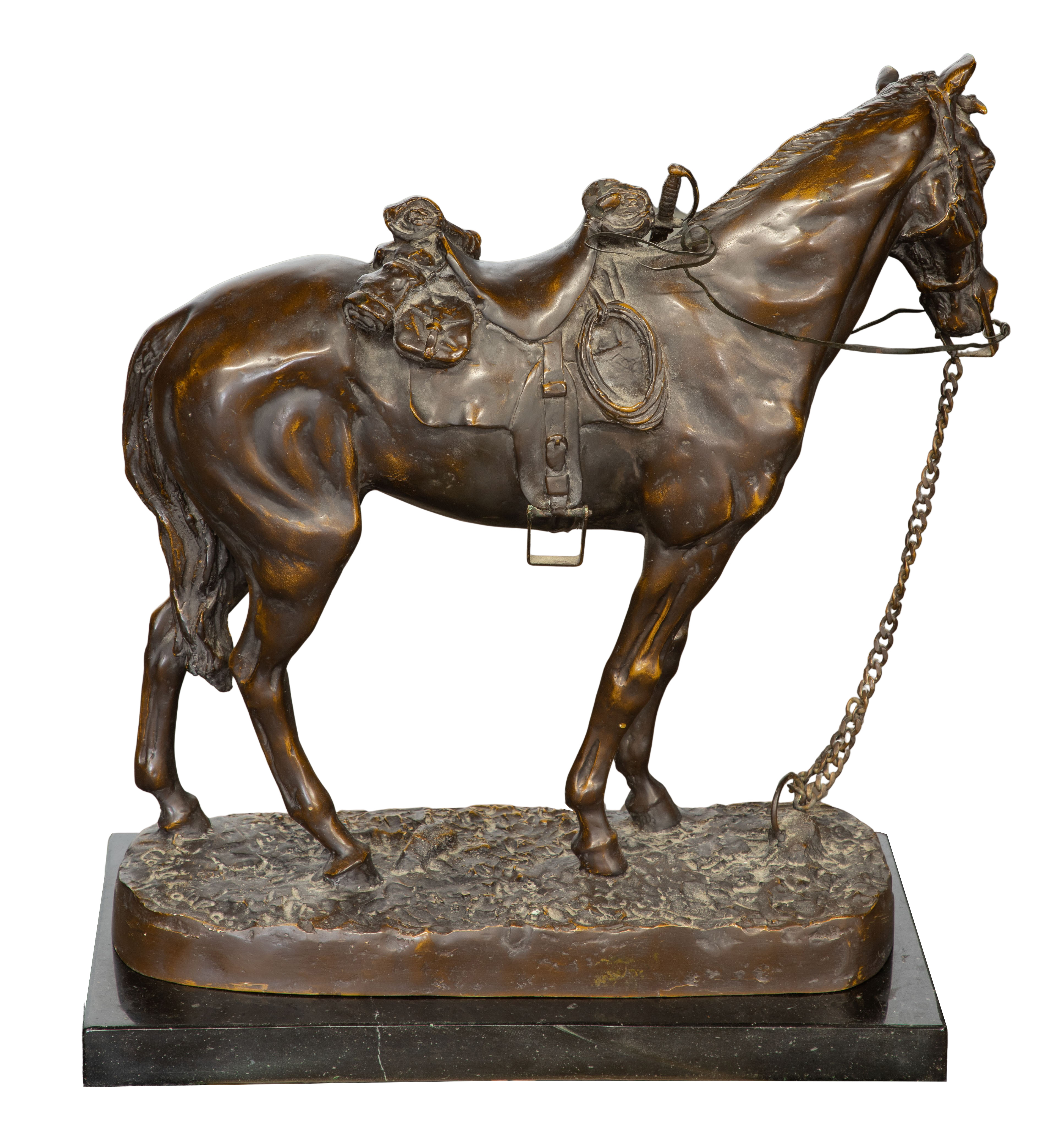 Undated, cast signature to top of bronze base, depicting a saddled horse, loose on a marble plinth