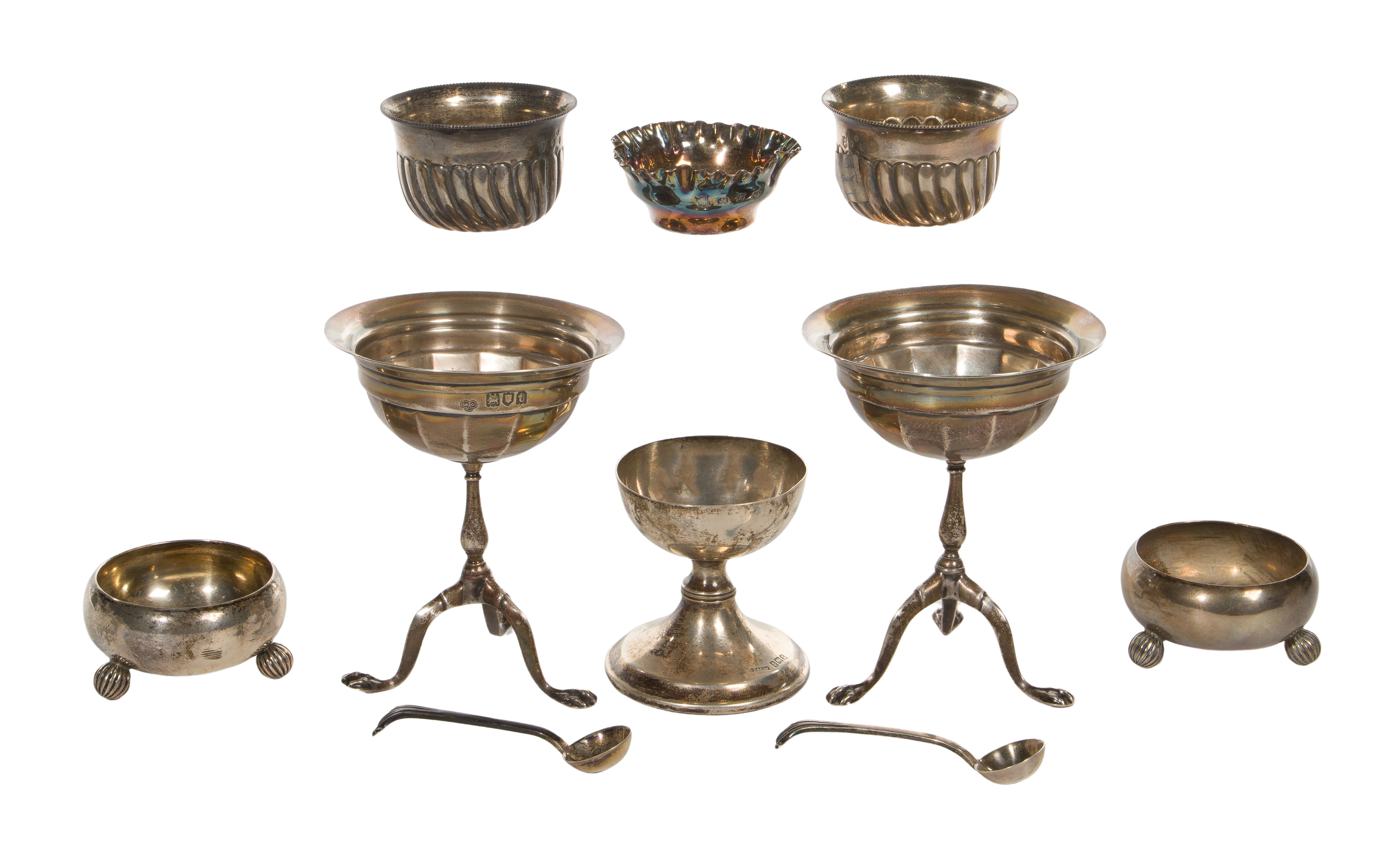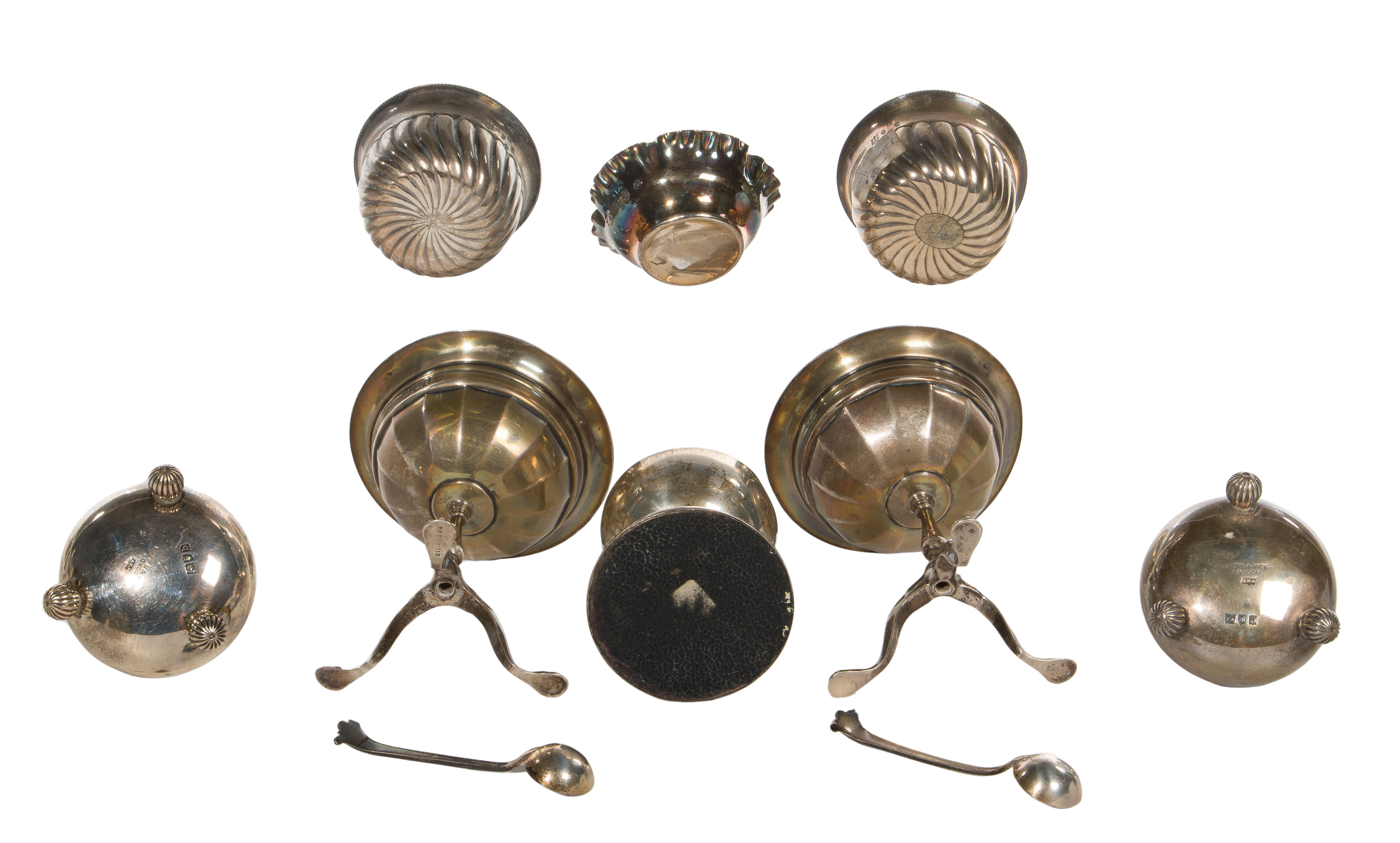 English Sterling Silver Salt Cellar and Spoon Assortment