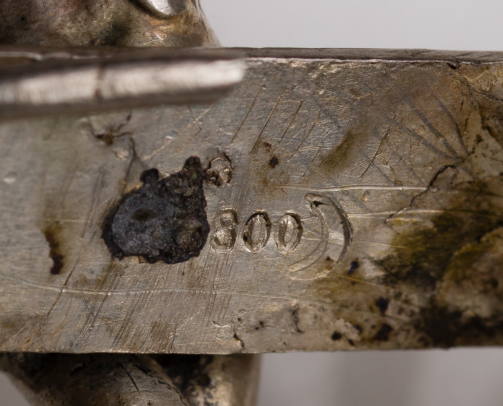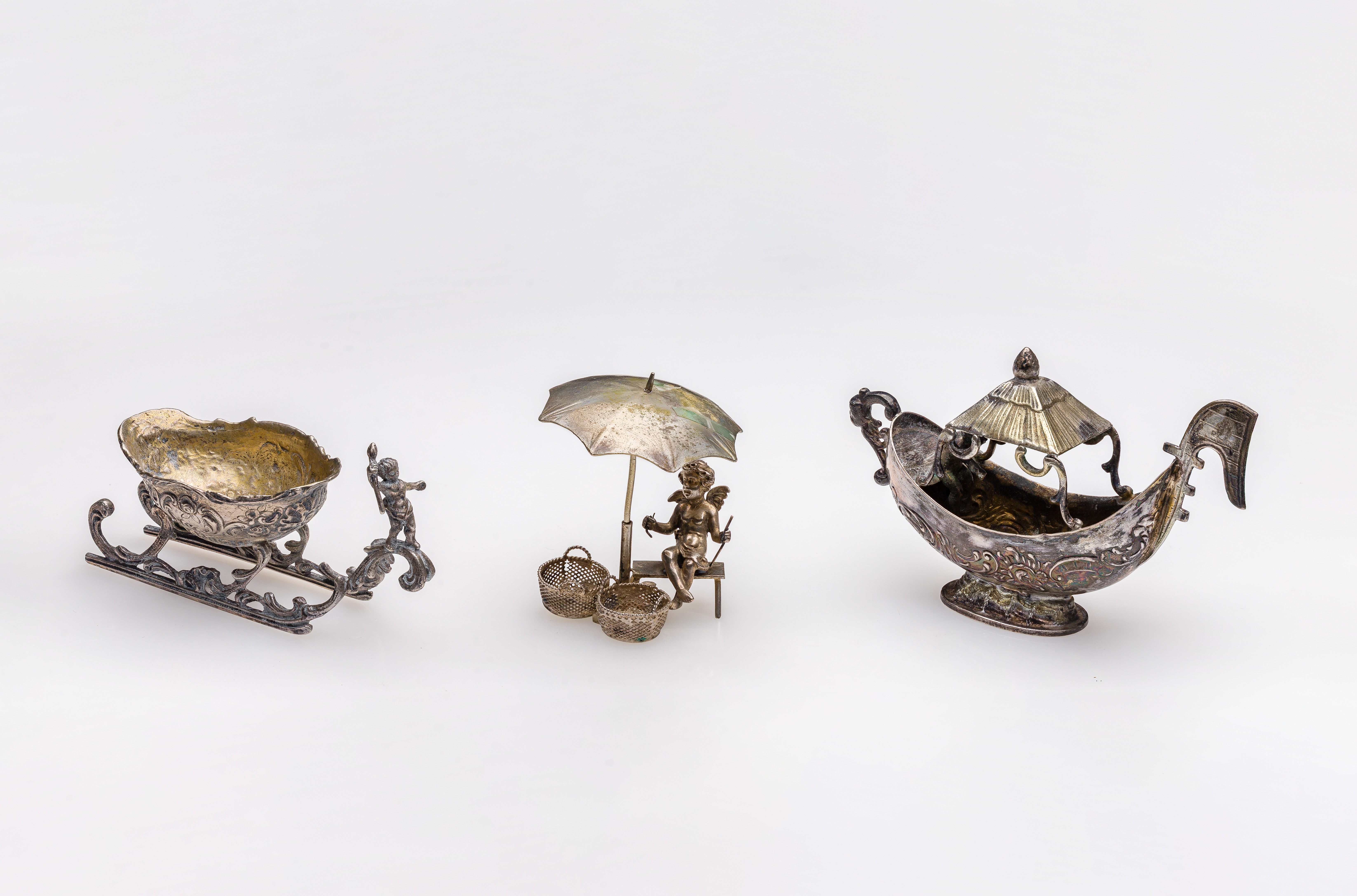 (3) items including a cherub, a sleigh and a boat (marked ‘800’, unmarked 0.875)
