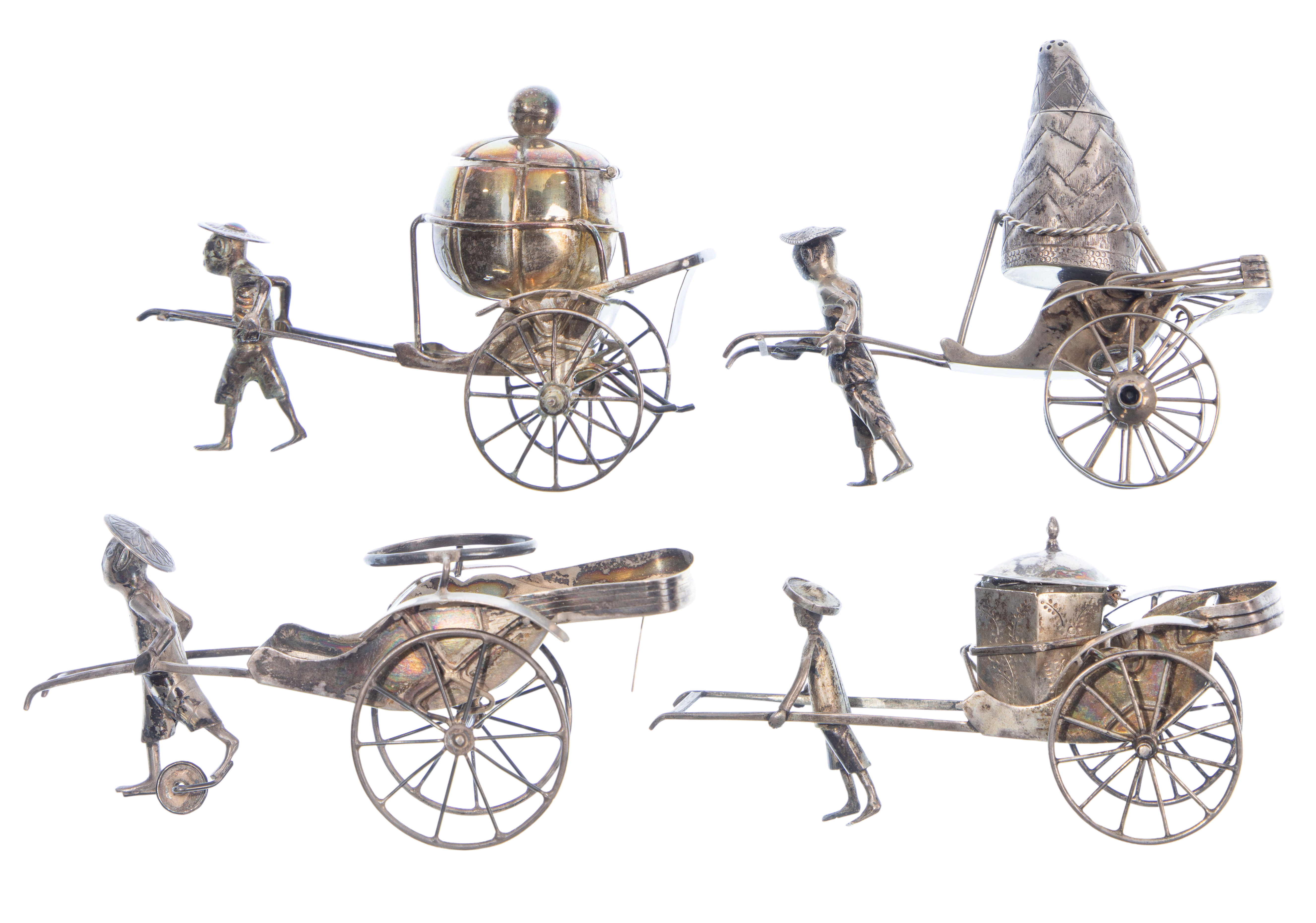 Chinese Silver Rickshaw Condiment Caddies