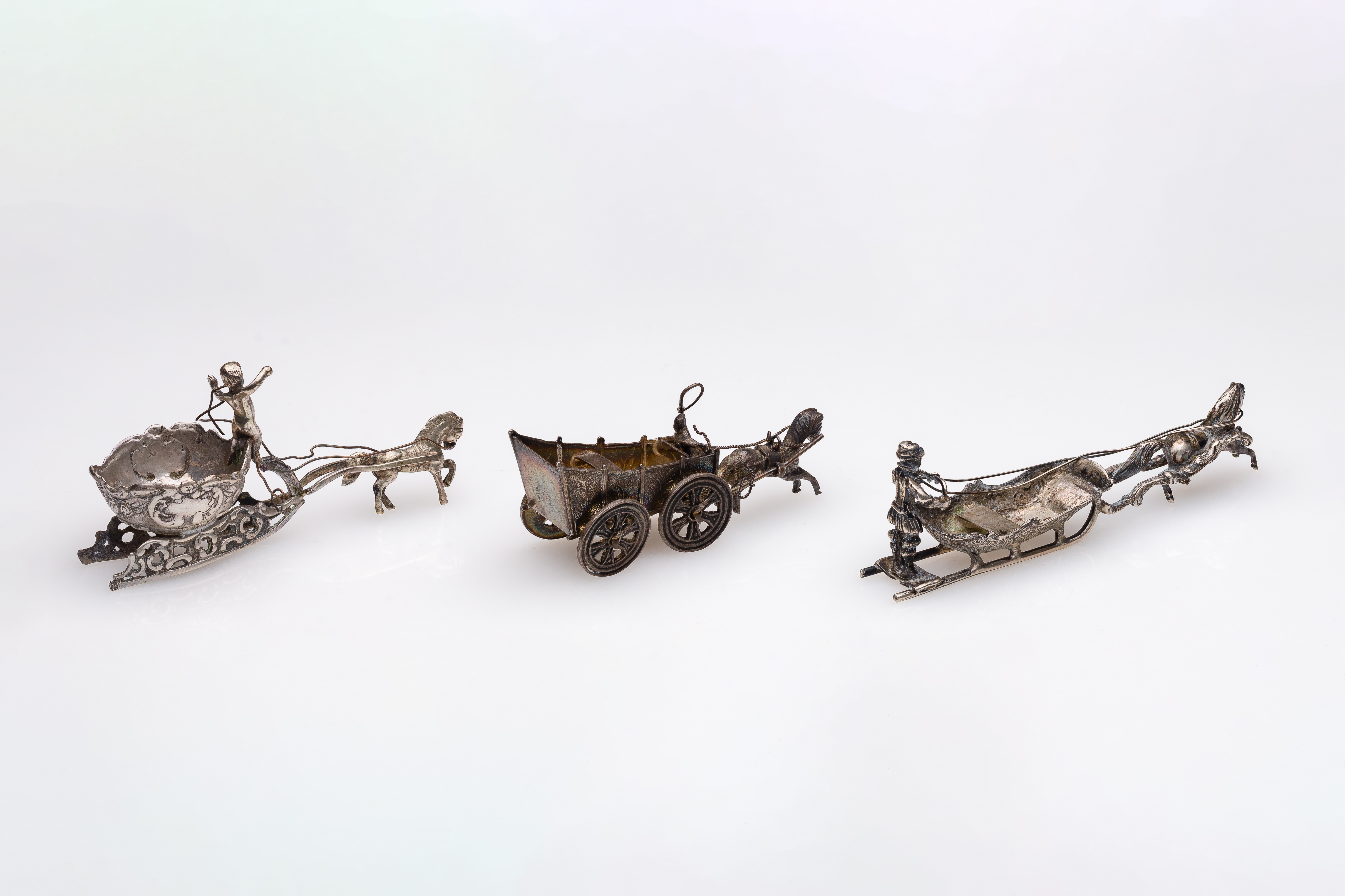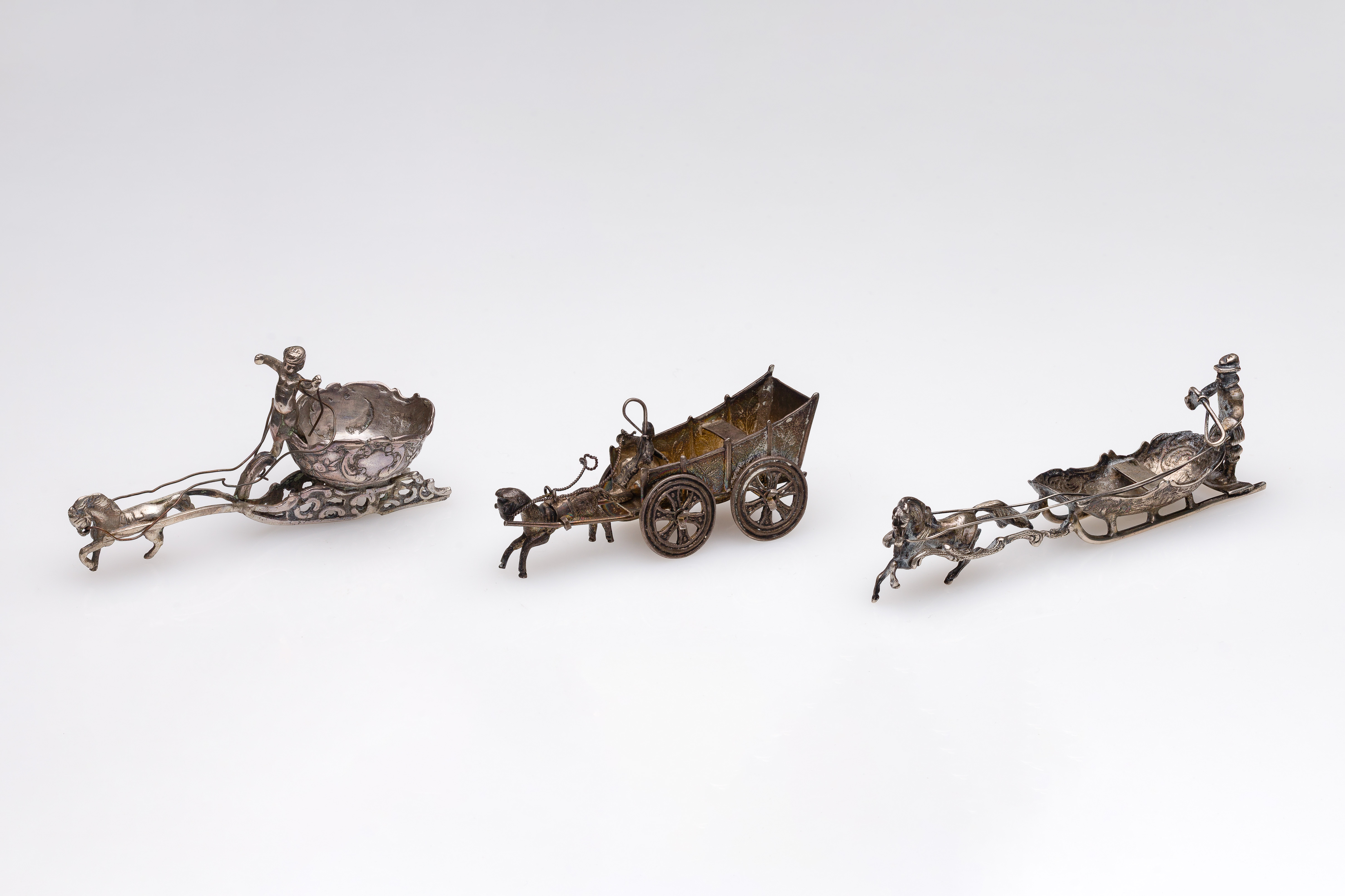 (3) items, all having horse and sleighs (one marked ‘Germany’ ‘800’, other two unmarked 0.875 silver)