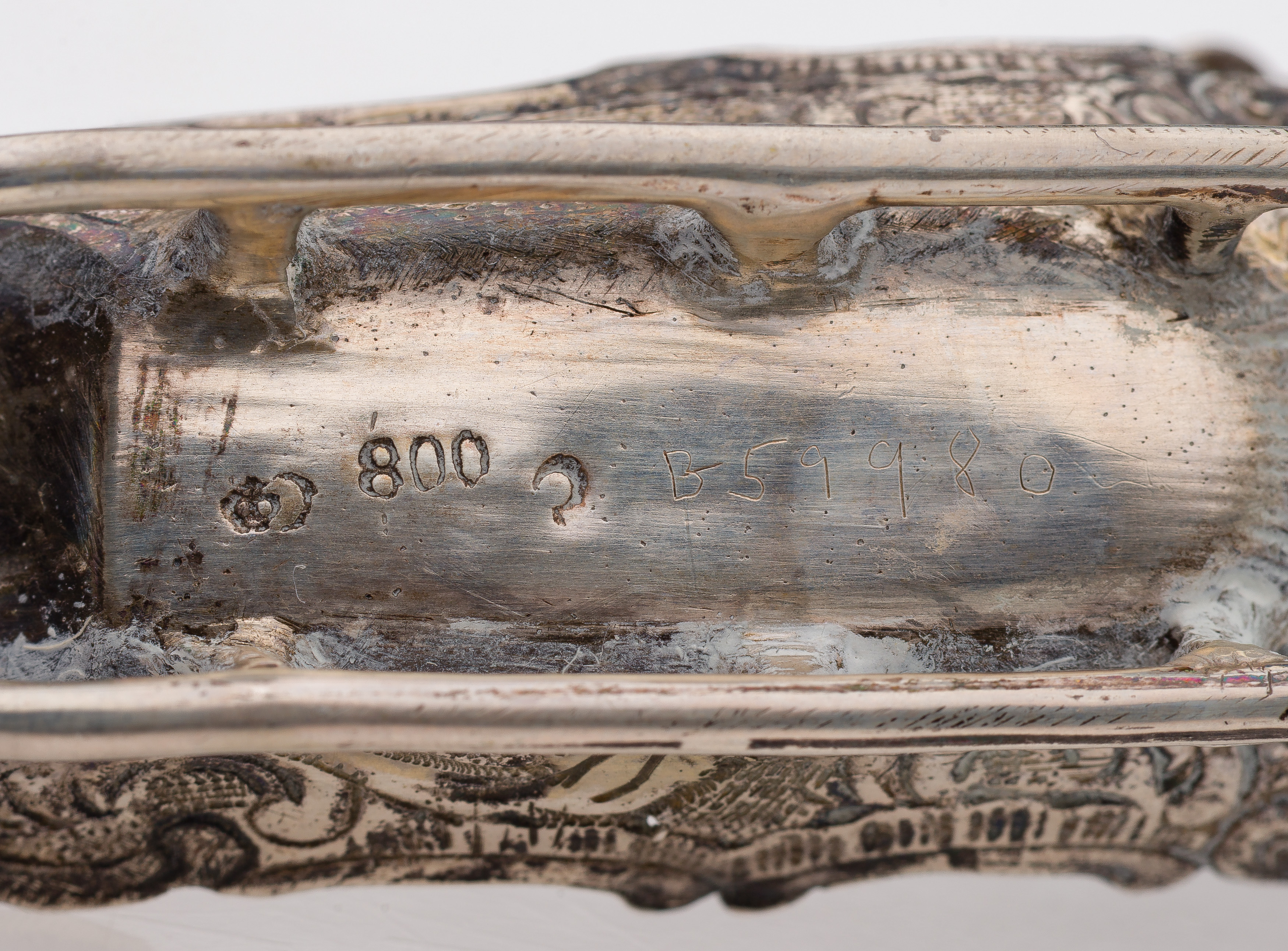 Weight: .830 silver: 2.25 ozt., .800 silver: 1.16 ozt. (total, 0.875 shown as 0.830)