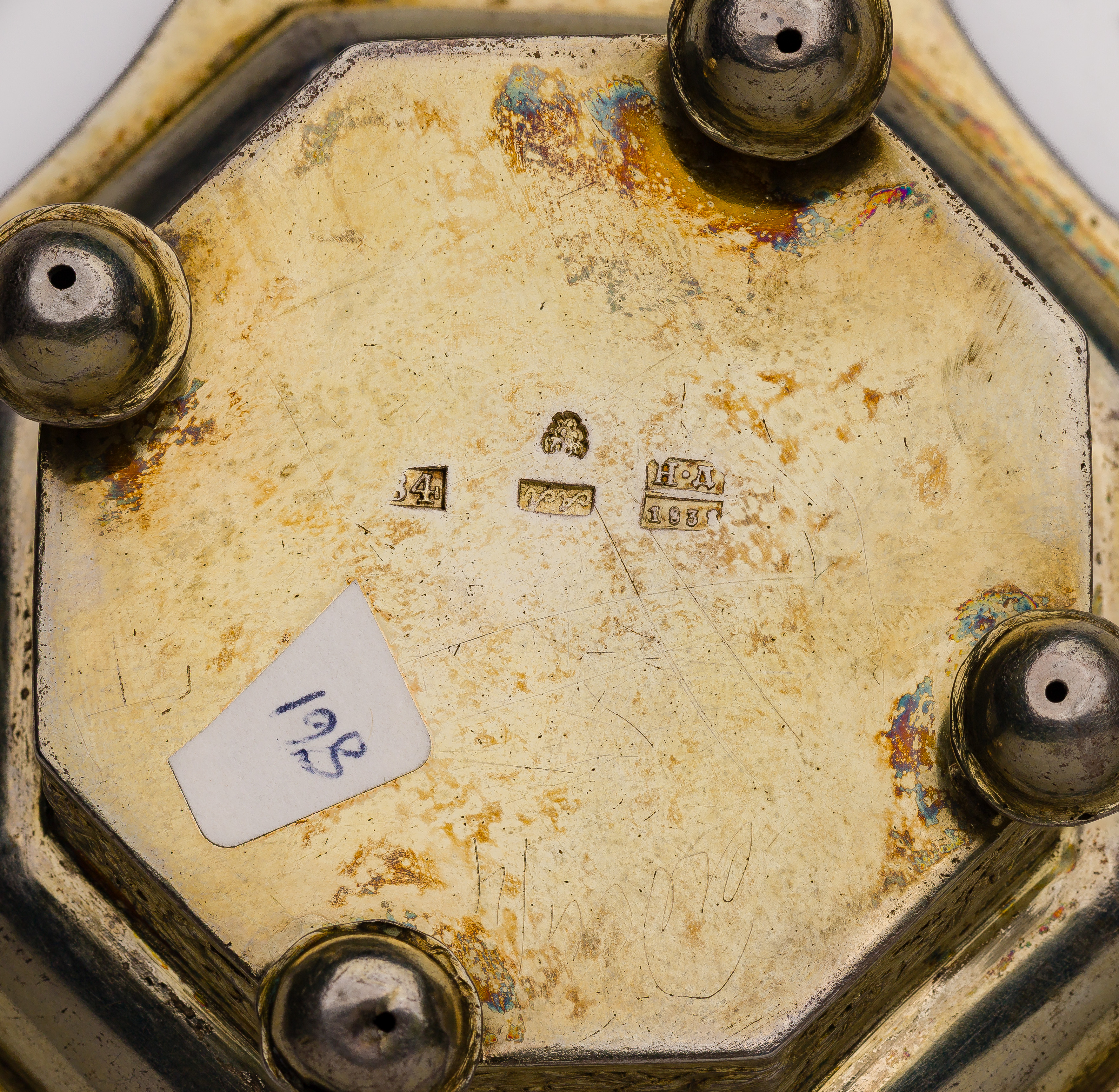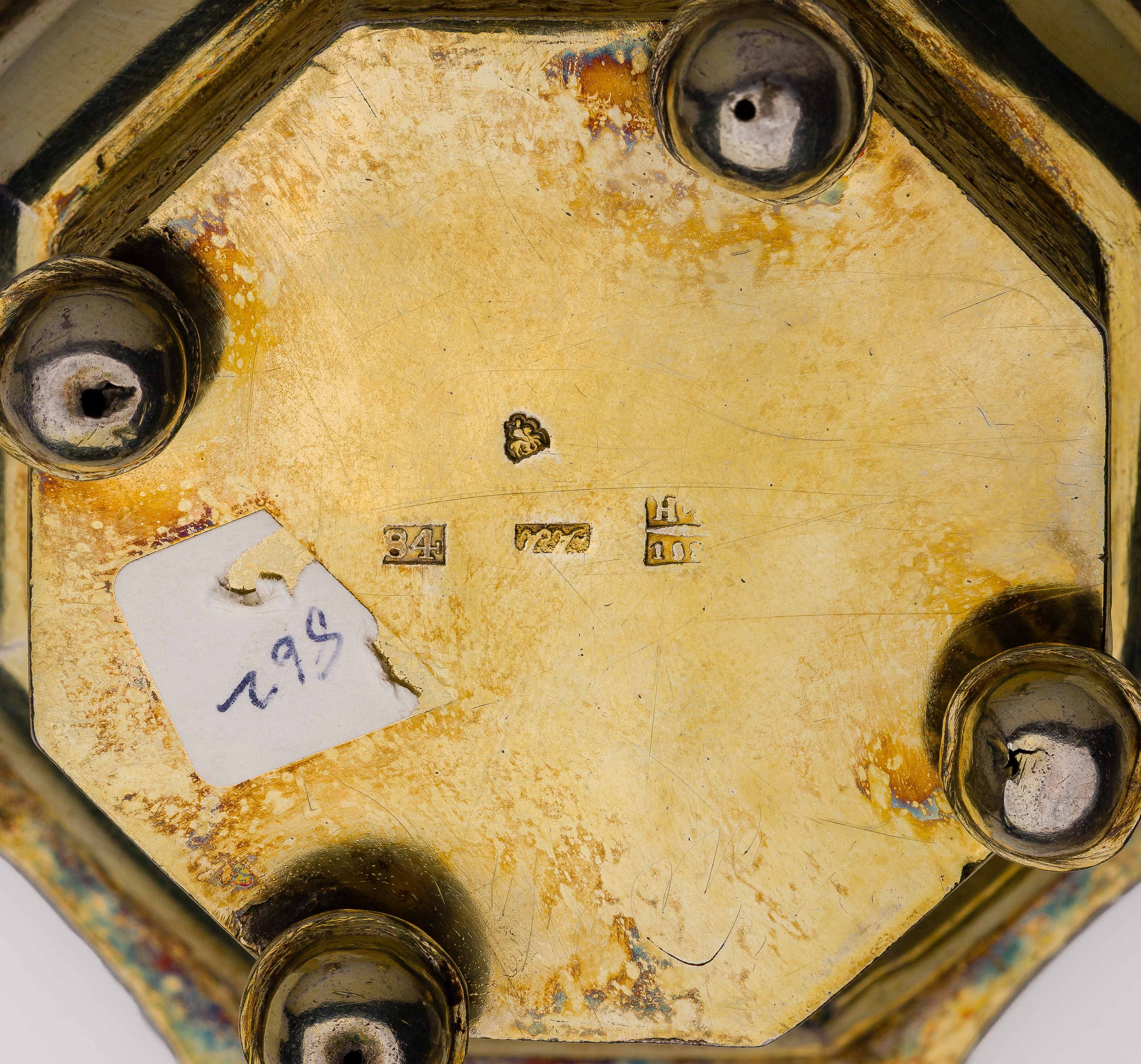 (4) total items, including a Nikolay Dubrovin gold-tone tapered octagon shape set (marked ‘H.D 1838′ / ’84’); together with a silverplate set