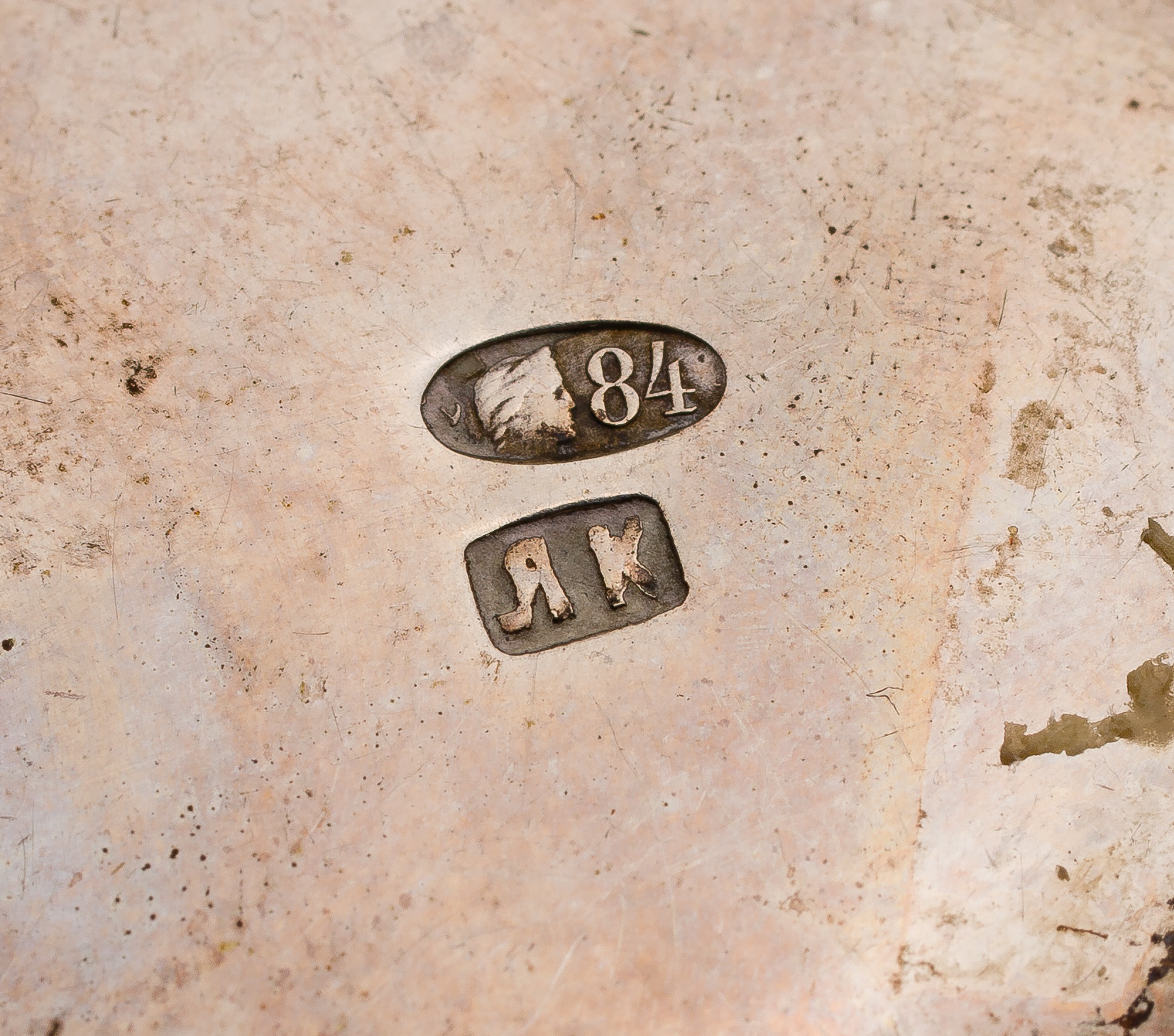(3) items including an Andrey Antonovich Kovalsky ball footed filigree (marked ‘A.K’ / ’84’), a ball footed imperial (marked ‘1864’ / ’84’) and a footed having old church Slavonic script (marked ’84’ / ‘?.K’)