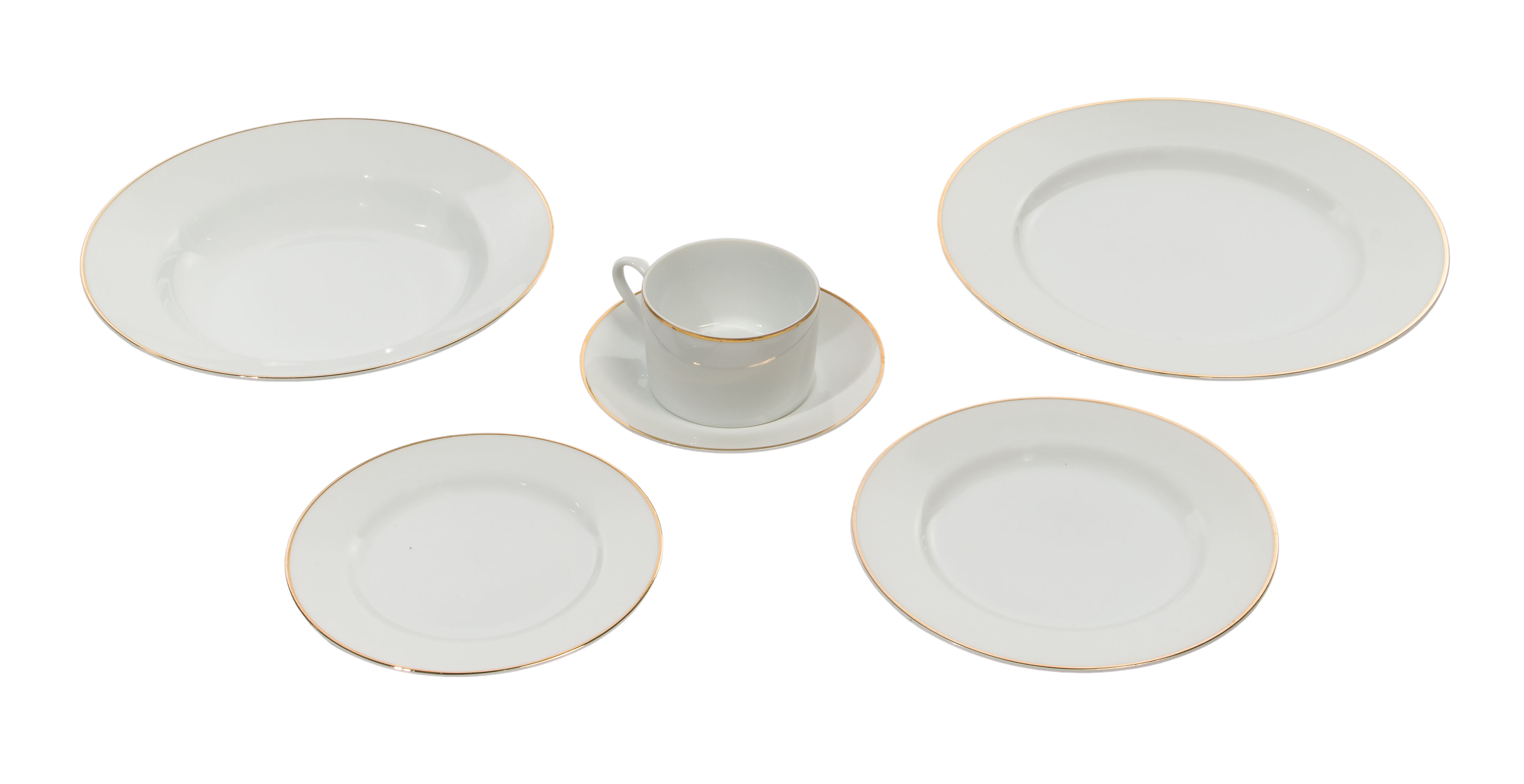 (61) items including (12) 10 1/4-inch dinner plates, (12) 7 1/2-inch salad plates, (12) 6 1/2-inch bread and butter plates, (10) 2 1/4-inch coffee cups, (11) 5 3/4-inch coffee saucers, (4) 9 1/8-inch rimmed soup bowls