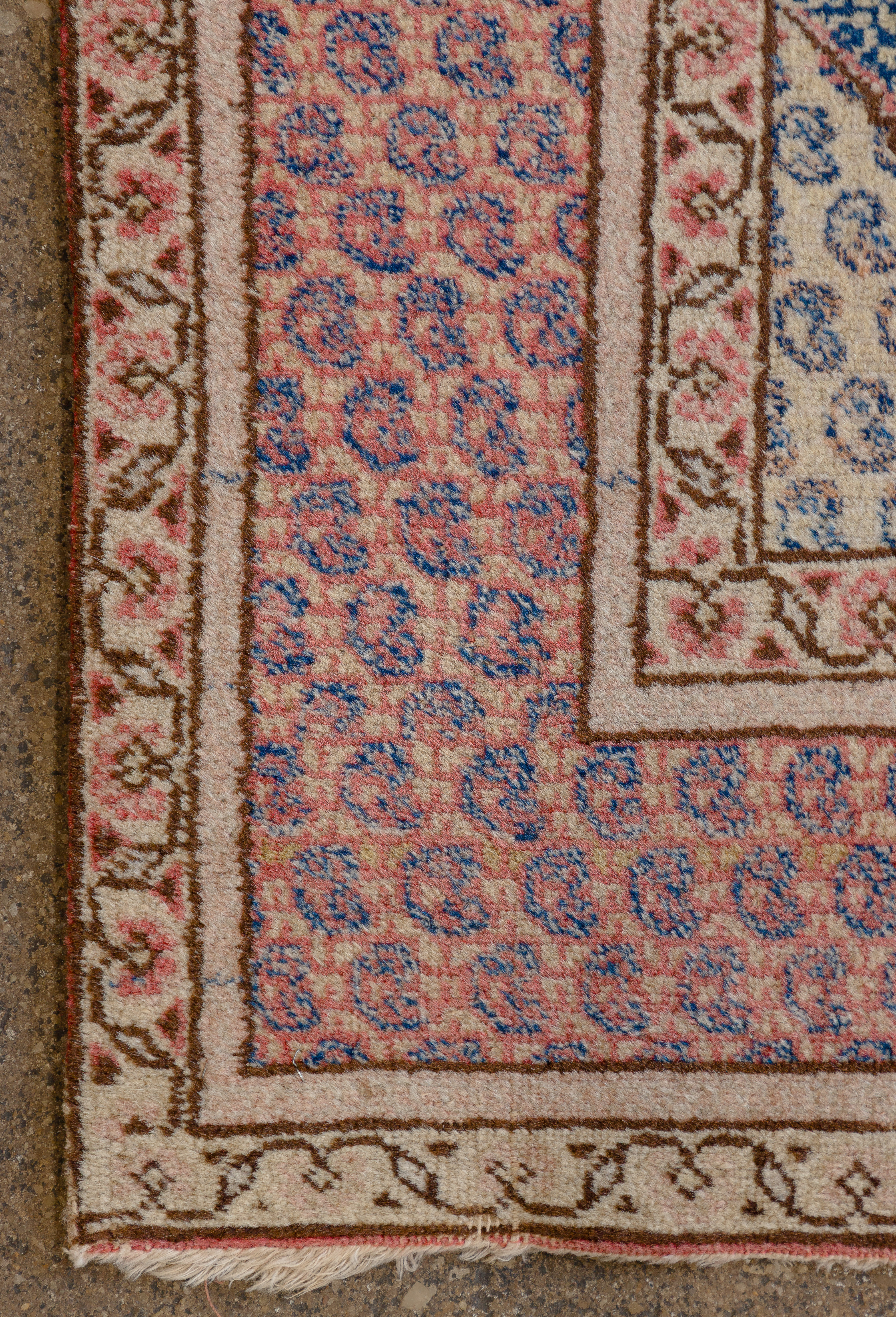 (2) items including a Hamadan style in an abstract geometric design with center medallion in hues of salmon, blue and black on a cream field and a modern wool rug in a stripe pattern in hues of cream and rust (6 ft. 2 in. x 4 ft. 2 in.)