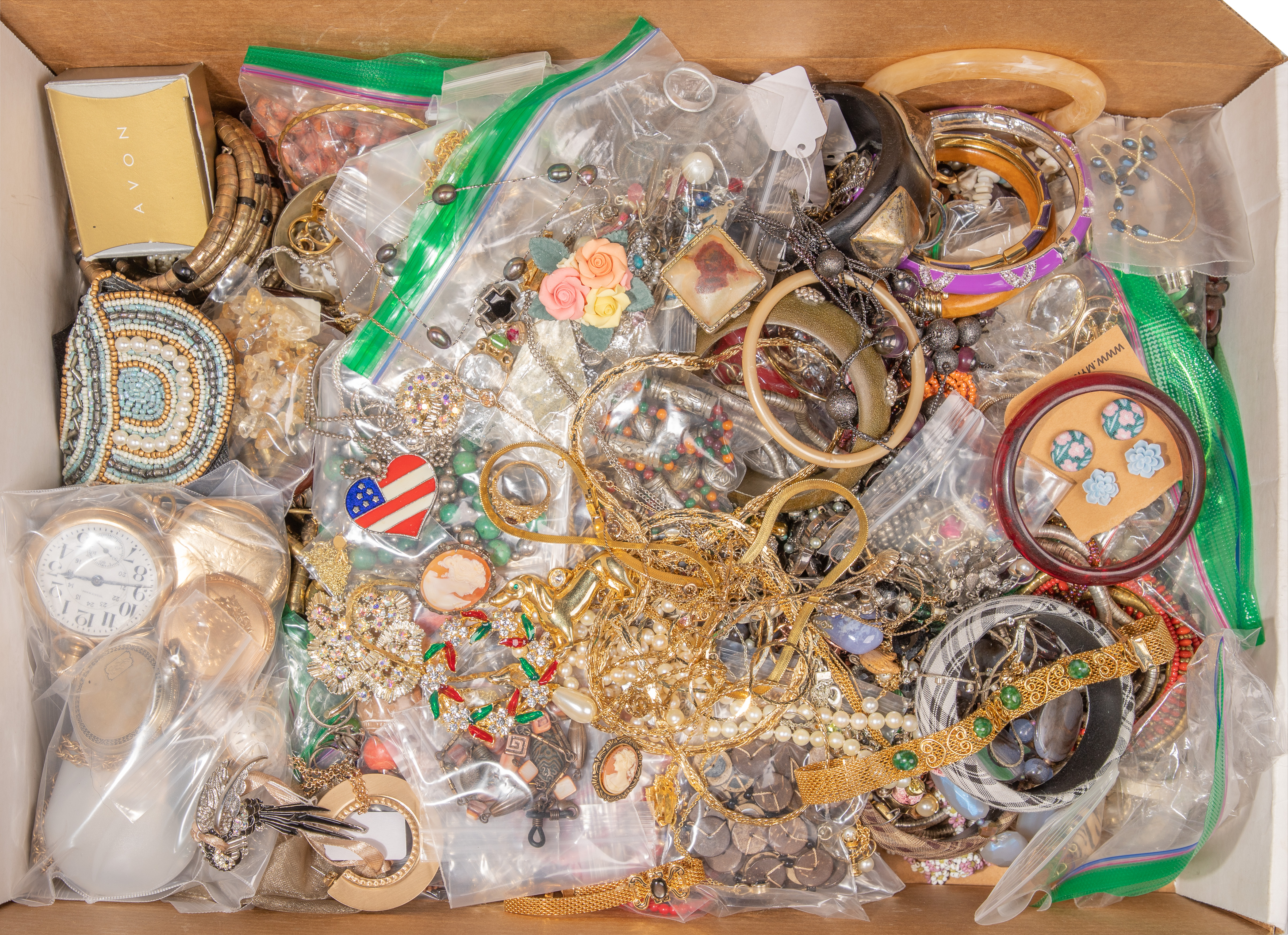 Disclaimers: some items may be bent or broken, missing stones or missing their mates; gemstones tested on the heat conductivity scale; quality of gemstones undetermined; we cannot guarantee that gemstones have not been heat treated and filled, or that pearls / stones / gemstones are natural