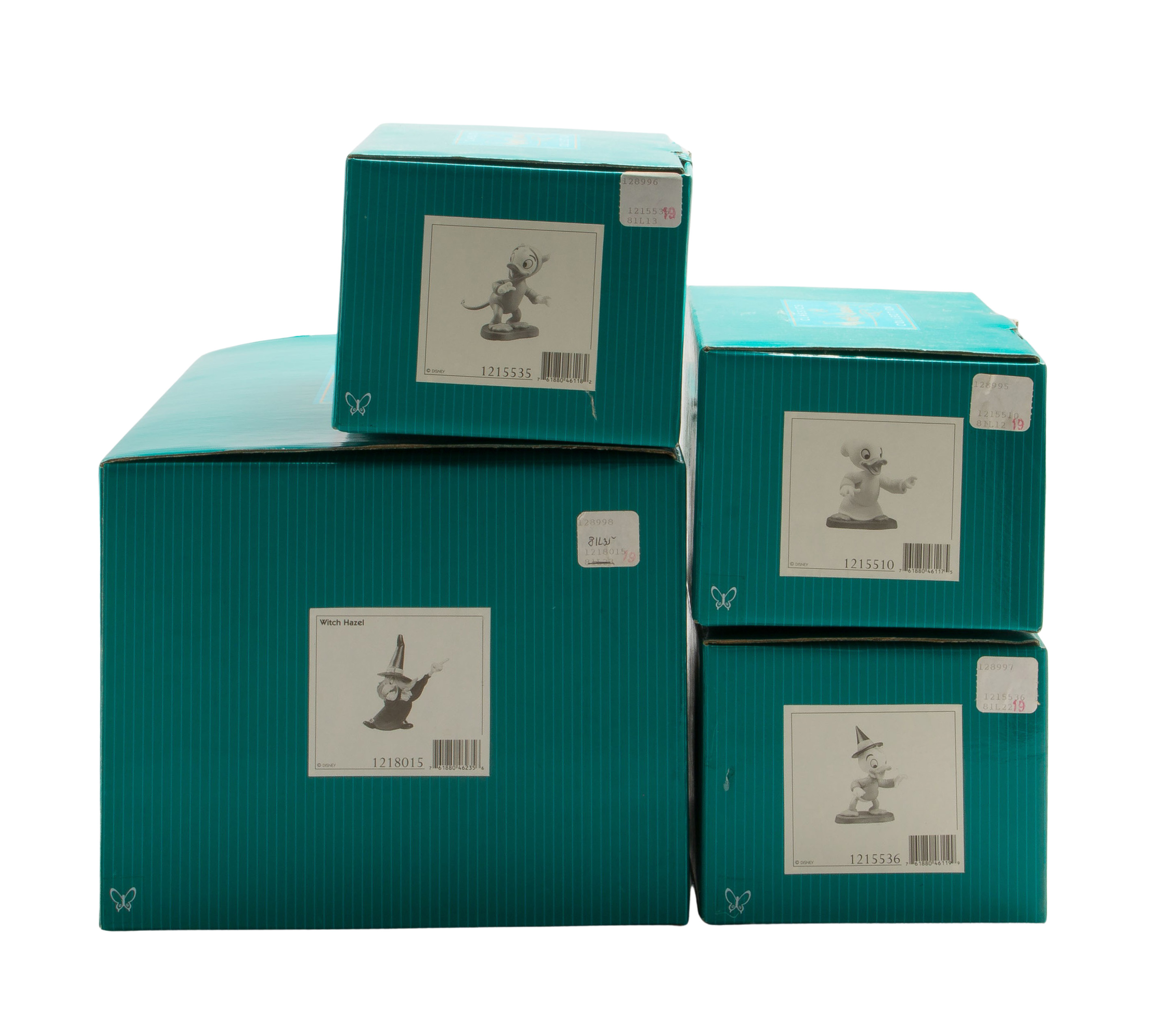 A complete set of (7) Trick or Treat porcelain items including ‘Lil Witch’, ‘Lil Spook’, ‘Lil Devil’, ‘Brewing Up Trouble’, a pumpkin, a title plague and a base, most having boxes and COAs