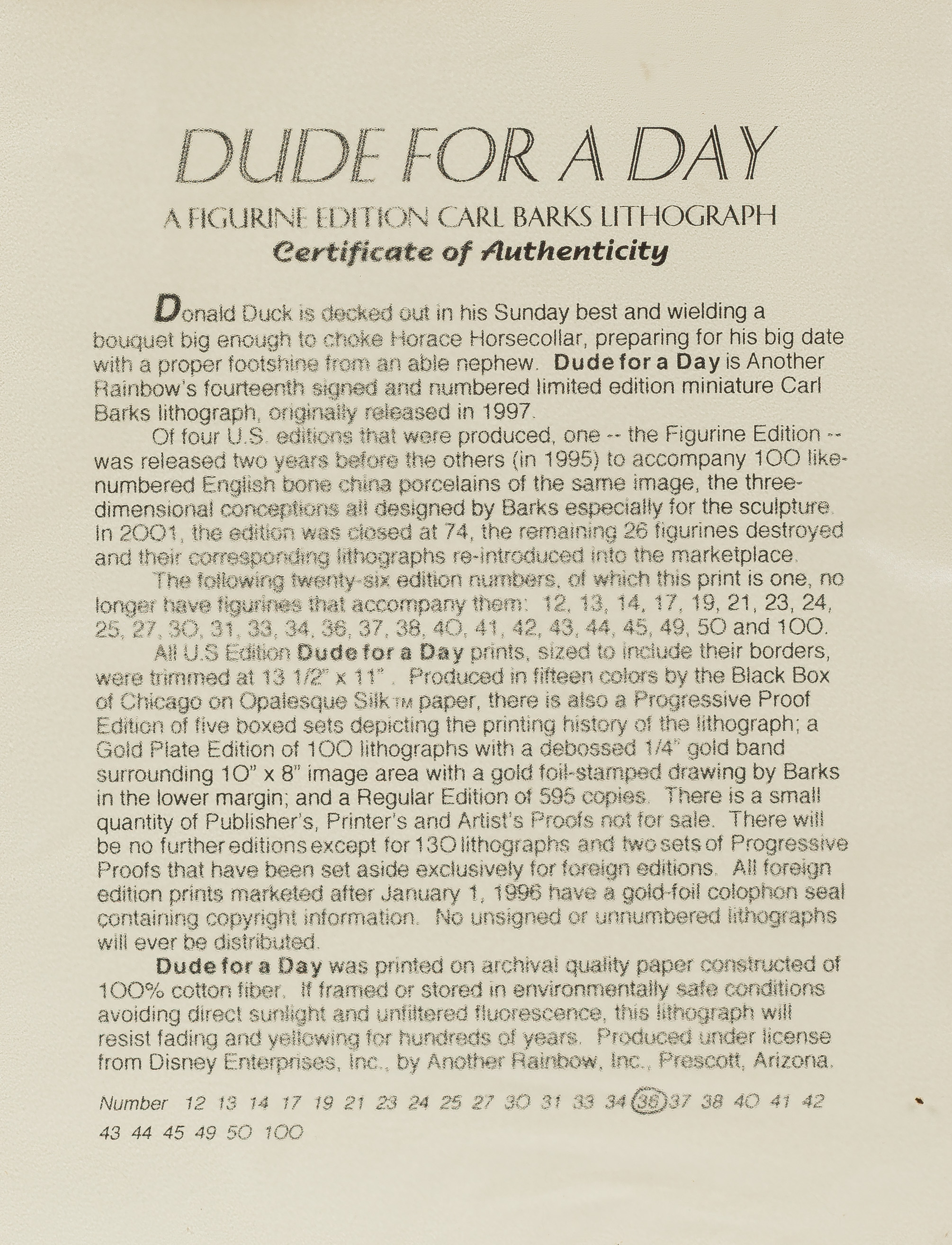 Carl Barks (American, 1901-2000) ‘Dude for a Day’ Lithograph