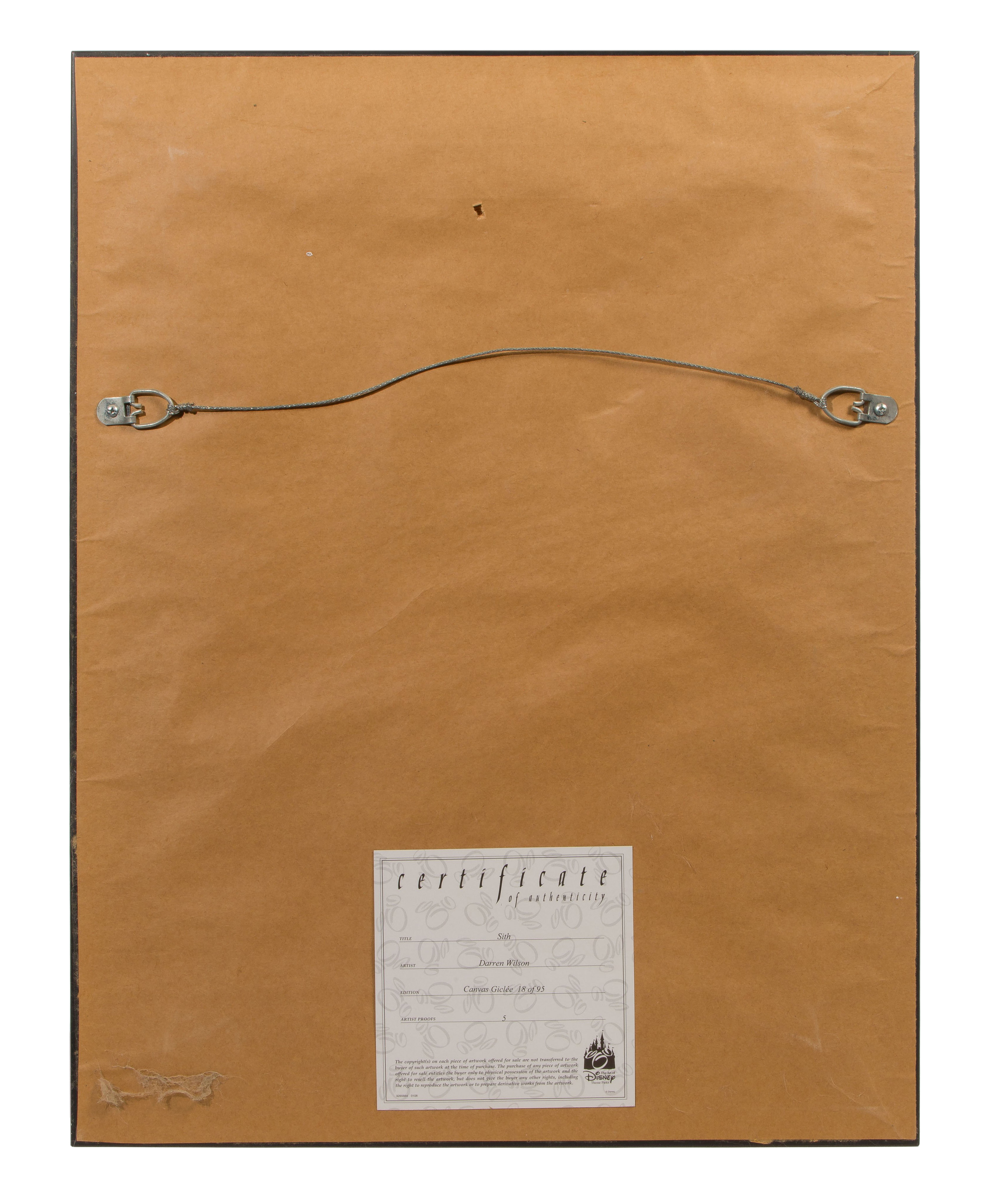 Undated, signed lower left, #19/95, depicting Donald Duck and friends as Star Wars characters, COA verso, in a wood frame
