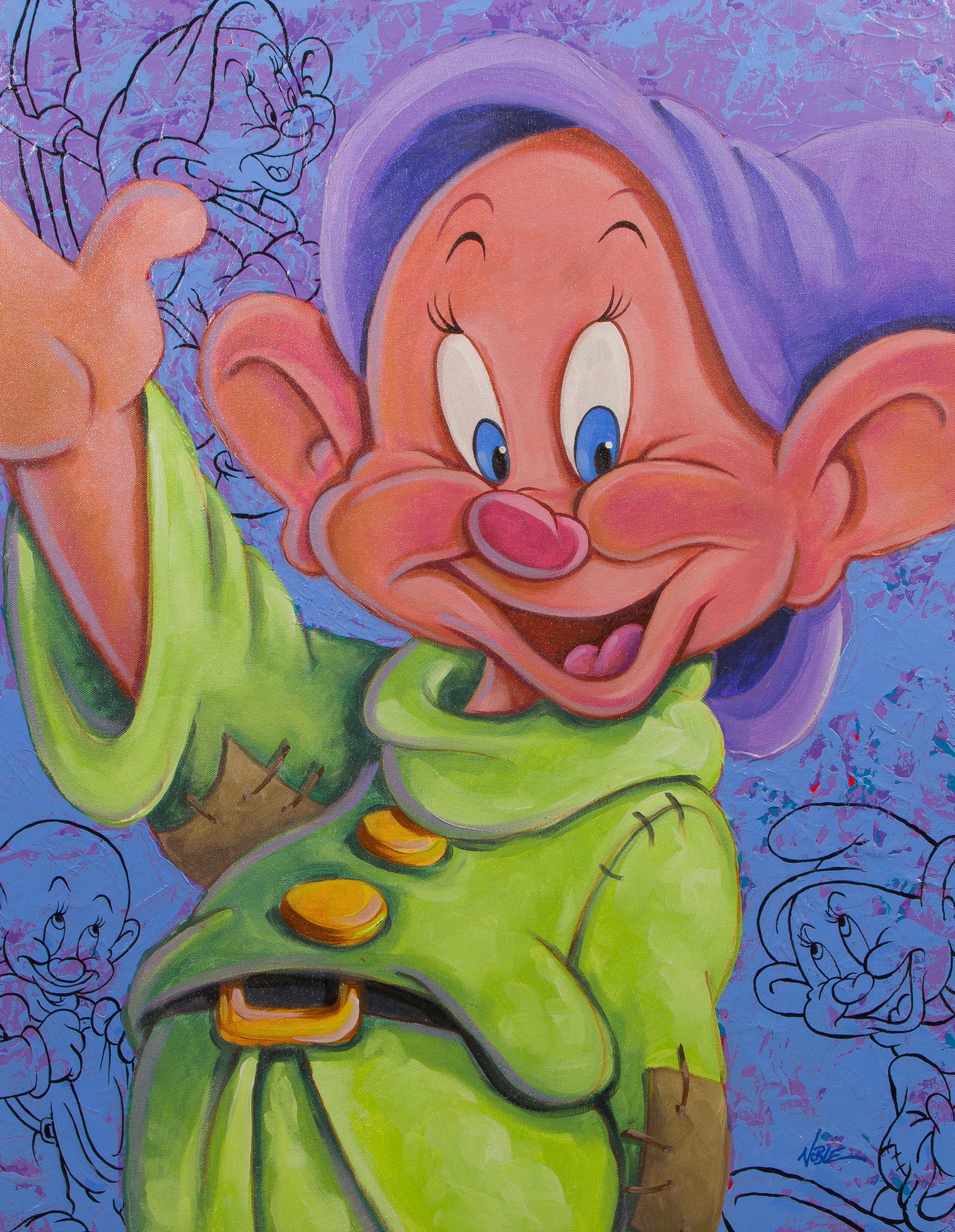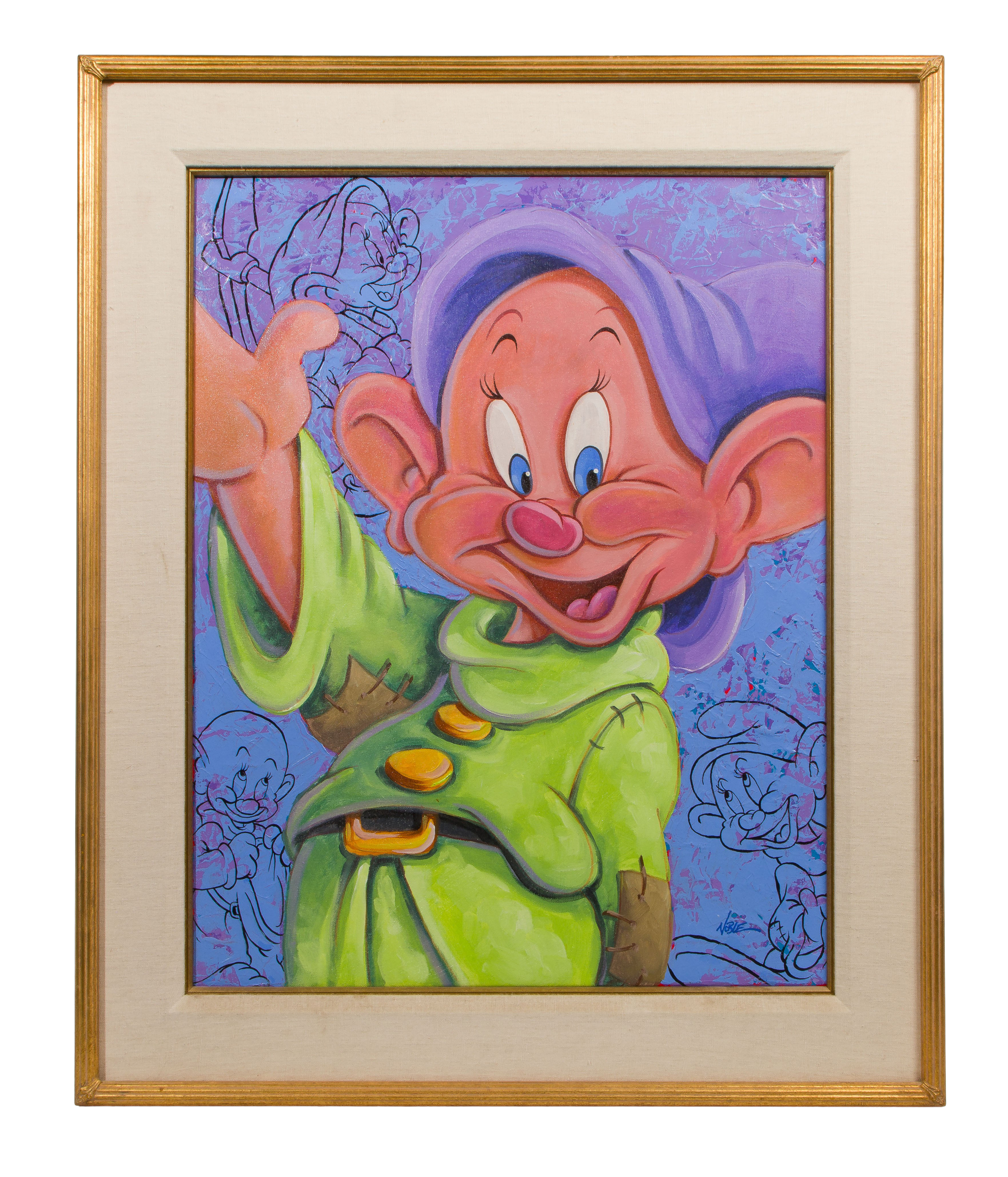 2010, signed lower left, inscribed and signed verso, depicting the many faces of Dopey, having COA, matted in a gold-tone frame