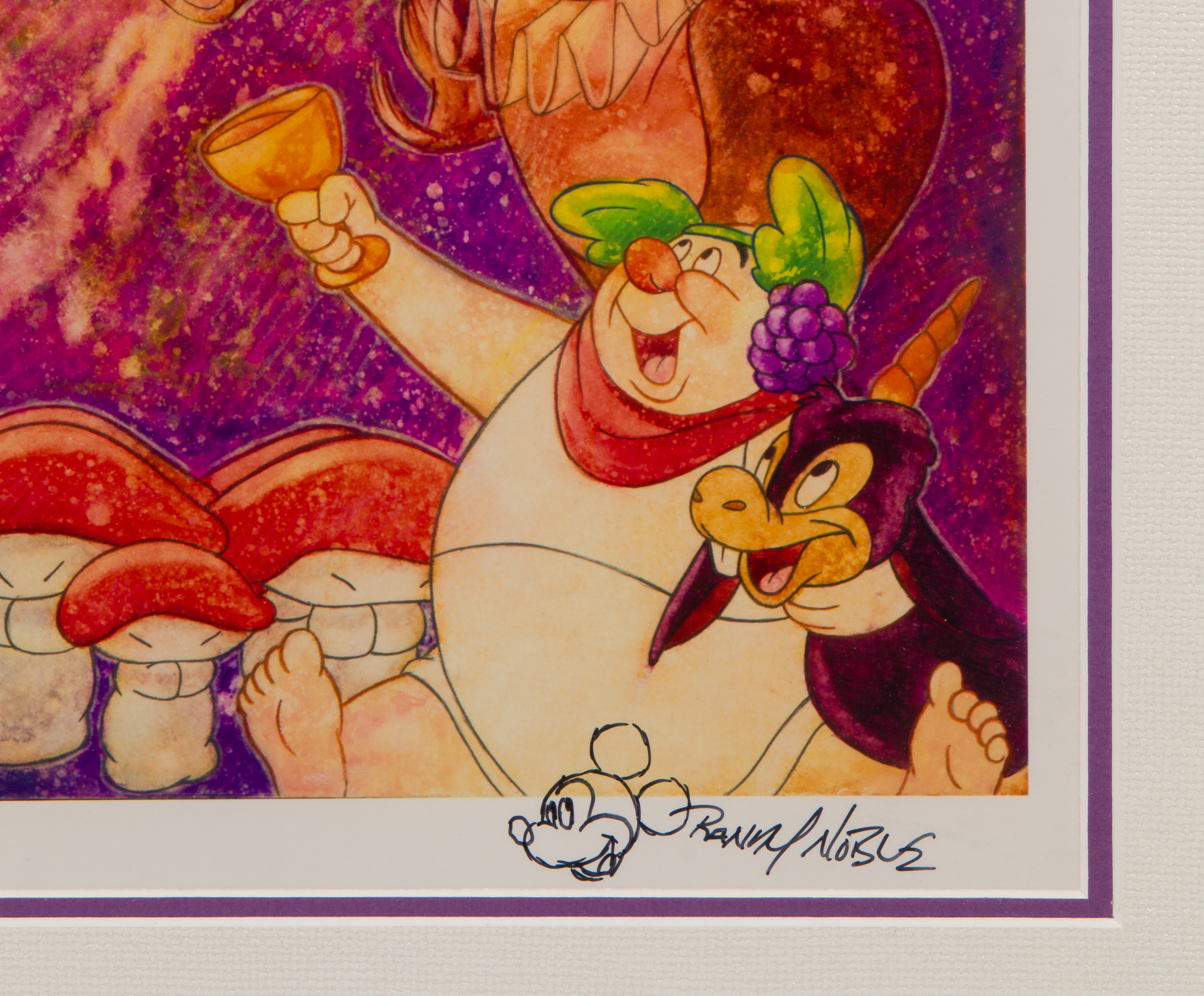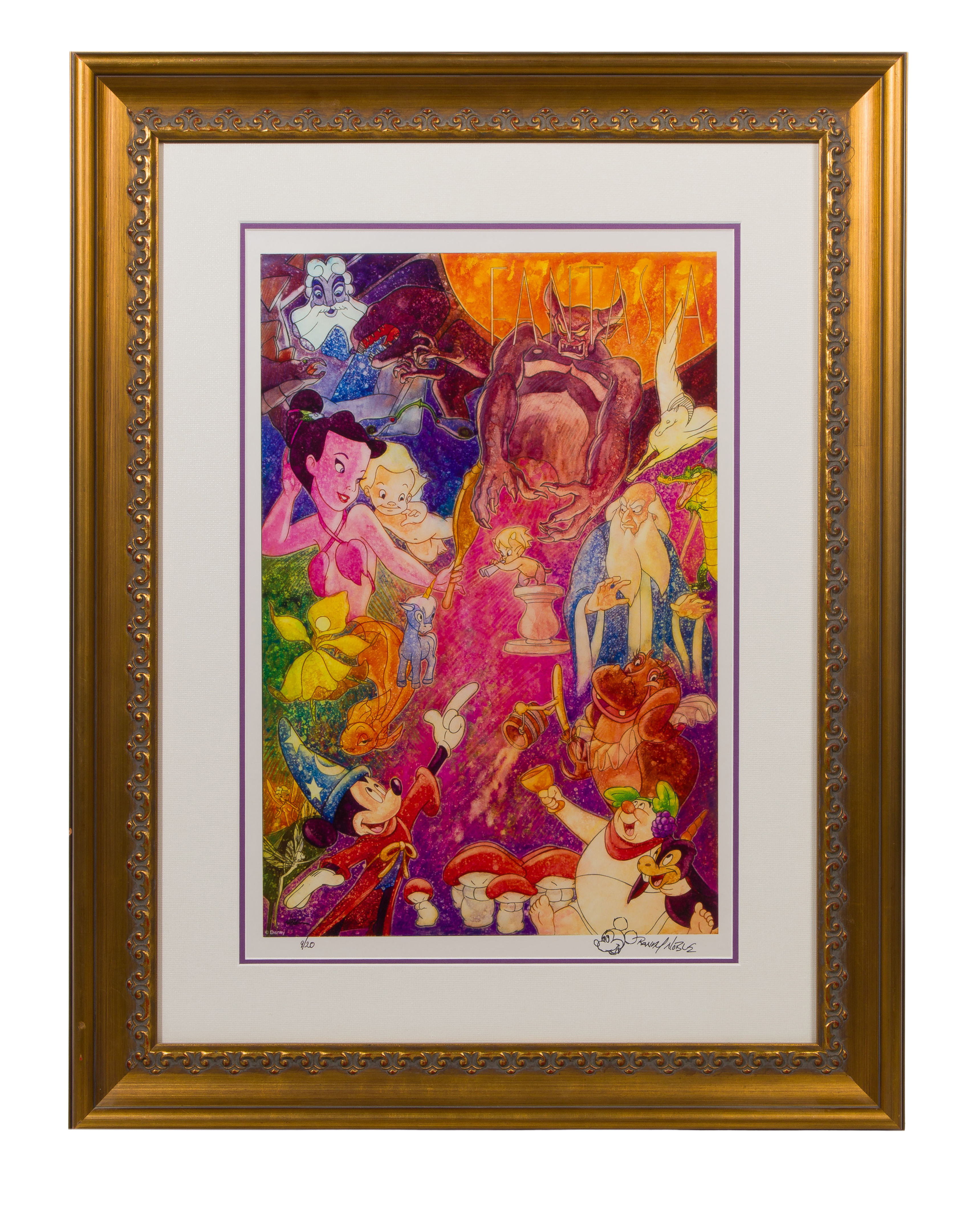 Undated, signed lower right, #9/20, depicting a scene from the movie ‘Fantasia’, matted under acrylic in a wood frame