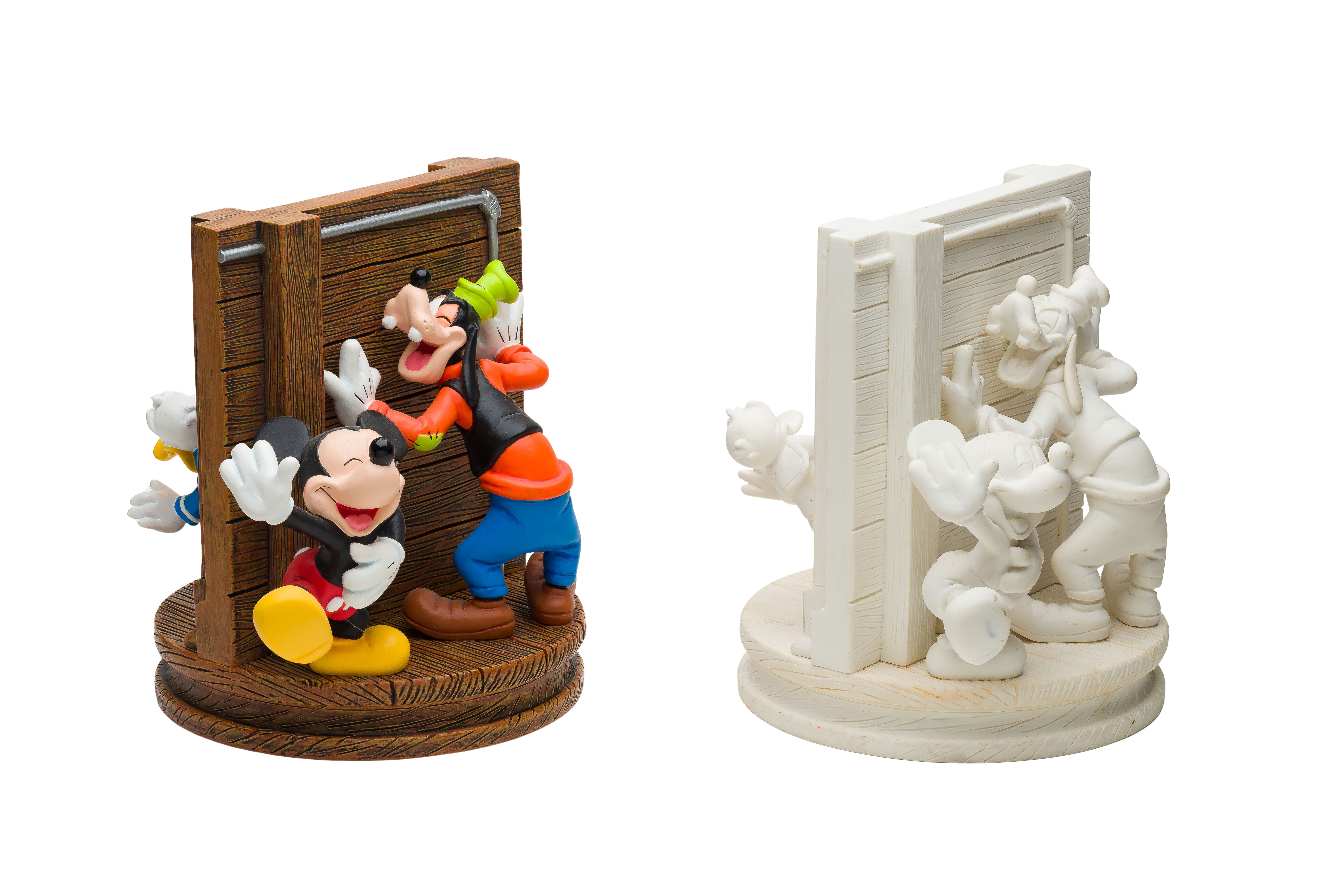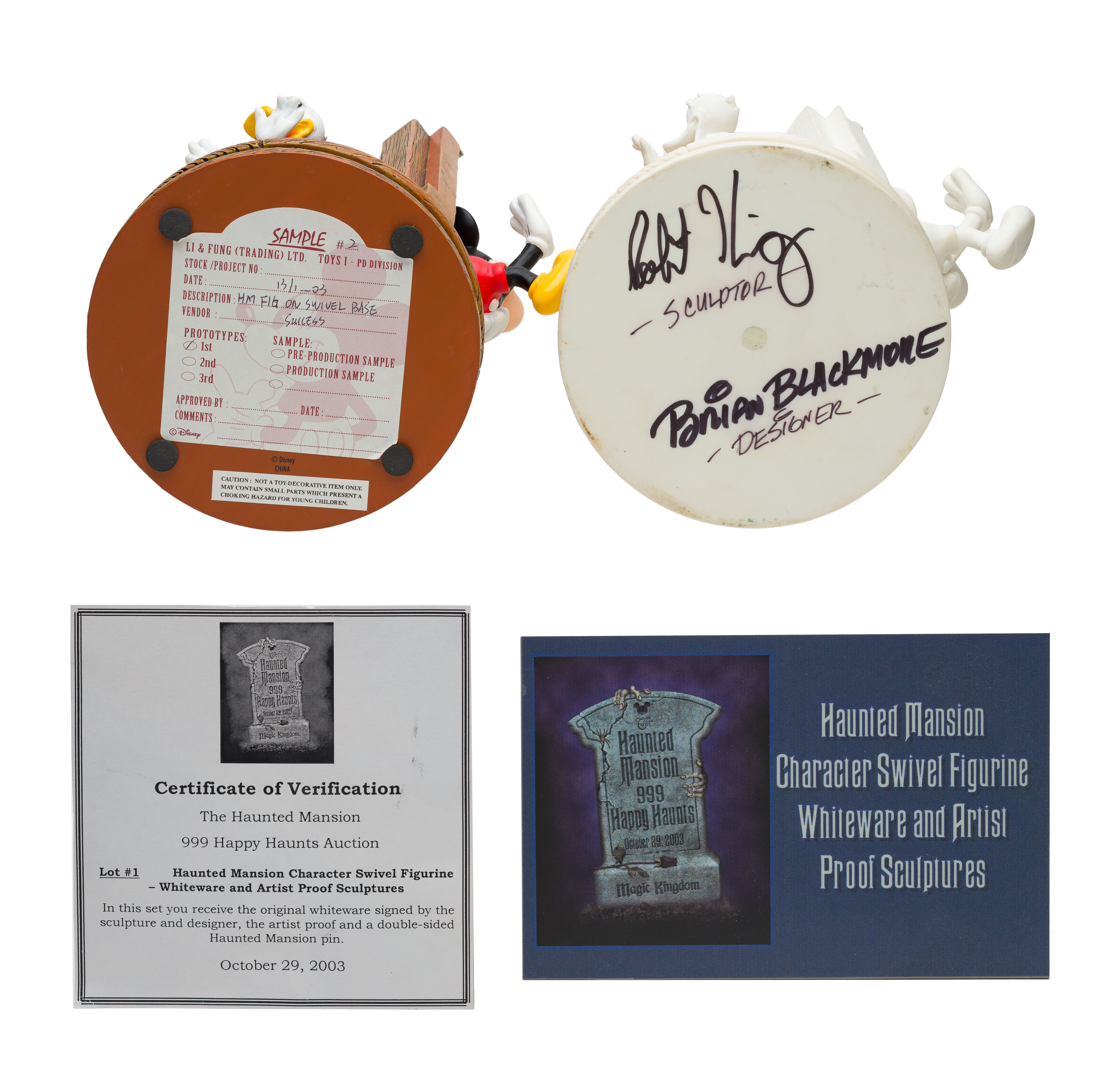 (2) items including a 2003 Mickey, Goofy and Donald swivel figurine prototype and the original whitewashed artist proof, signed by the sculptor and designer, having COA, retaining prototype label on underside