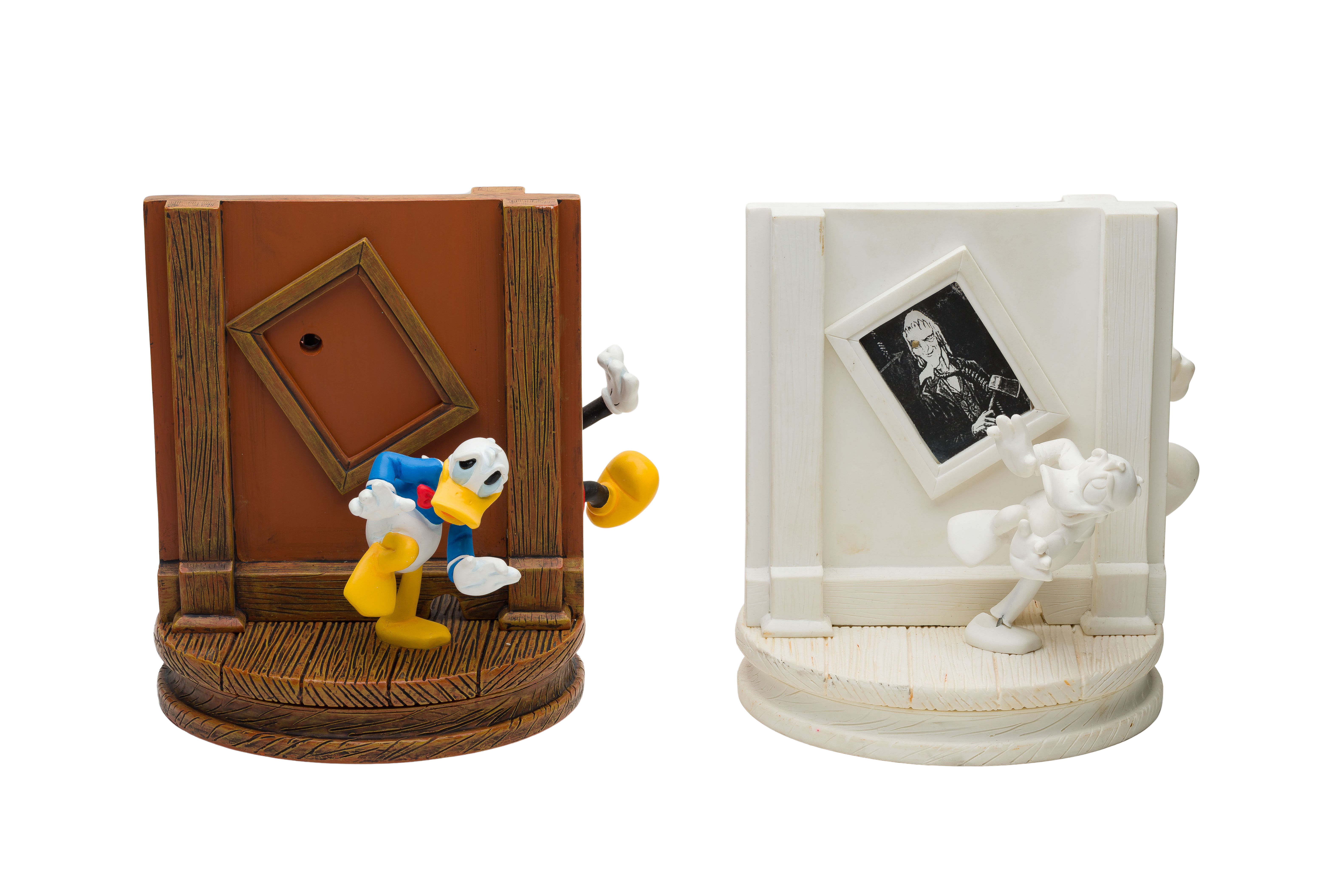 Condition: overall light wear, whitewash having a minor separation on Donald’s leg at joint with foot, some scuffs and dirt, no boxes