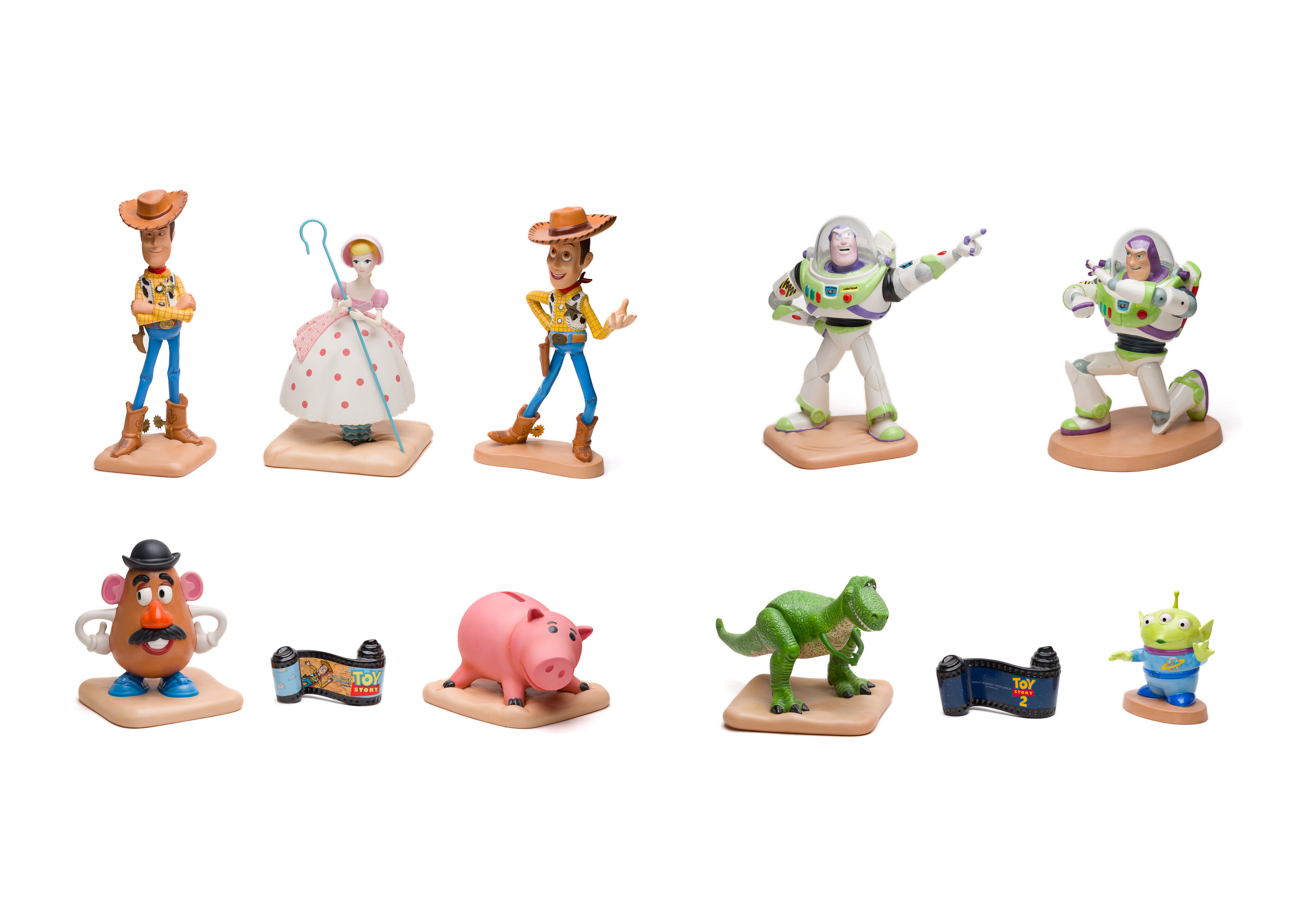(11) items including (2) Buzz Lightyear, (2) Woody, Rex, Mr. Potato Head, Bo Peep, an Alien, Hamm and (2) film strip plaques with ‘Toy Story 2’ having box