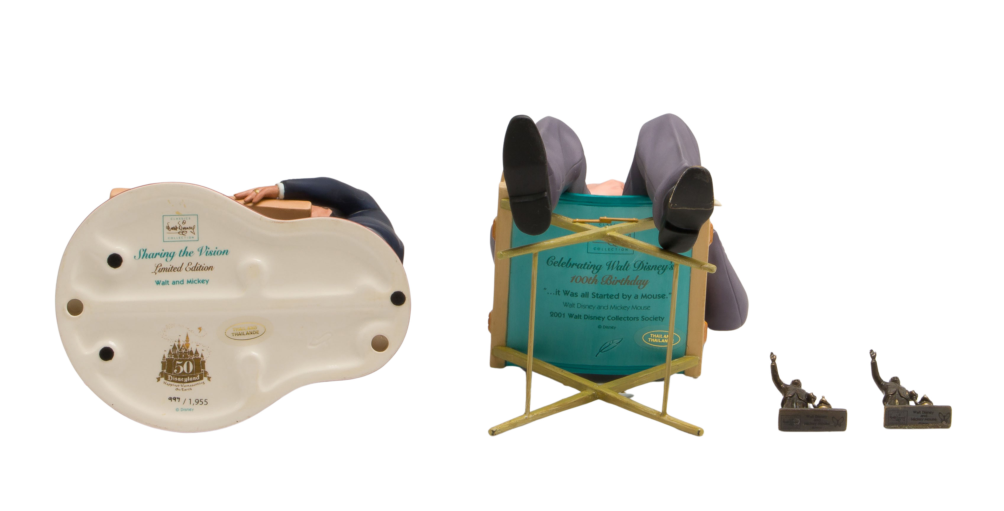 (4) items including a porcelain ‘…It Was all Started by a Mouse’ 100th birthday, a porcelain ‘Sharing the Vision’, #997/1955 and (2) bronze metal miniatures, most having boxes