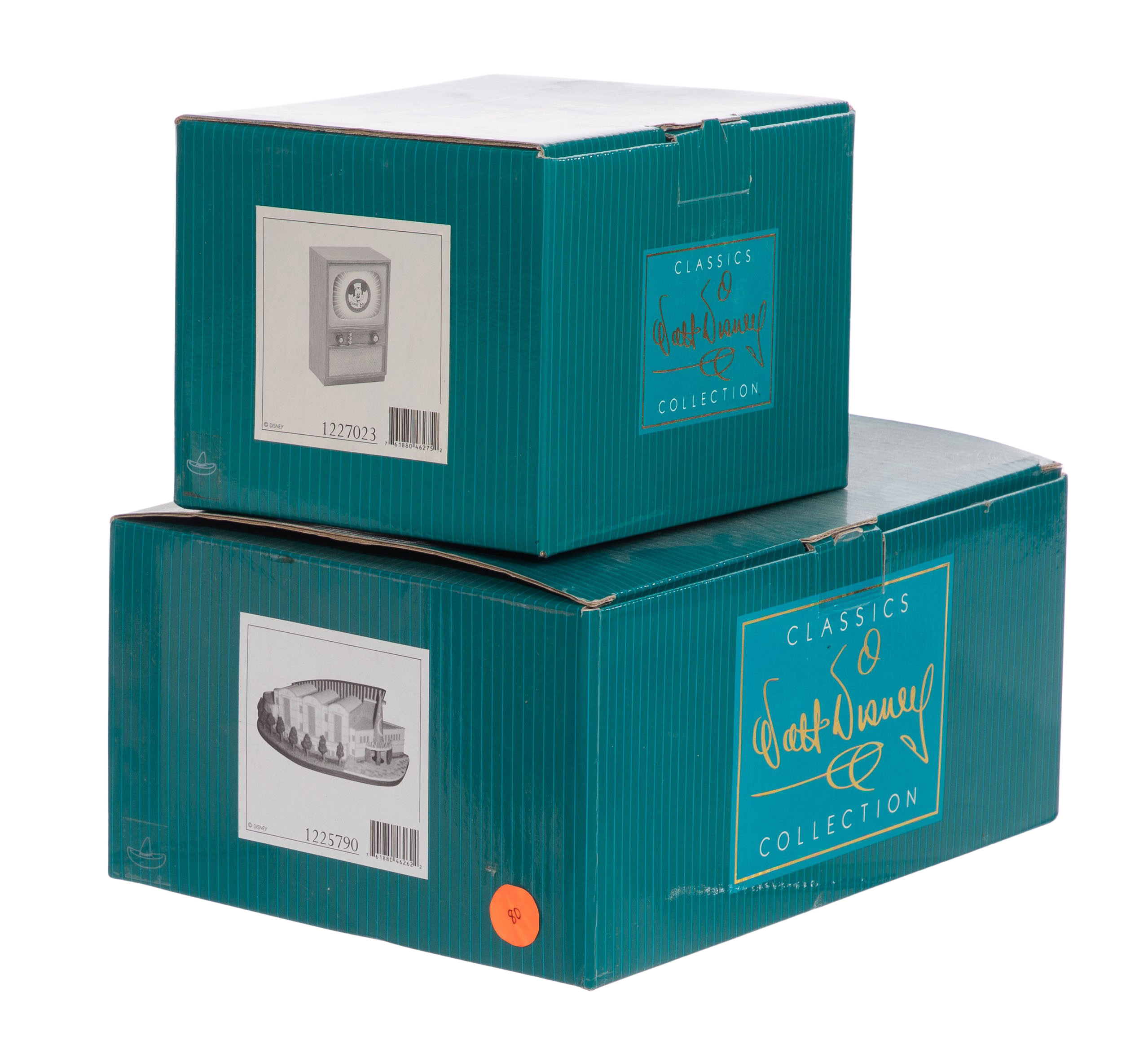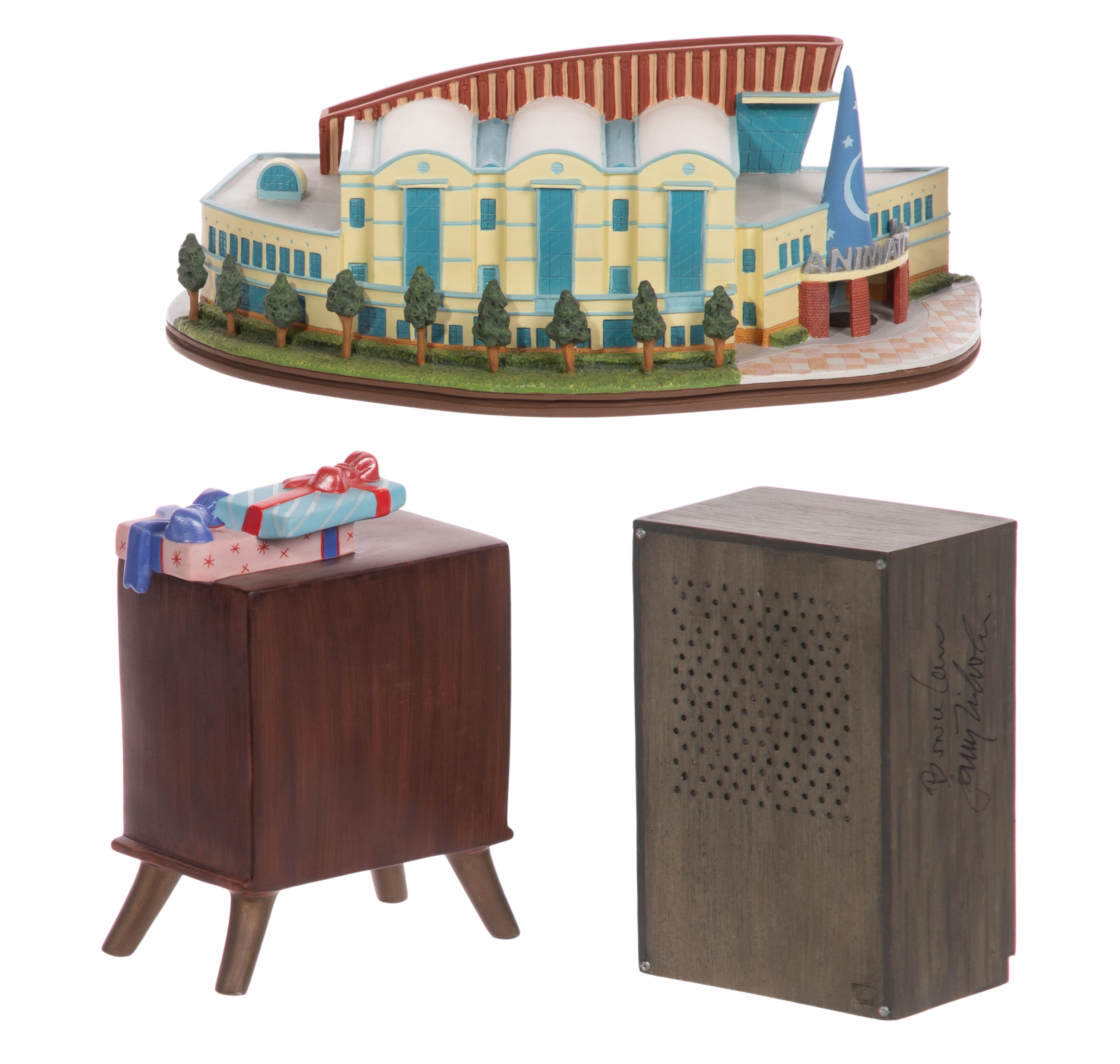 (3) resin items including ‘Holiday Hat Trick’ television, ‘Mickey Mouse Newsreel’ television having signatures and box and the Walt Disney Studios Feature Animation Building having signature and box