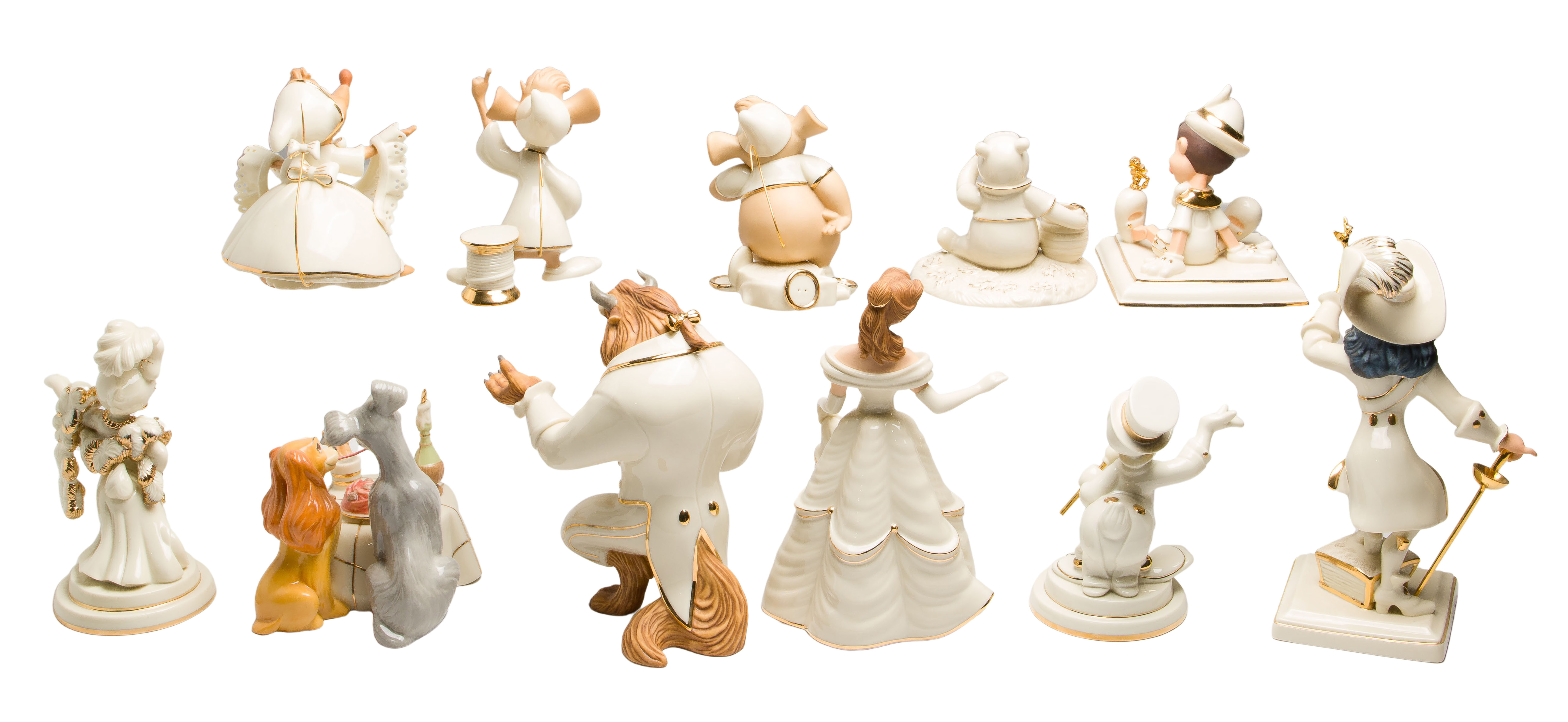 (11) porcelain items including Daisy Duck and Winnie the Pooh having boxes as well as unboxed Donald Duck, Pinocchio, Lady and the Tramp, Belle, The Beast, Captain Hook and (3) Cinderella mice, all marked on underside