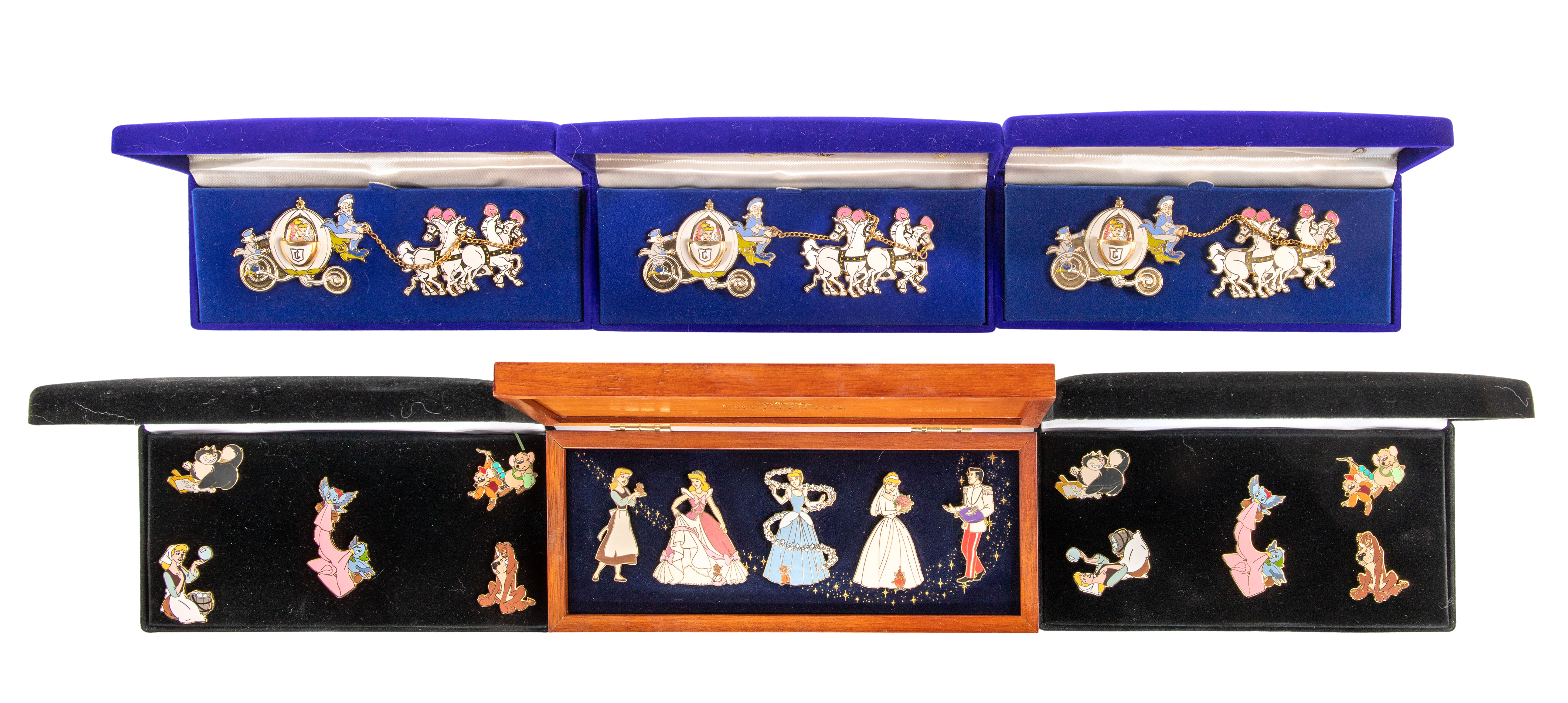 (6) items including a five-pin Disney limited Edition, (2) five-pin Cinderellas 50th Anniversary Editions and (3) Cinderella Hinged Coach and Horses, all in original presentation boxes