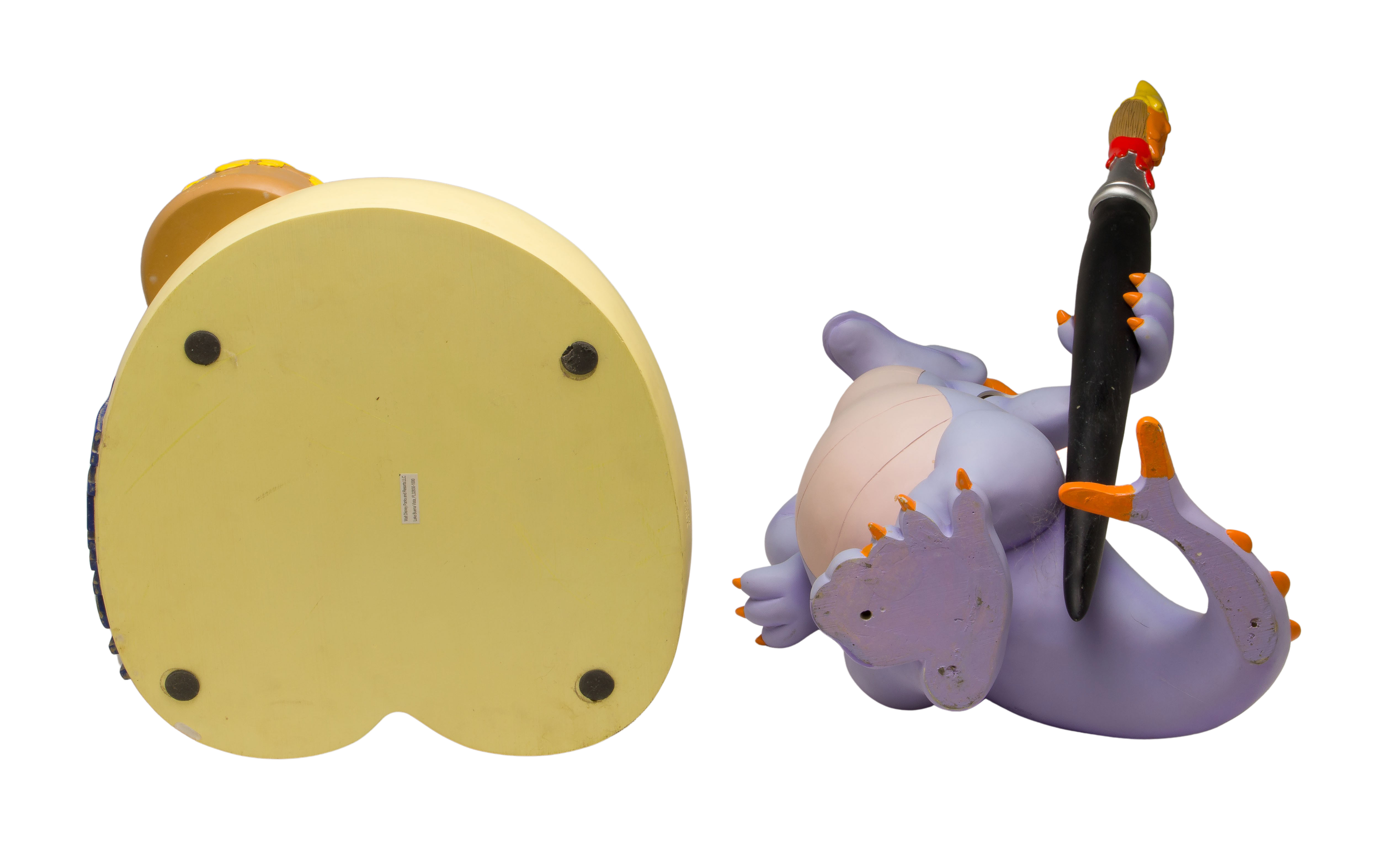 Dreamfinder’s purple dragon companion from ‘Journey Into Imagination’ attraction, holding a paintbrush, having a separate base bearing his name